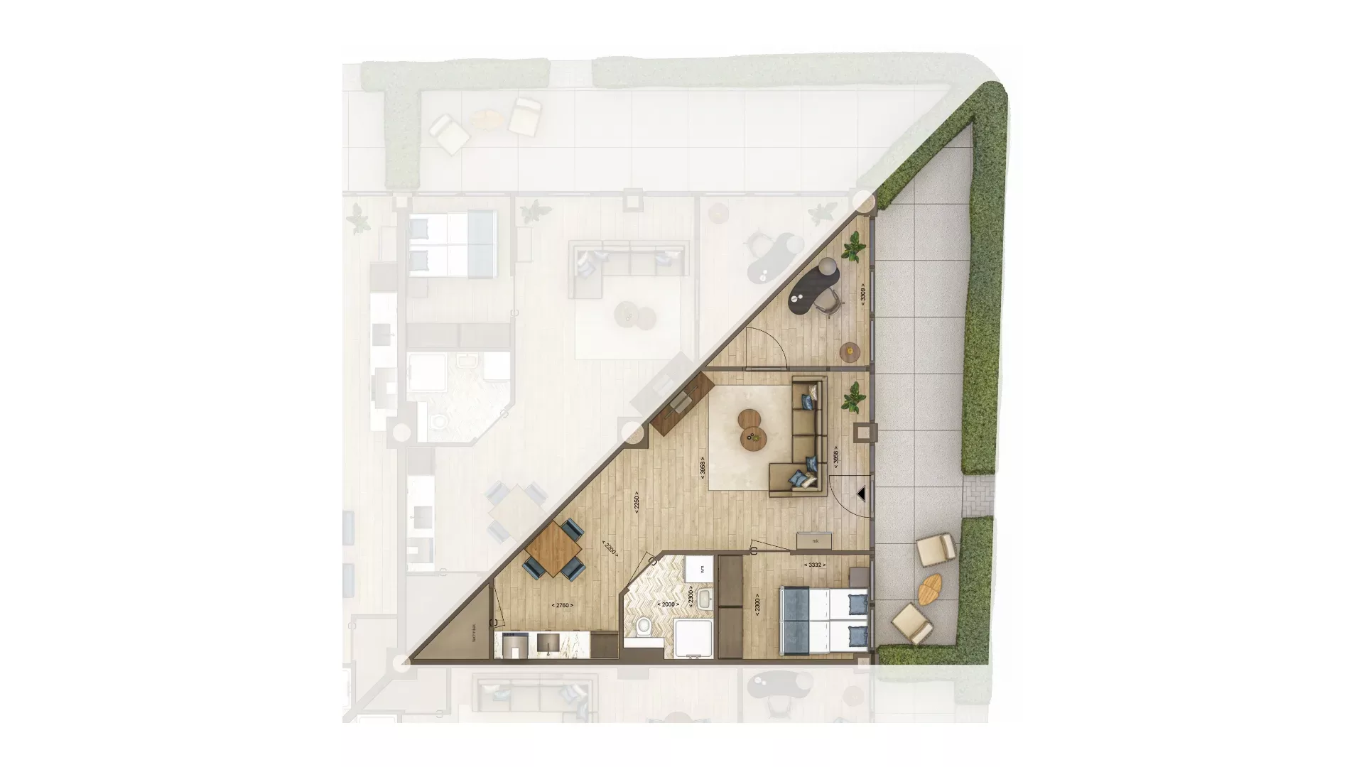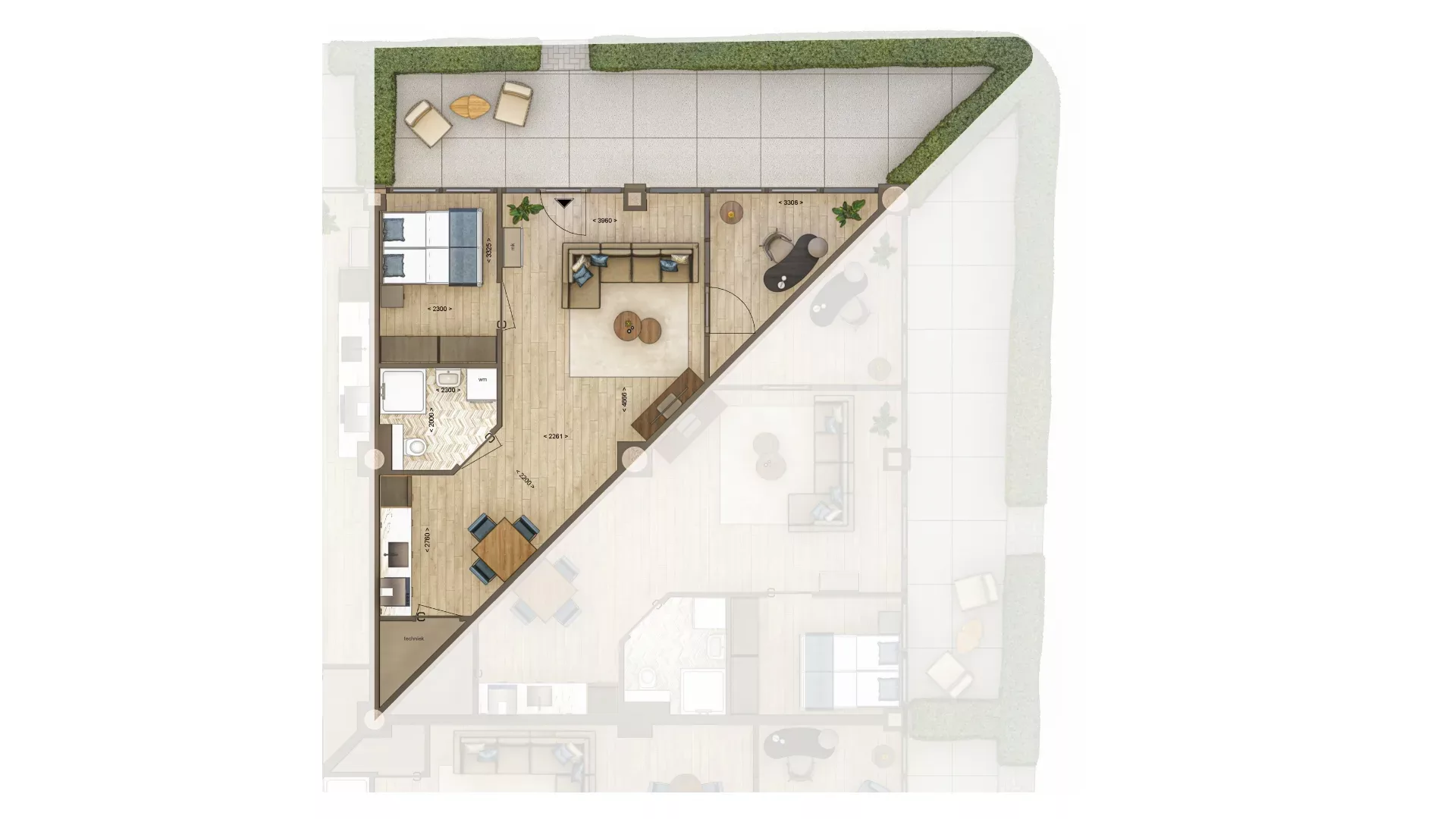 * Hoewel deze verkooptekst met de grootst mogelijke zorg is samengesteld, kan de makelaar geen aansprakelijkheid aanvaarden voor eventuele per abuis opgenomen onjuiste of onvolledige informatie. Verder zijn de gebruikte beelden art-impressions en zijn deze voor indicatief gebruik. Je kunt hier dan ook geen rechten aan ontlenen. De kleuren in de artist-impressions zijn mogelijk niet geheel representatief voor de werkelijk toe te passen kleuren in of van het appartement.