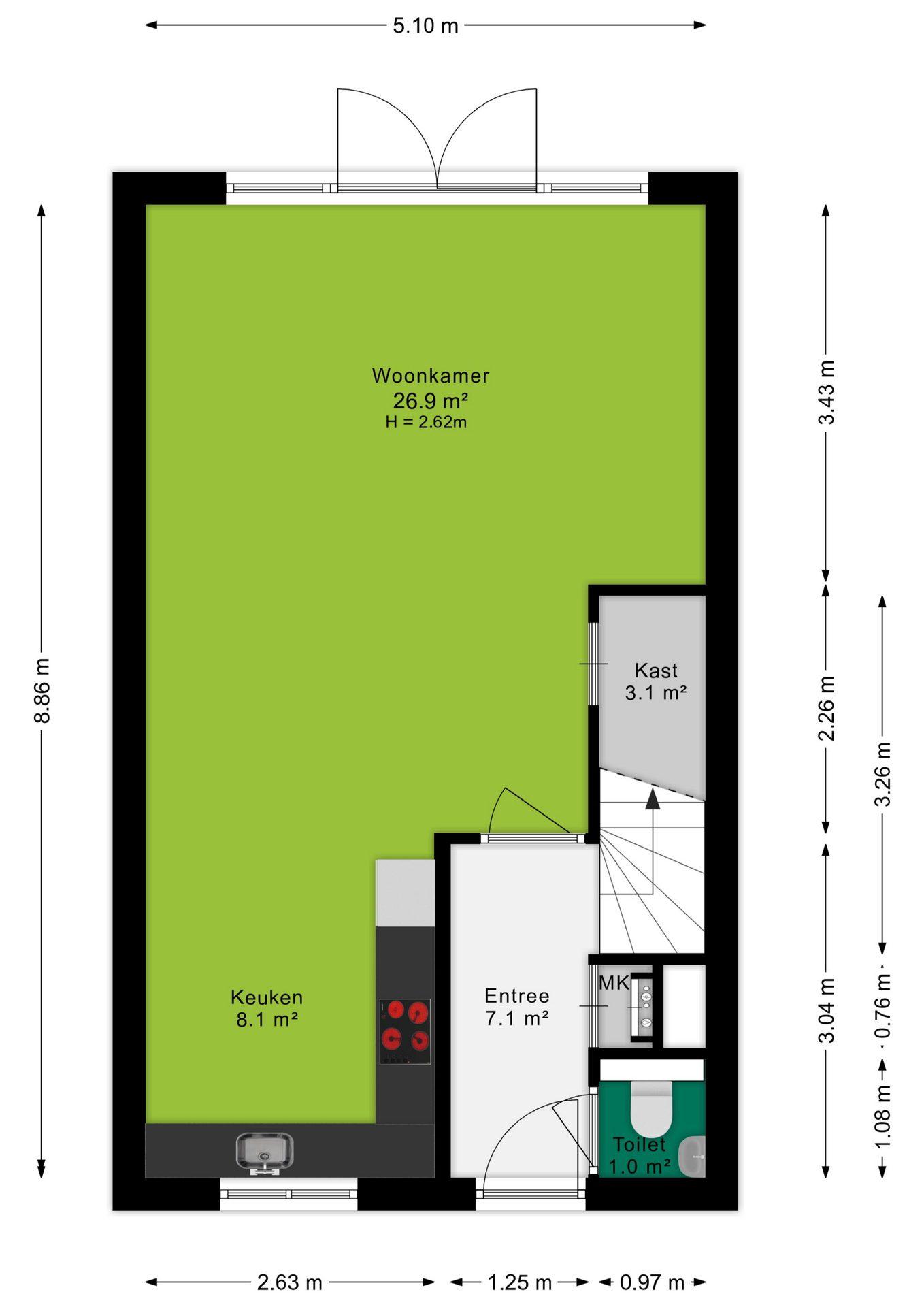 Deze informatie is door ons met de nodige zorgvuldigheid samengesteld. Onzerzijds wordt echter geen enkele aansprakelijkheid aanvaard voor enige onvolledigheid, onjuistheid of anderszins, dan wel de gevolgen daarvan. Alle opgegeven maten en oppervlakten zijn indicatief.