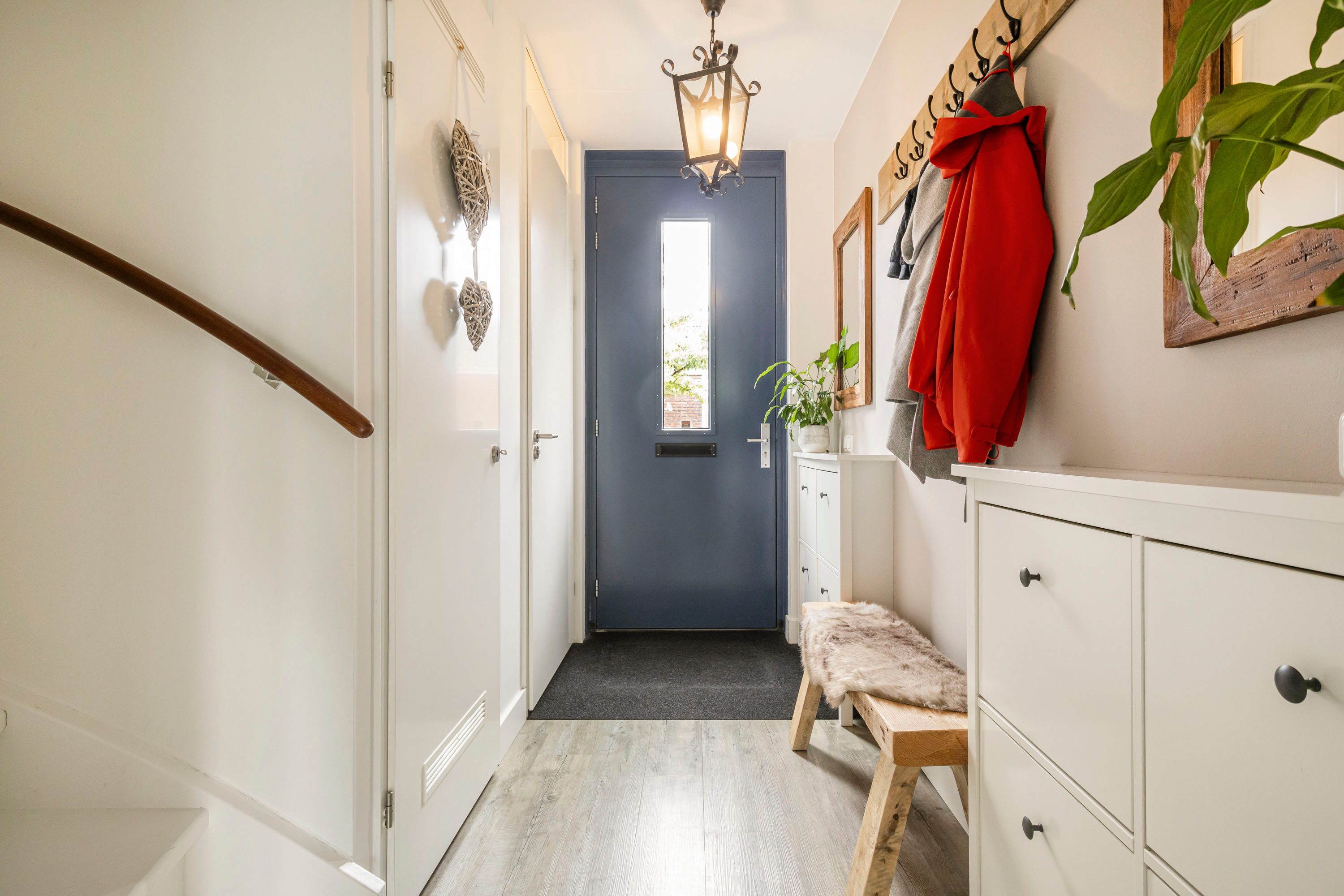 Via de hal/entree kom je allereerst bij het toilet met fonteintje. Naast het toilet bevindt zich de meterkast. Via de trapopgang aan de zijkant van de hal bereik je de eerste verdieping.
