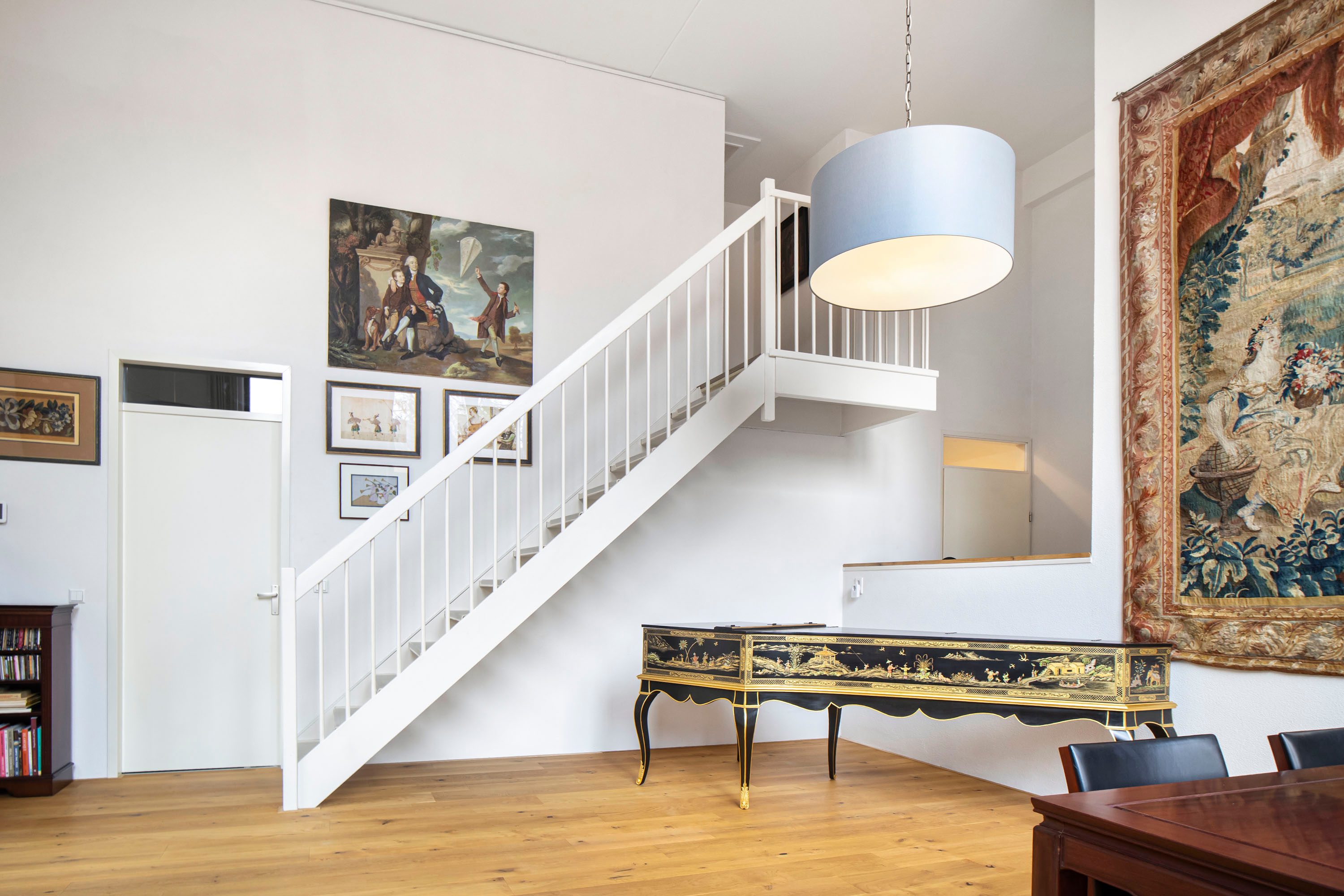 Via de open trap en vide bereik je de verdieping.