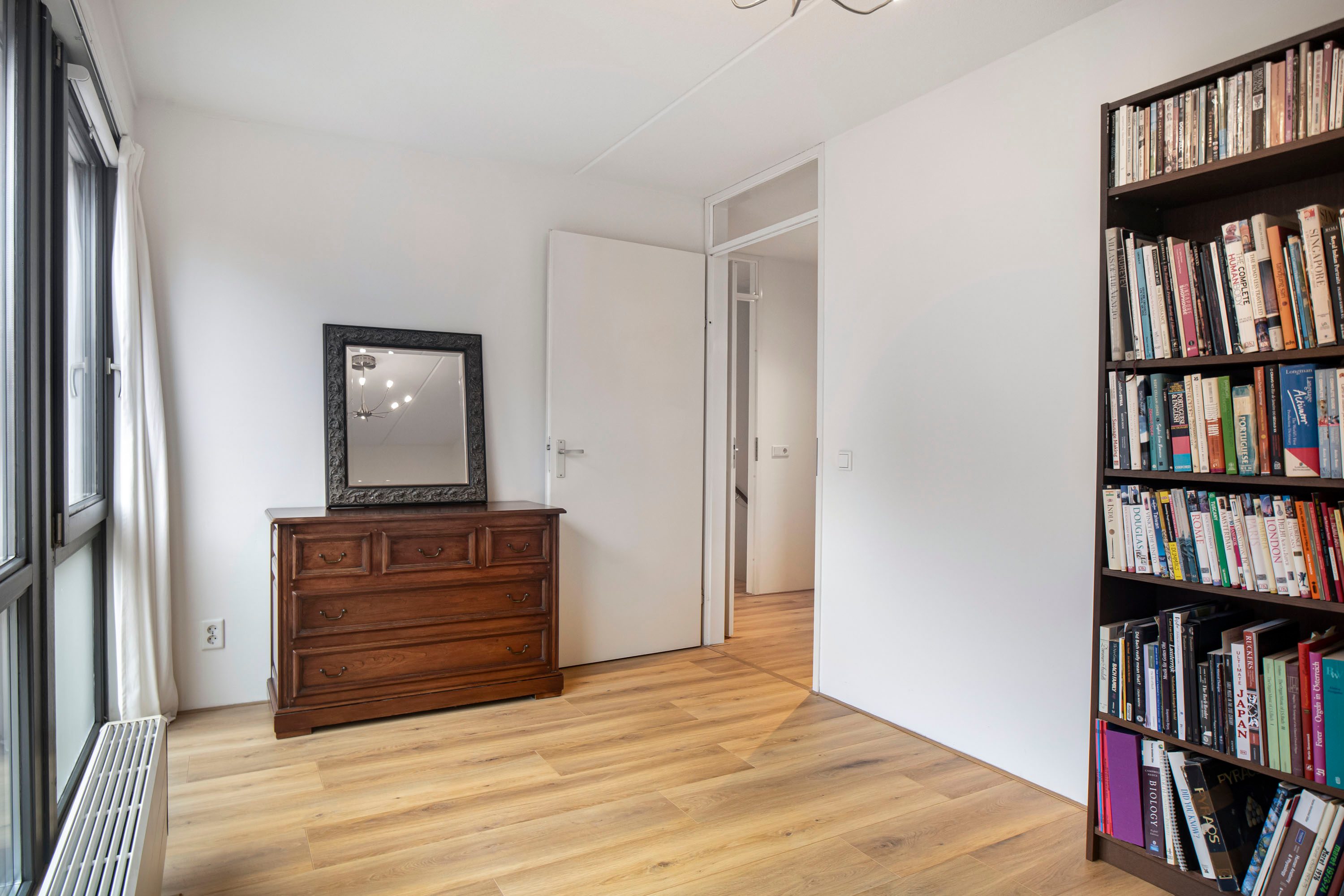 Vanuit één van de slaapkamers, momenteel in gebruik als werkkamer, heb je toegang tot de royale loggia.