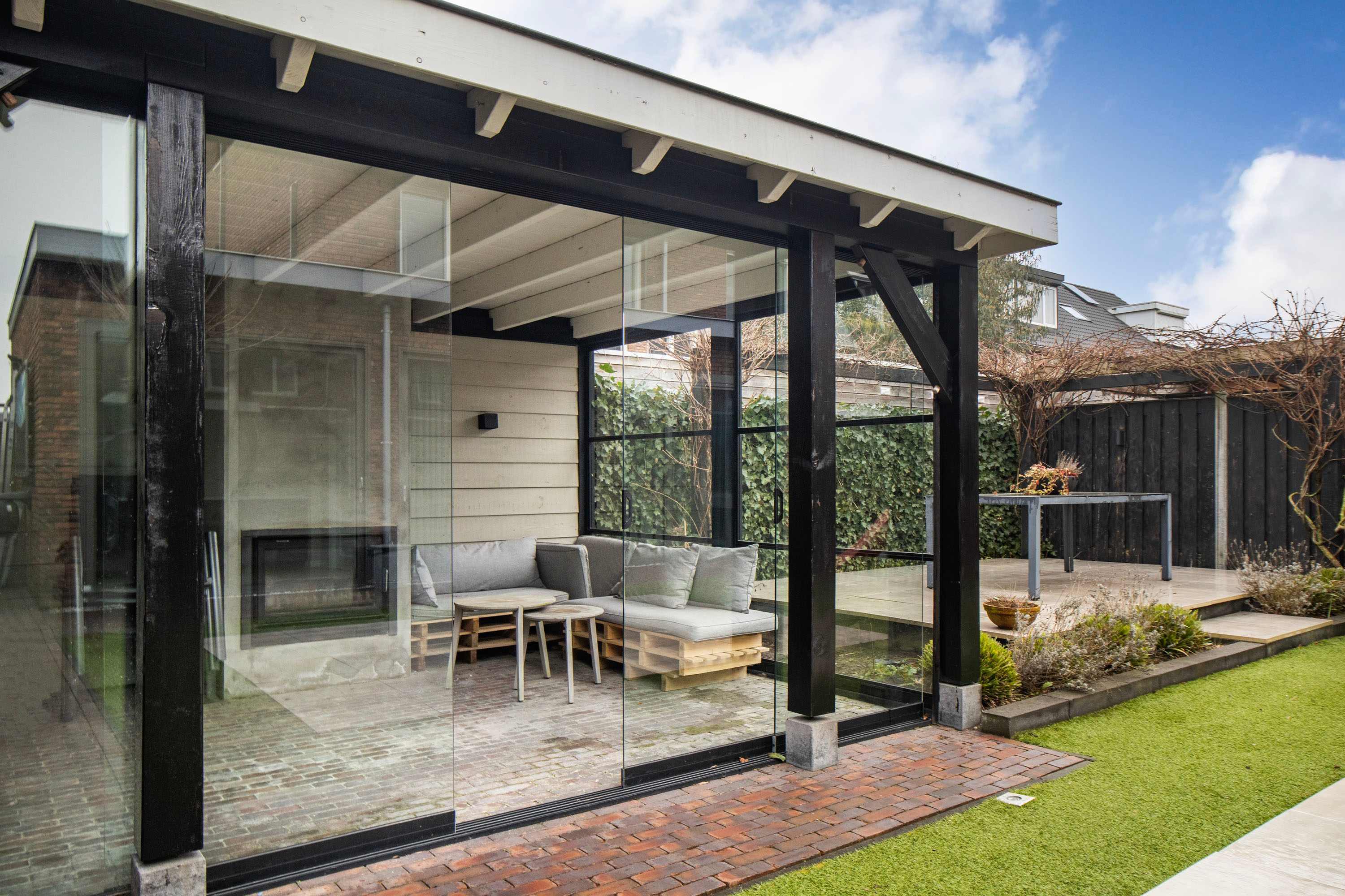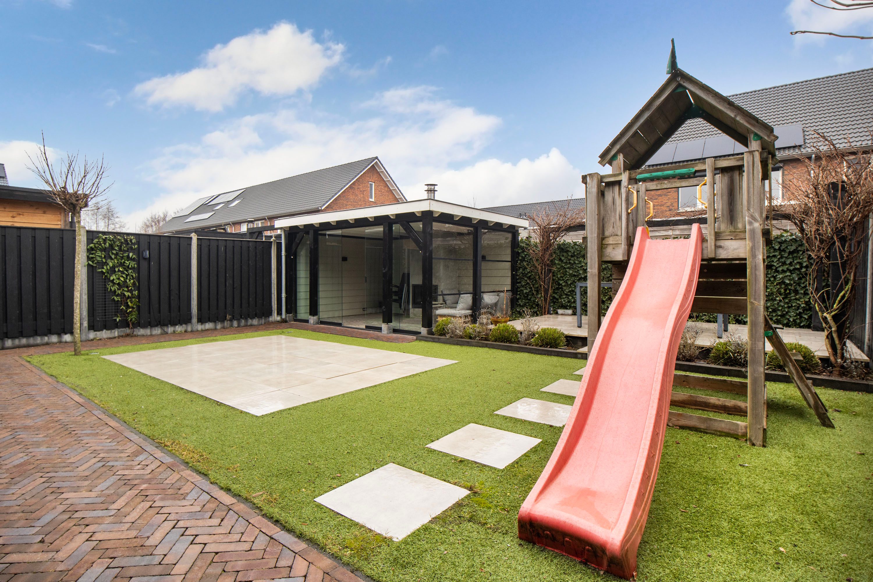 Bij koudere dagen is het heerlijk vertoeven in het tuinhuis met houtkachel. De tuin is daarnaast ook bereikbaar via de oprit, wat extra praktisch is.