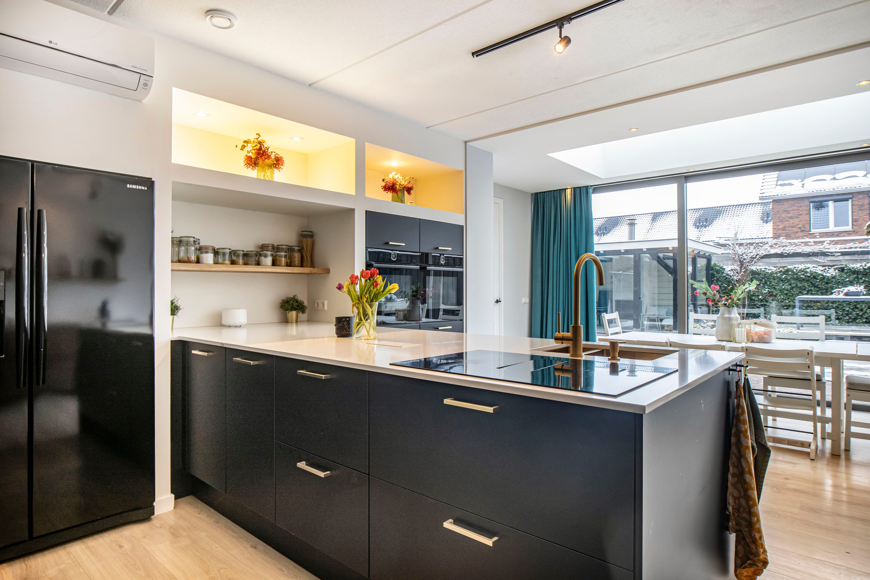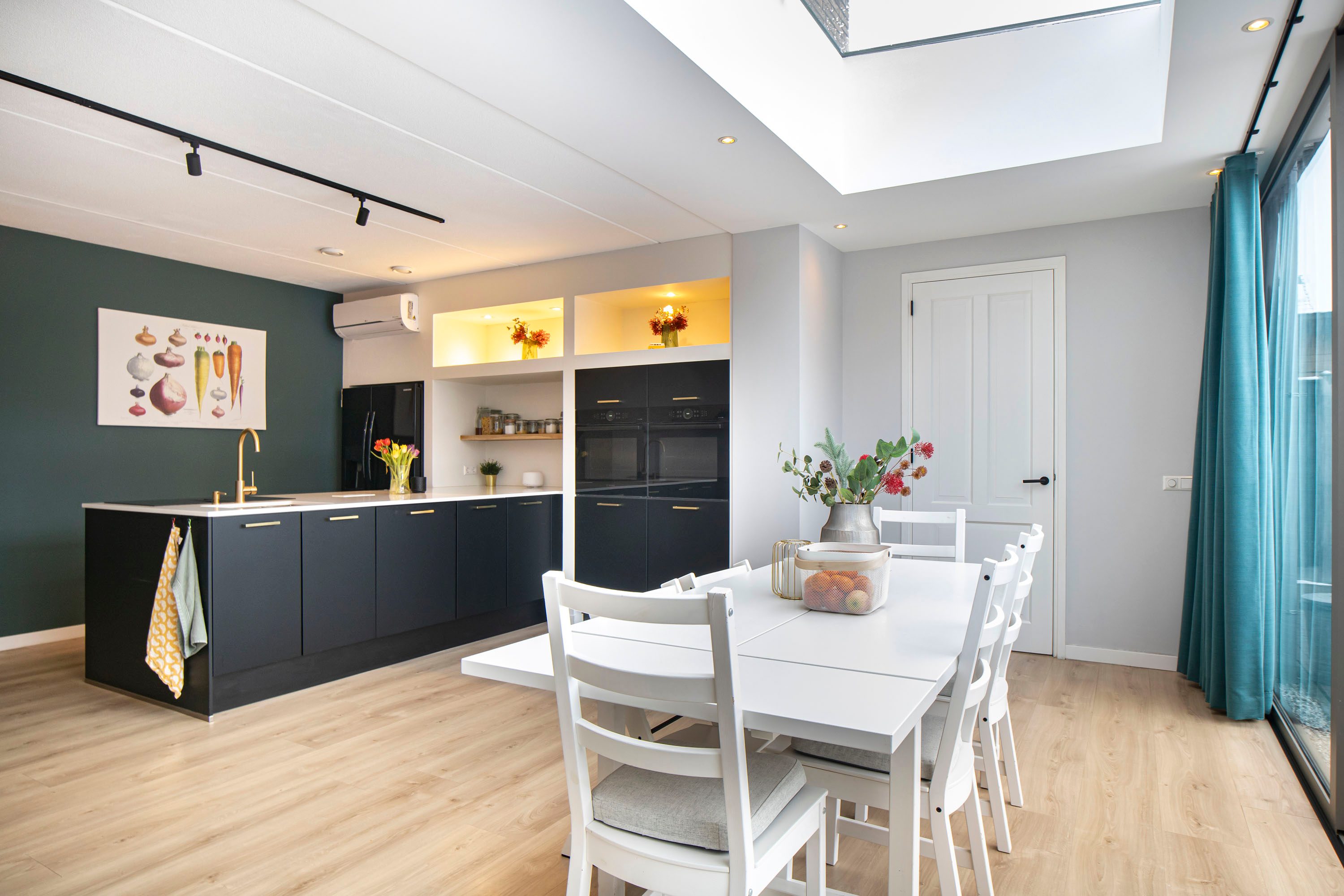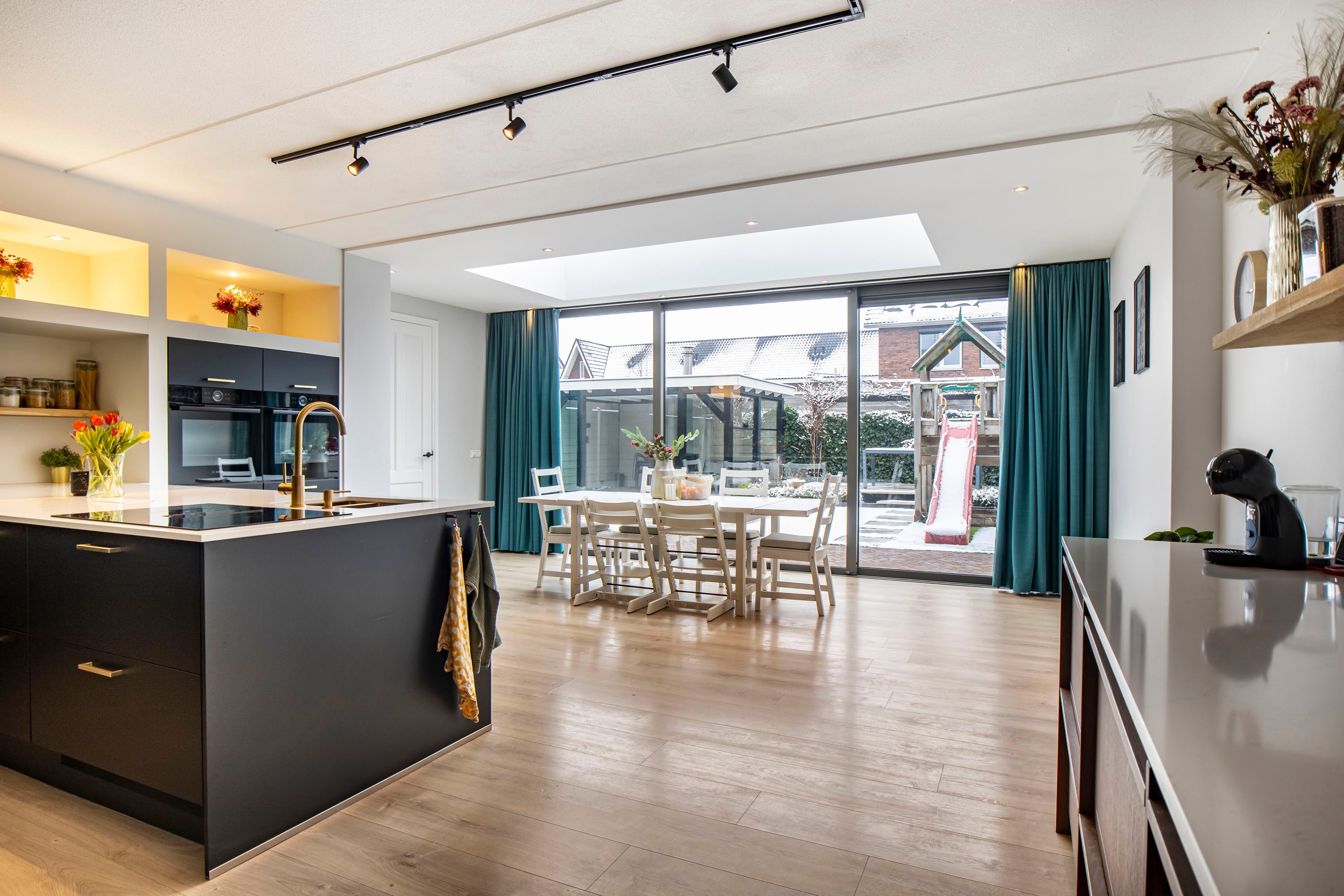 + Luxe open keuken met lichtkoepel en grote schuifpui