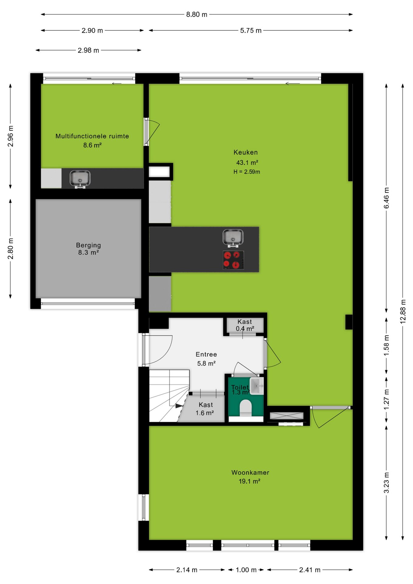 + Multifunctionele ruimte met keukenblok