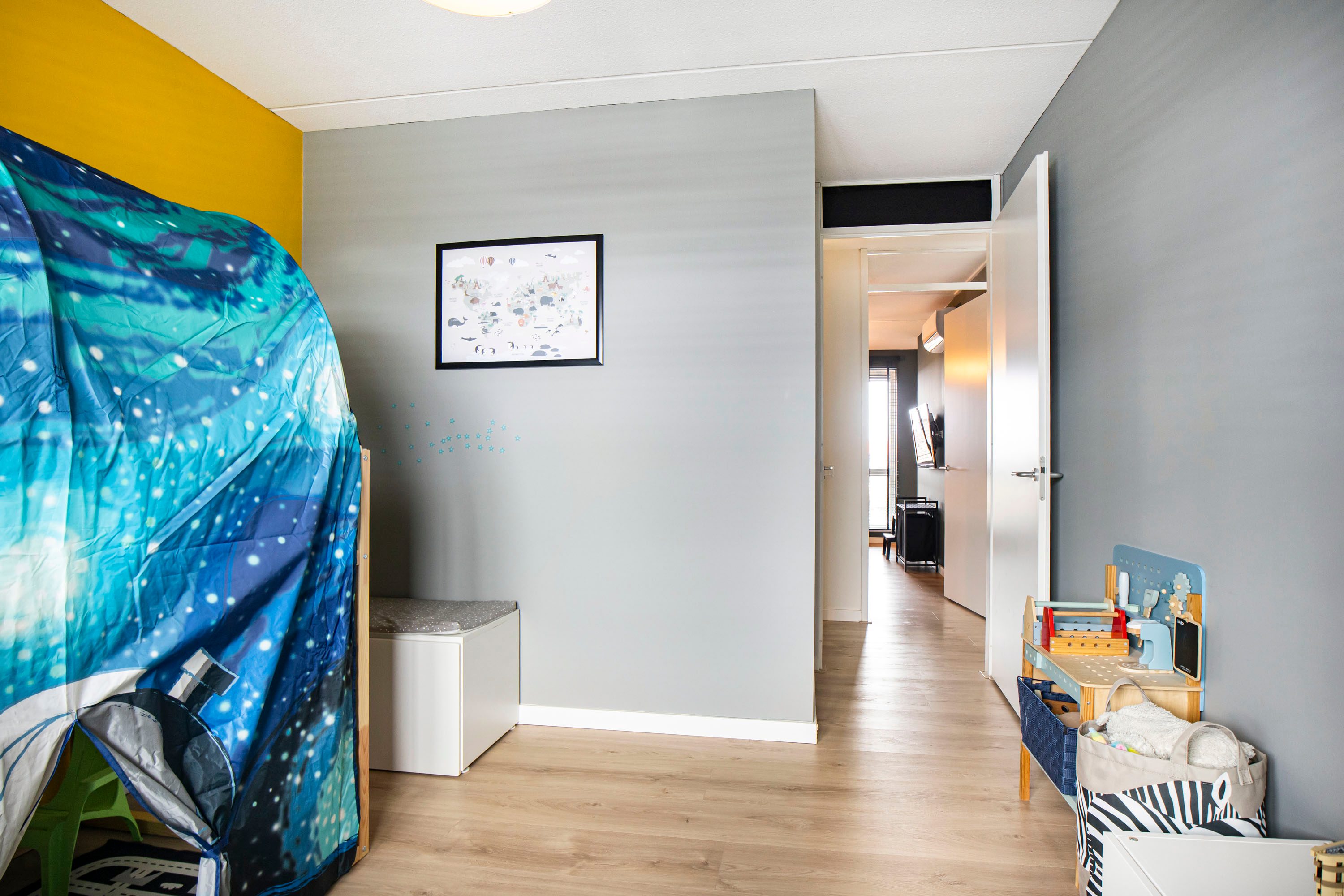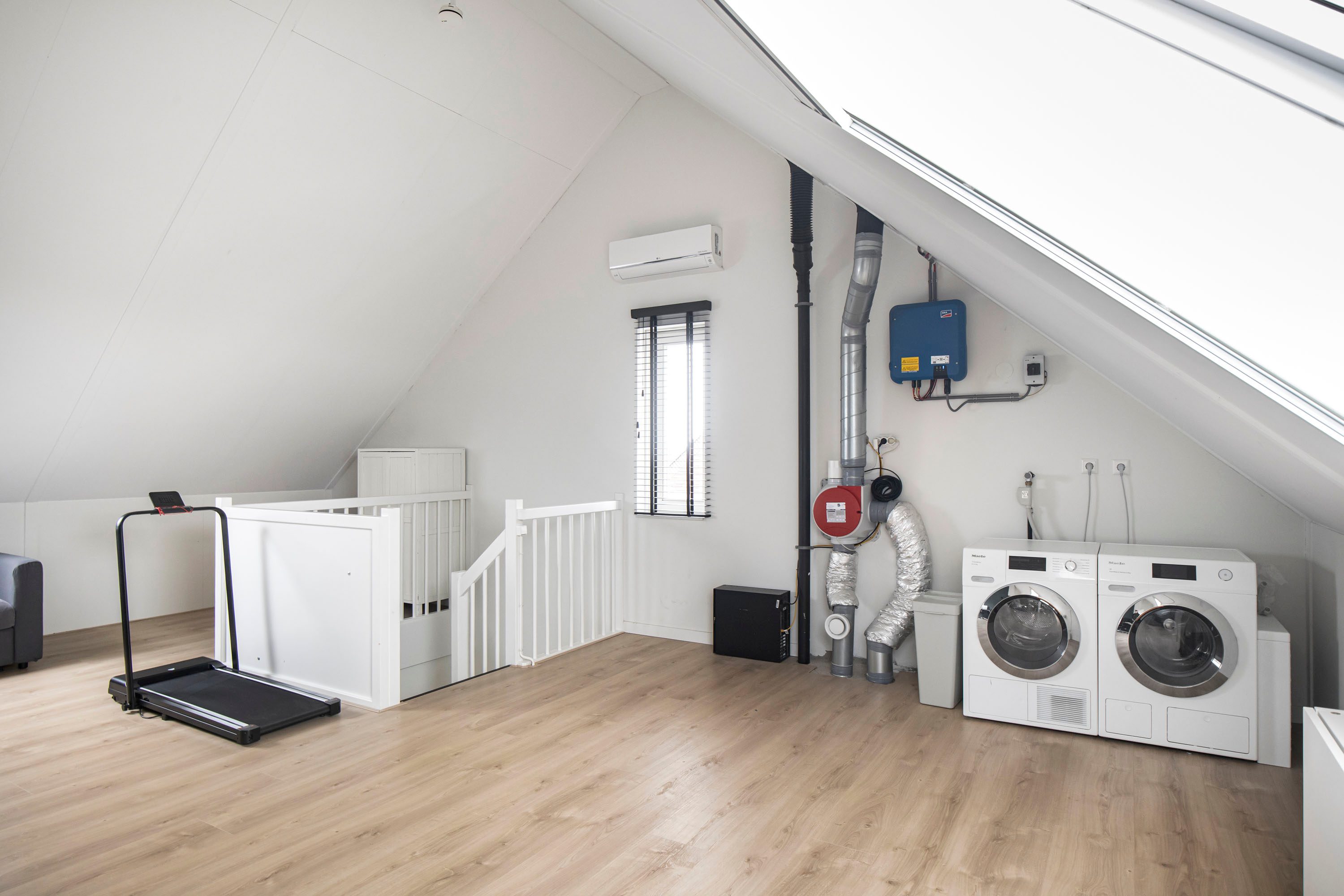 Op deze verdieping bevinden zich tevens de wasmachineaansluiting en ook hier is airconditioning aanwezig. Een ideale verdieping voor een groot gezin, thuiswerken of hobby’s.
