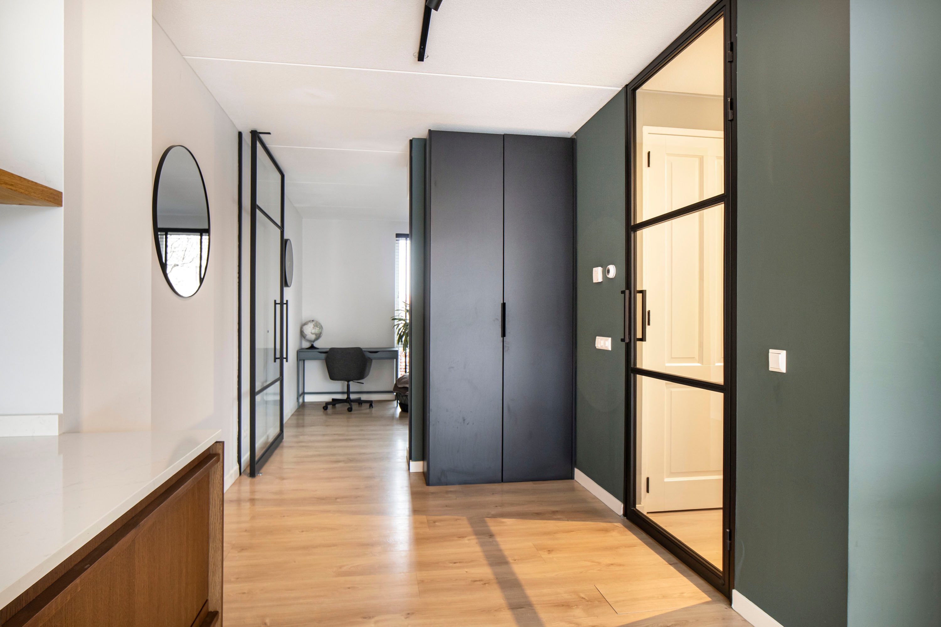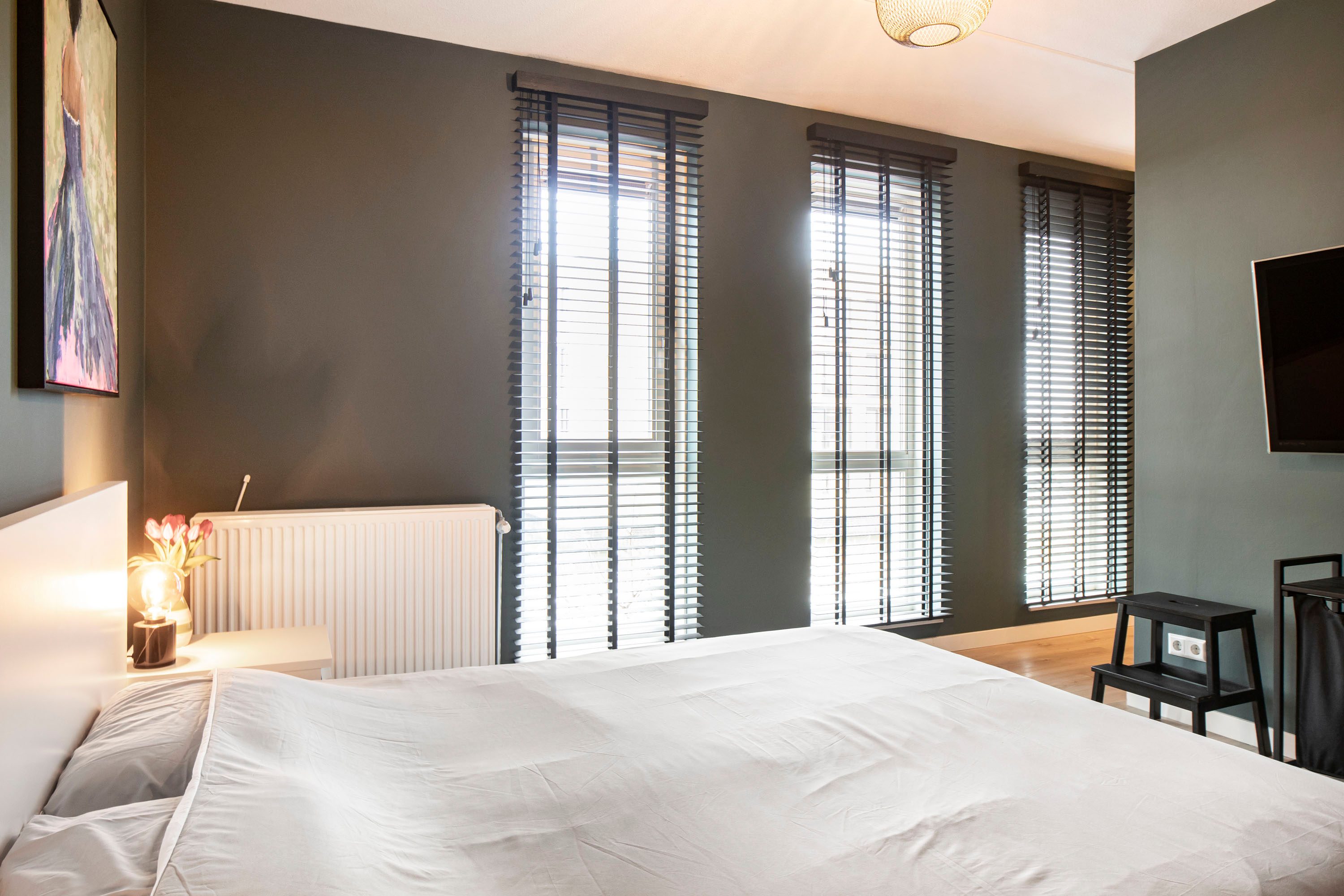 De slaapkamer aan de voorzijde beschikt bovendien over een royale inloopkast van circa 7 m², een absolute luxe. De slaapkamers aan de achterzijde zijn uitgerust met rolluiken.