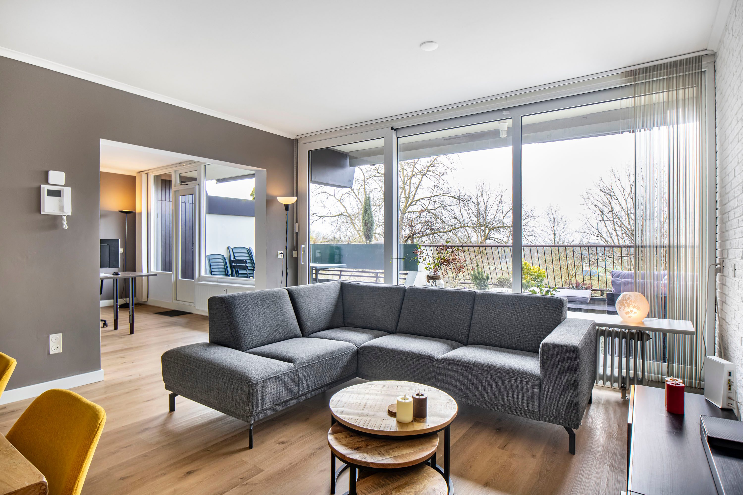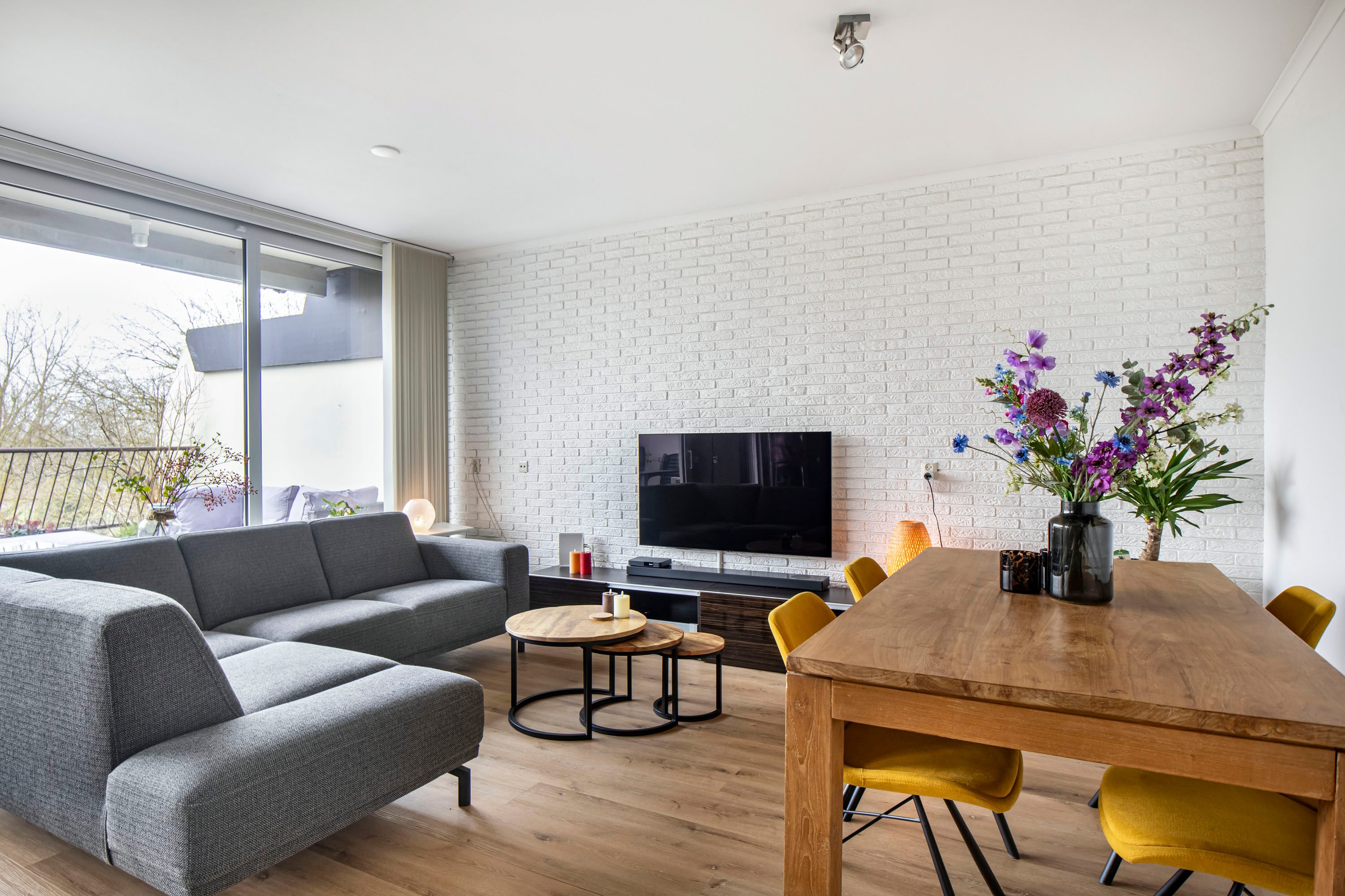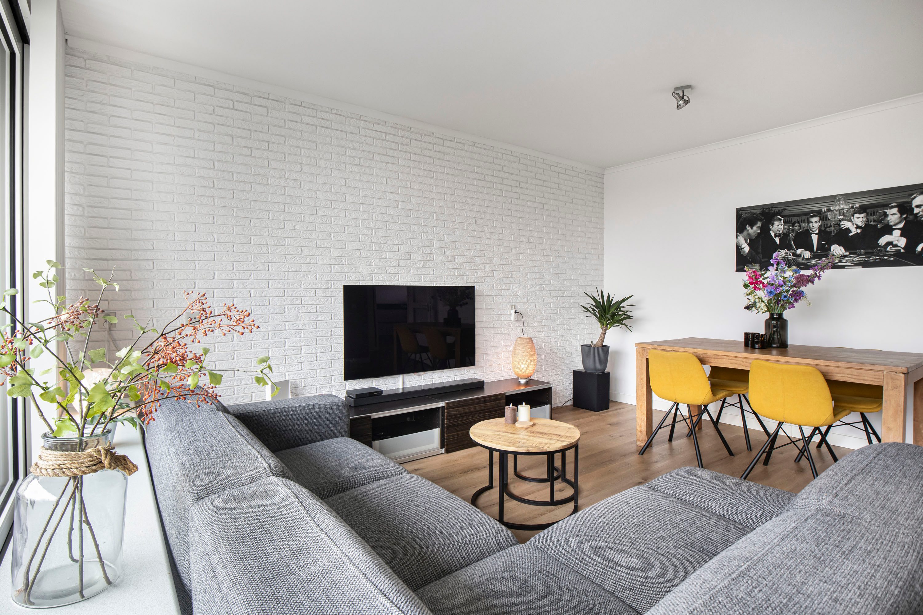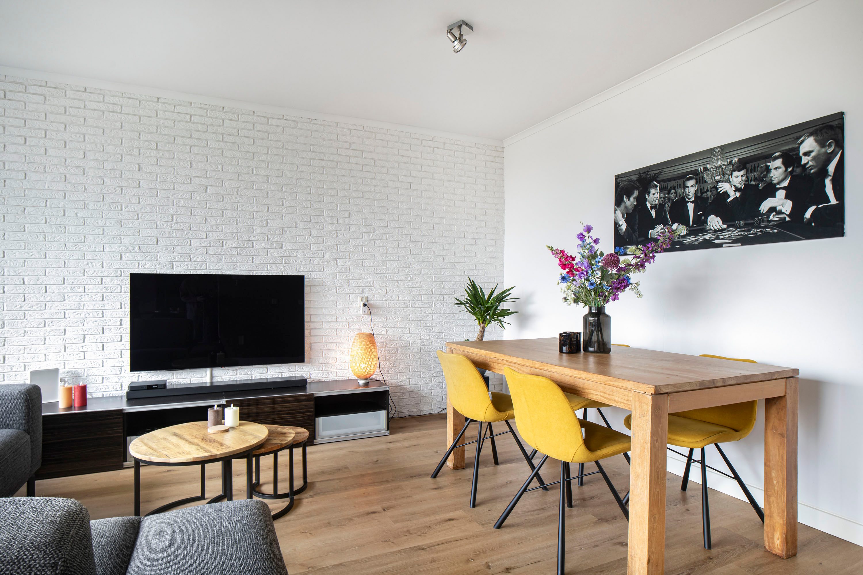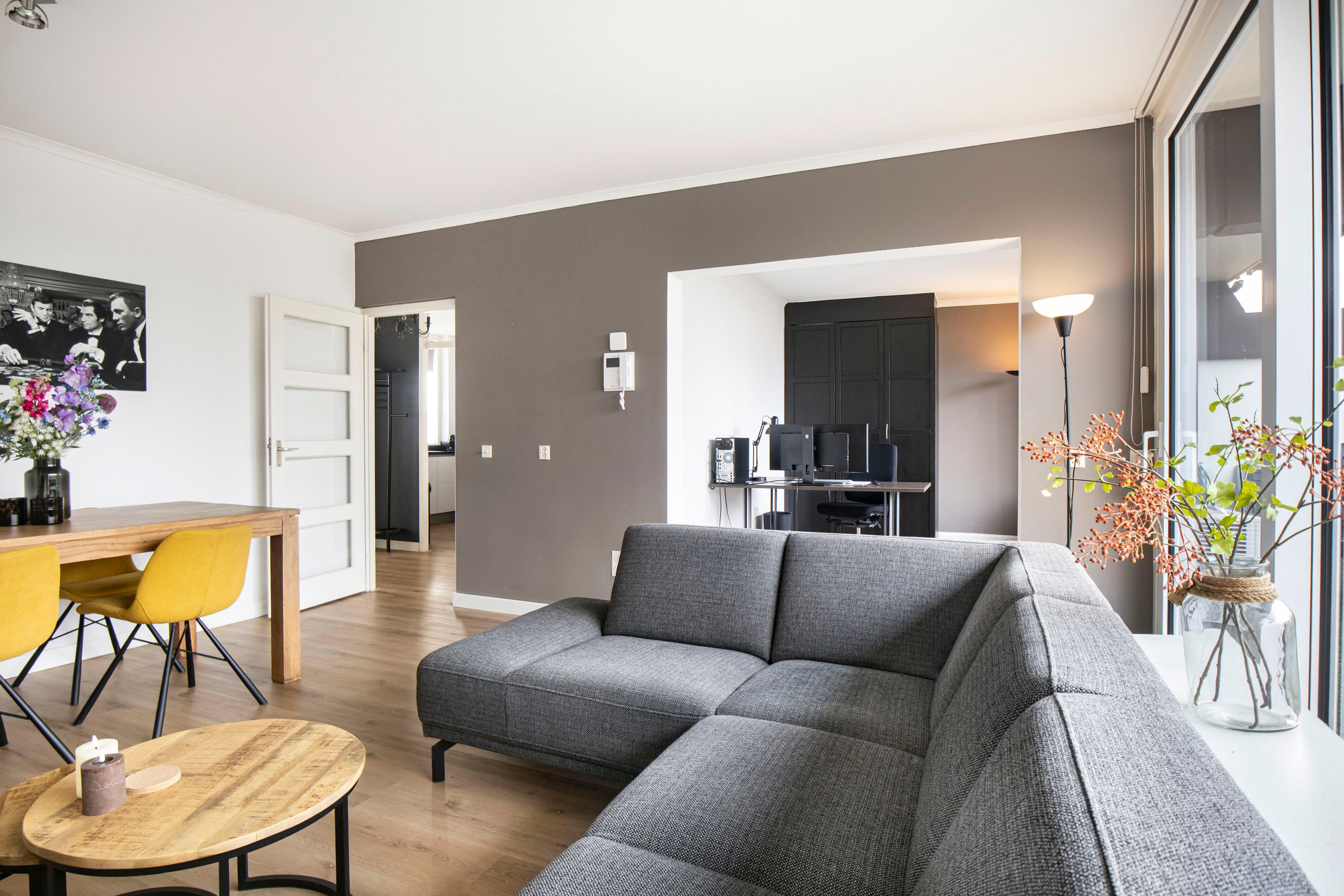 De woonkamer wordt gekenmerkt door de grote raampartij, waardoor het daglicht rijkelijk binnenvalt. Er is voldoende ruimte voor zowel een comfortabele zithoek als een eethoek.