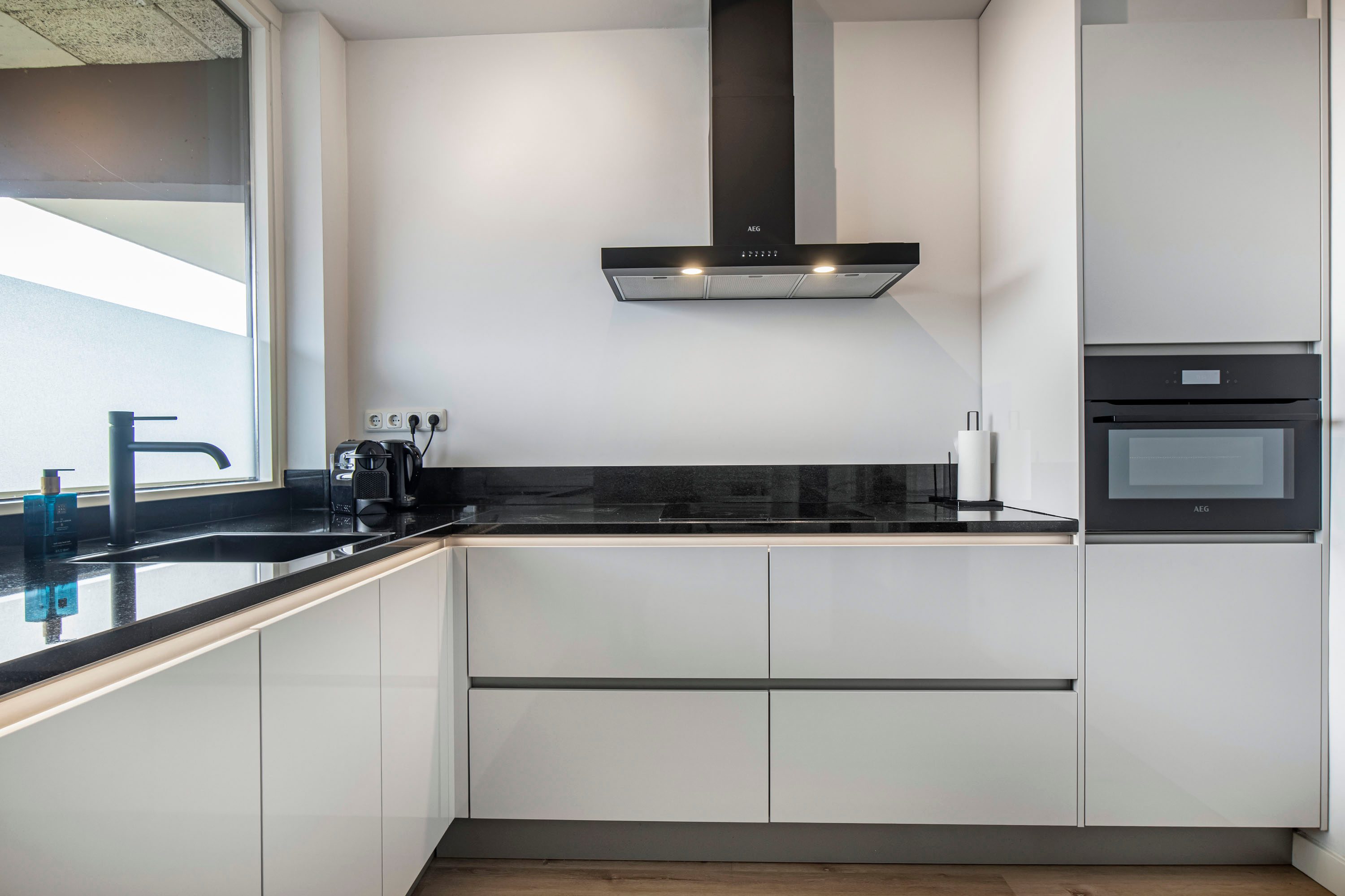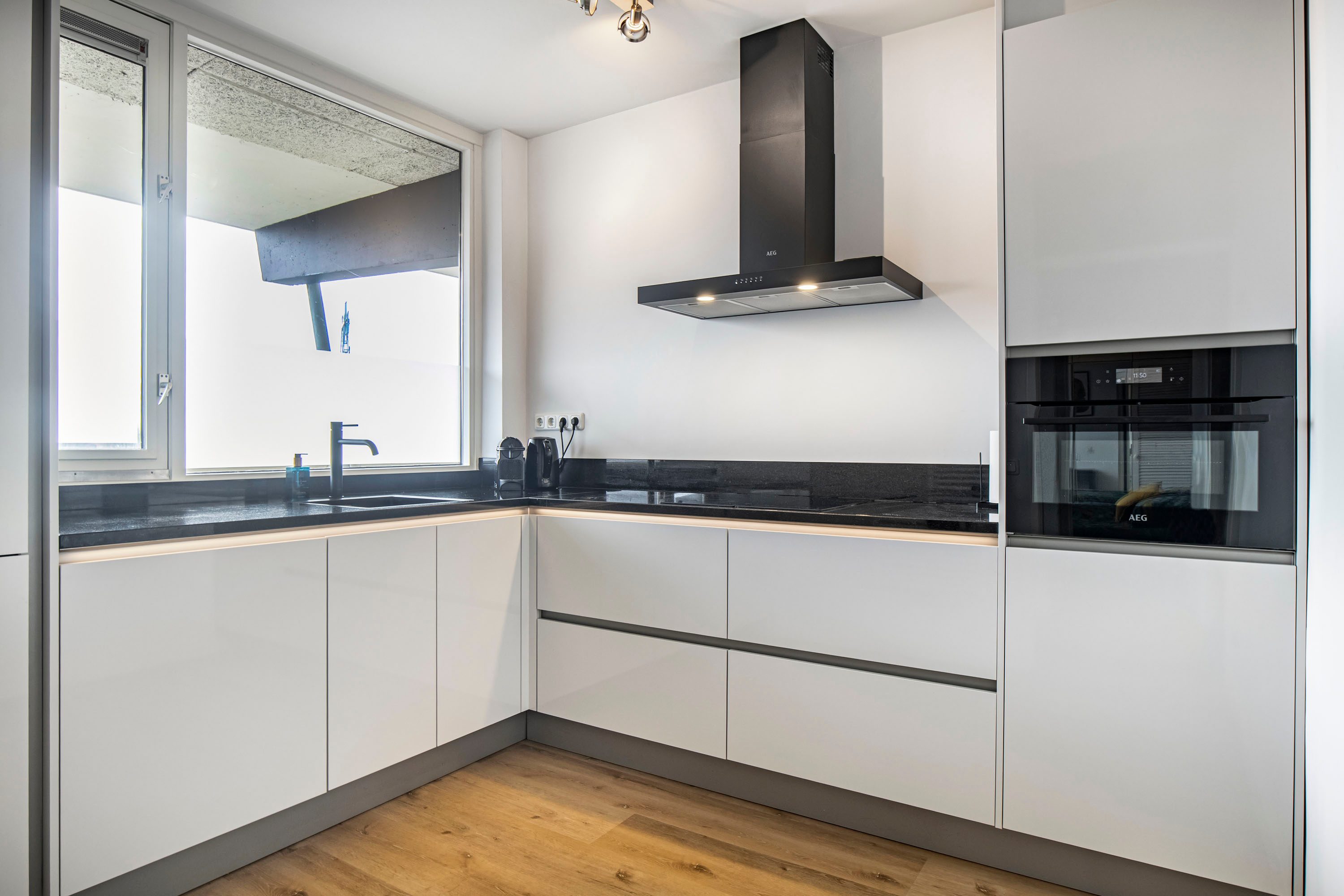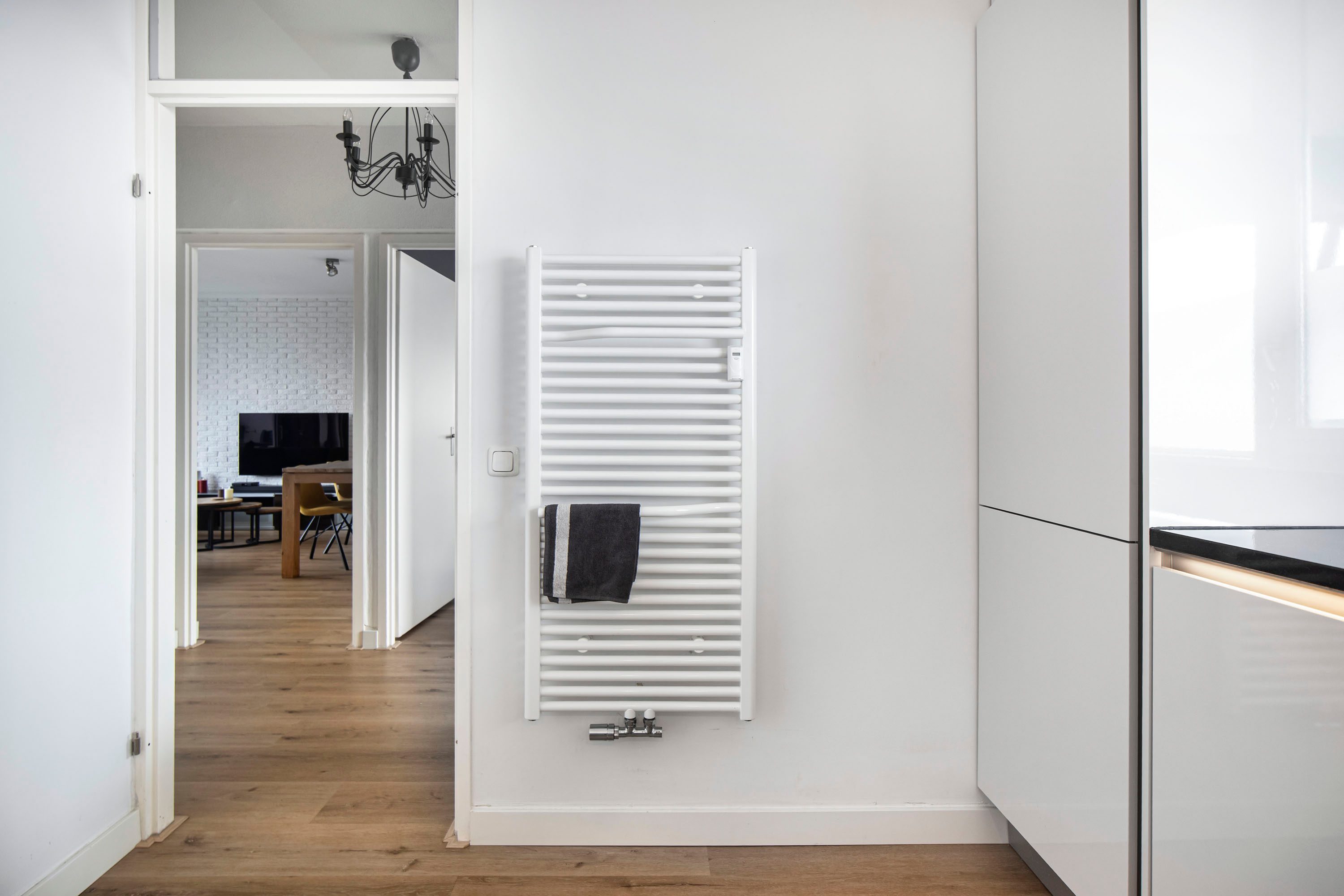 De keuken, gelegen aan de voorzijde van de woning is nieuw en van alle gemakken voorzien. Je vindt hier onder andere een inductiekookplaat, afzuigkap, combi-oven, vaatwasser en een koel-vriescombinatie en ingebouwde wasmachine. Daarnaast is er een designradiator, prettig voor extra warmte en praktisch voor het ophangen van hand- en theedoeken.