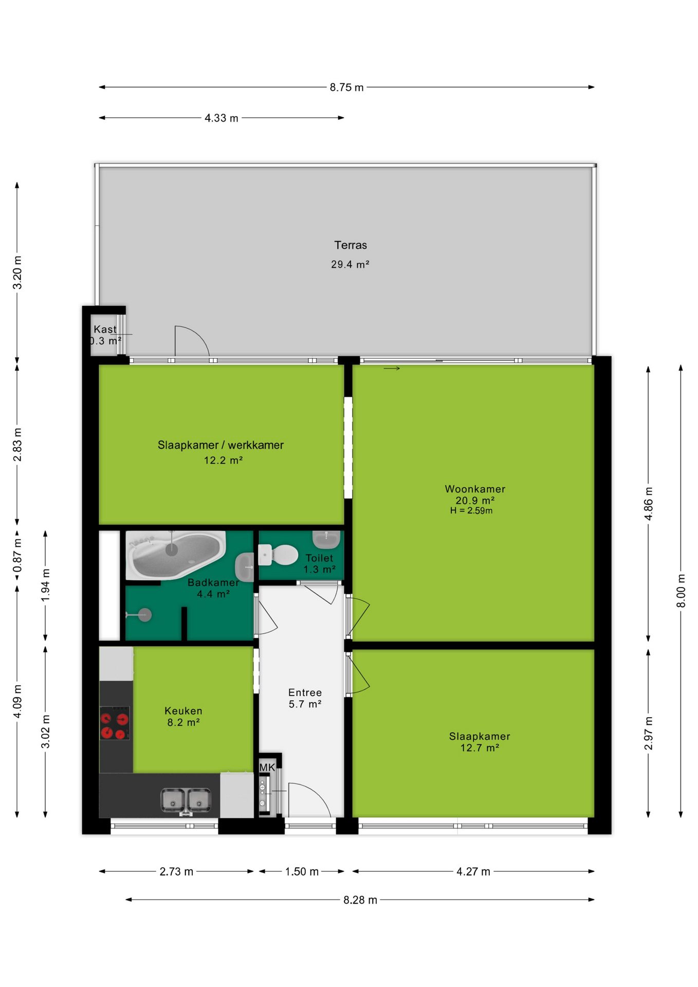 + Mogelijkheid tot creëren van een tweede slaapkamer