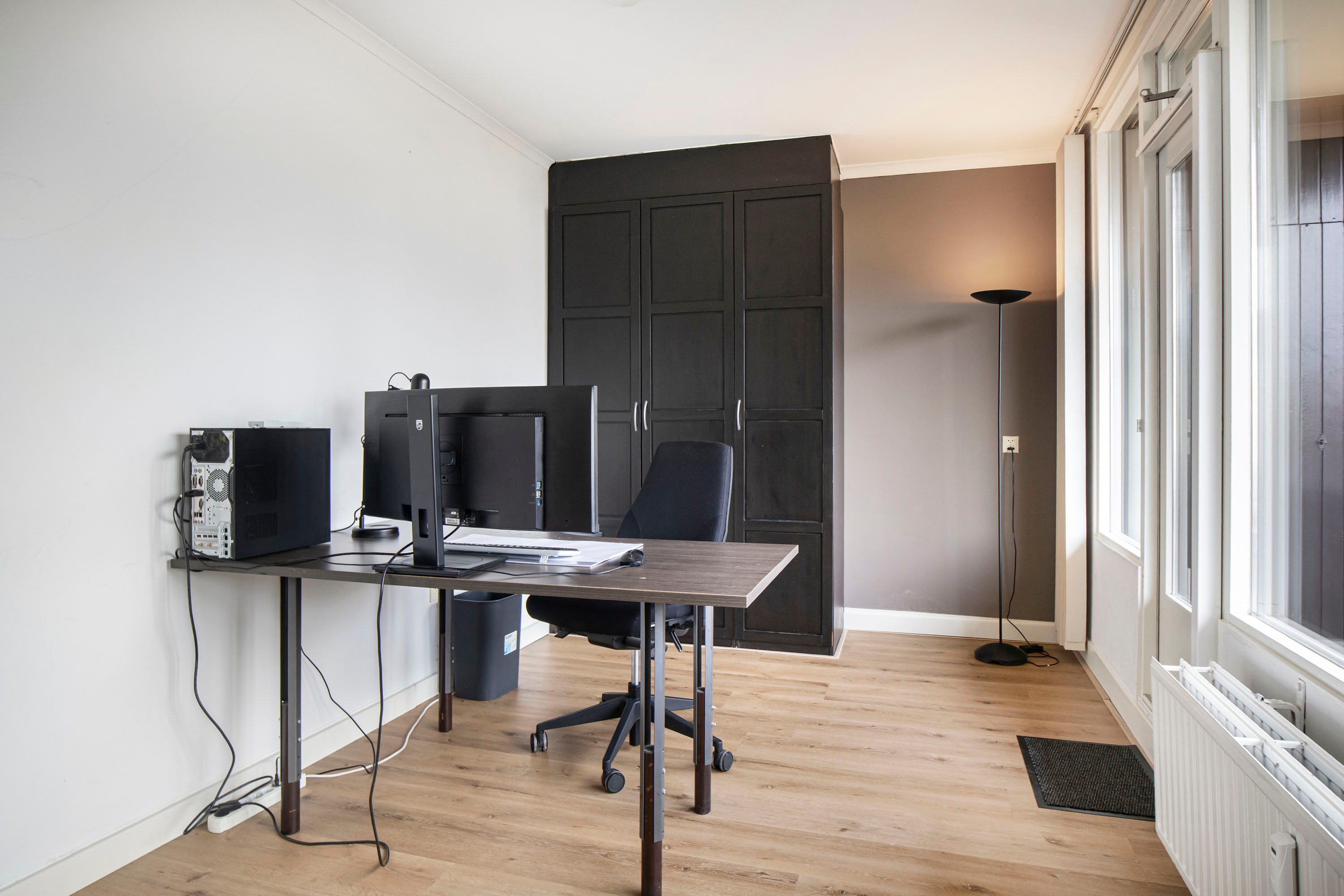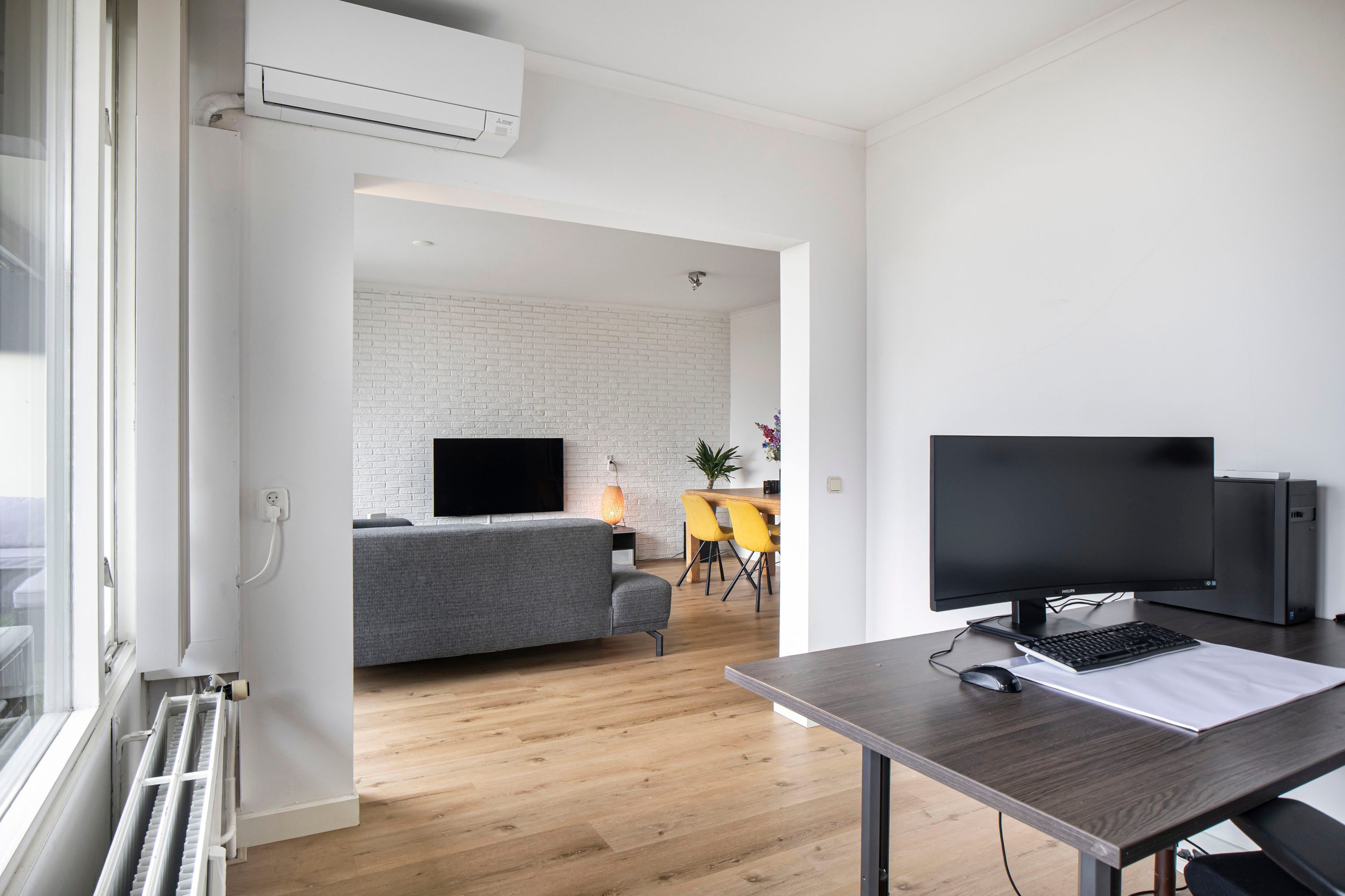 Aansluitend aan de woonkamer bevindt zich een extra ruimte die momenteel is ingericht als thuiswerkplek en is voorzien van airconditioning welke zowel koeling als verwarming biedt. Deze ruimte biedt de mogelijkheid om eenvoudig een tweede slaapkamer te realiseren. Vanuit zowel de woonkamer als deze kamer heb je toegang tot het terras.