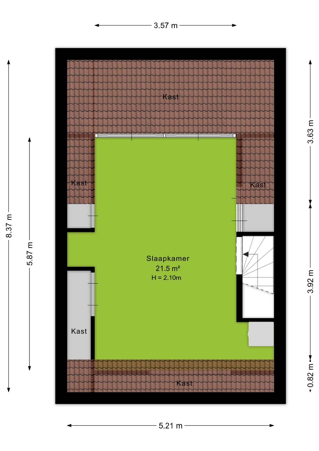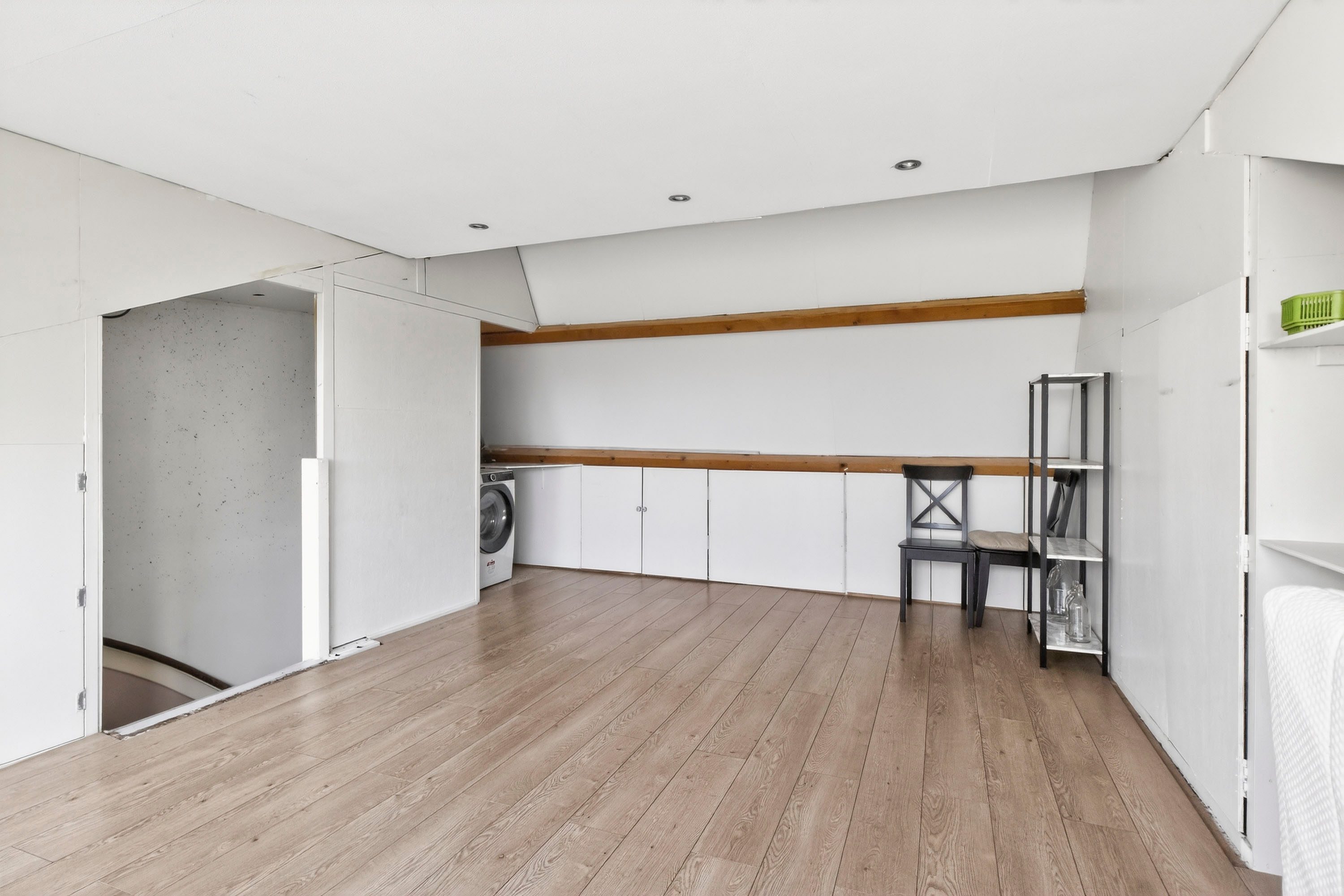 Via een vaste trap bereik je de tweede verdieping. Dit is nu een grote, open ruimte die door de grote raampartij aan de achterzijde verrassend licht is. De mogelijkheden hier zijn eindeloos: je kunt hier eenvoudig één of zelfs twee extra slaapkamers creëren, maar het is ook een fantastische plek voor een thuiskantoor of een eigen sportruimte. De wasmachine en droger staan praktisch opgesteld en zijn netjes weggewerkt achter vaste kastruimte. Onder de schuine kap is bovendien nog veel extra bergruimte aanwezig.