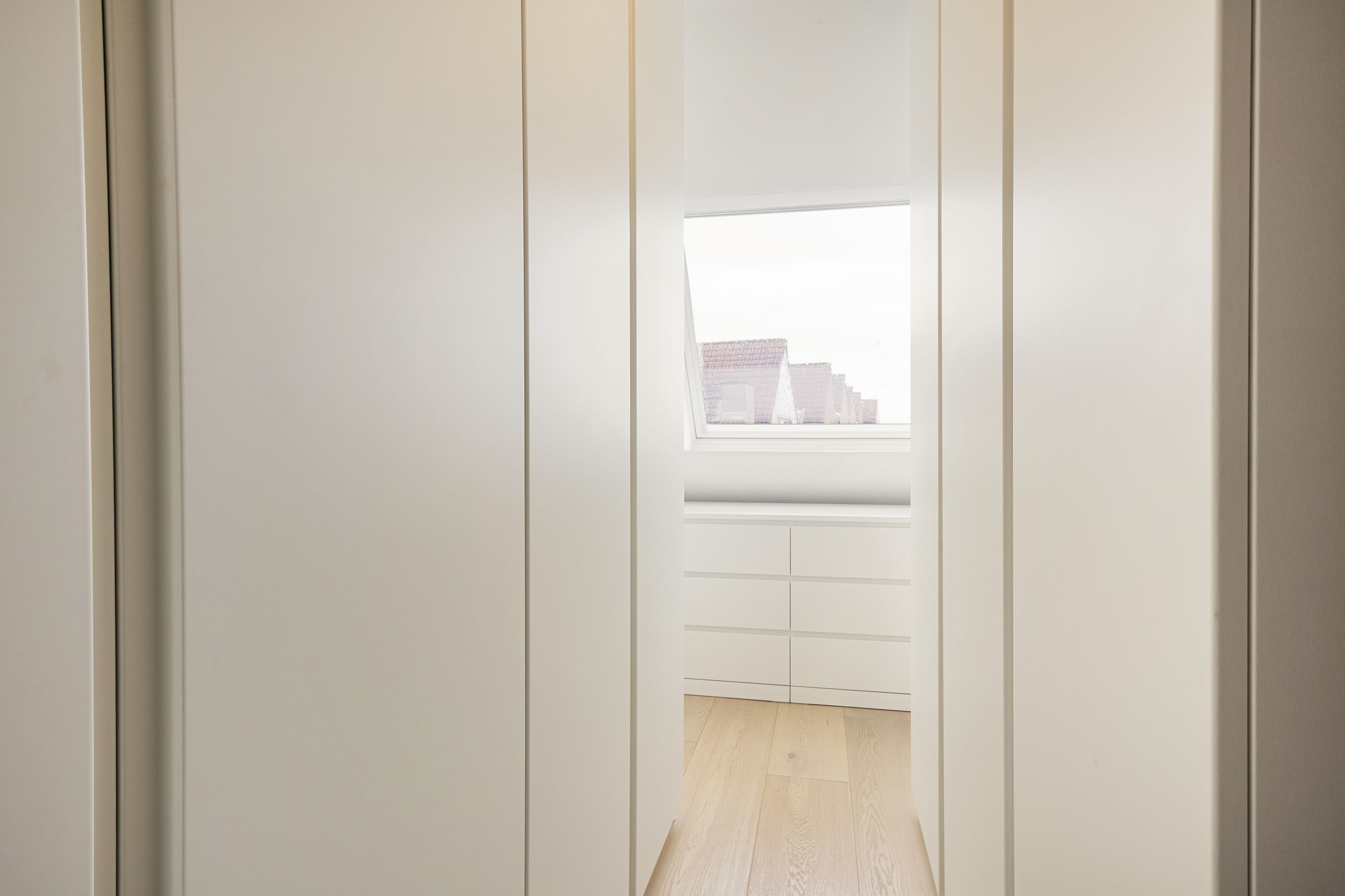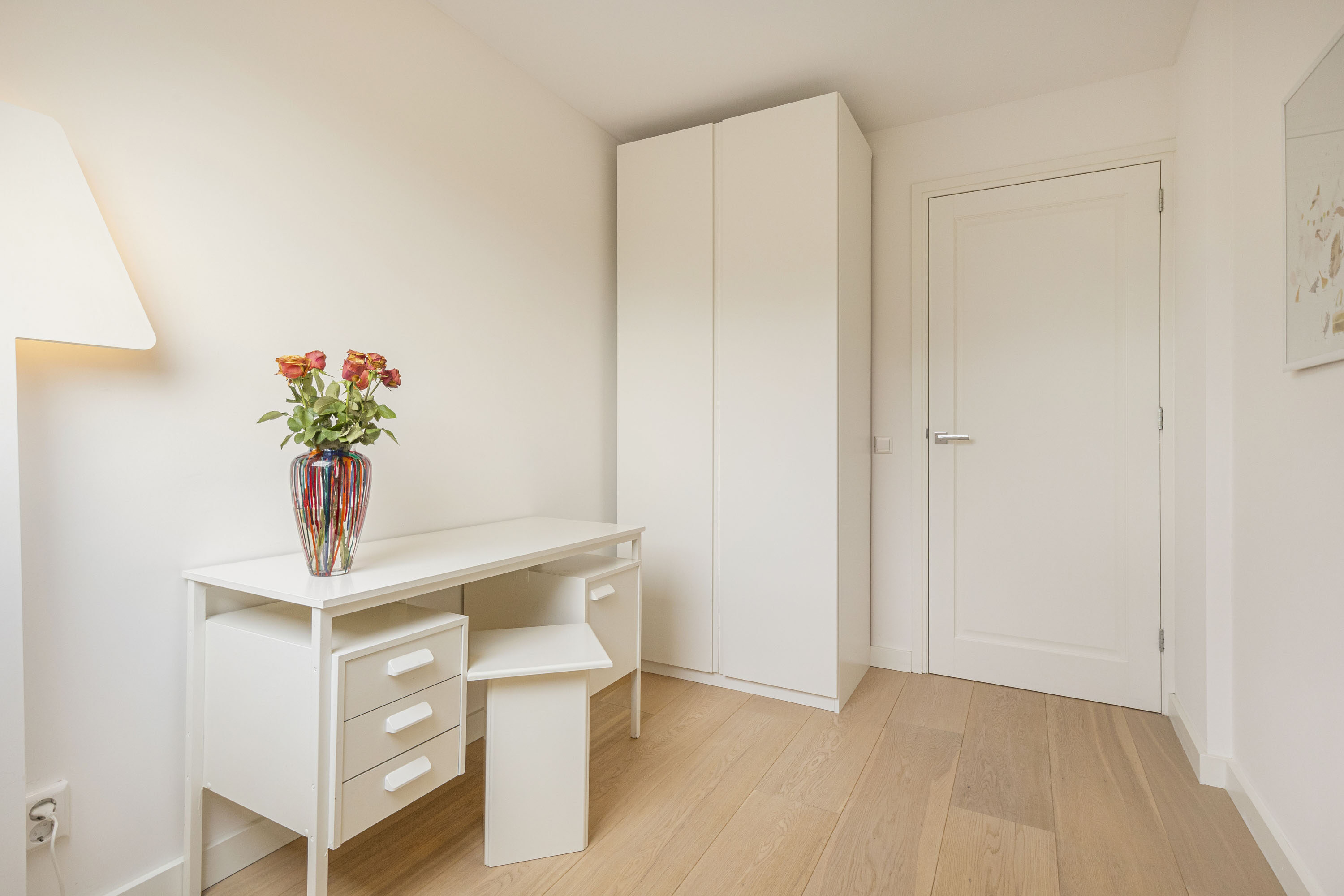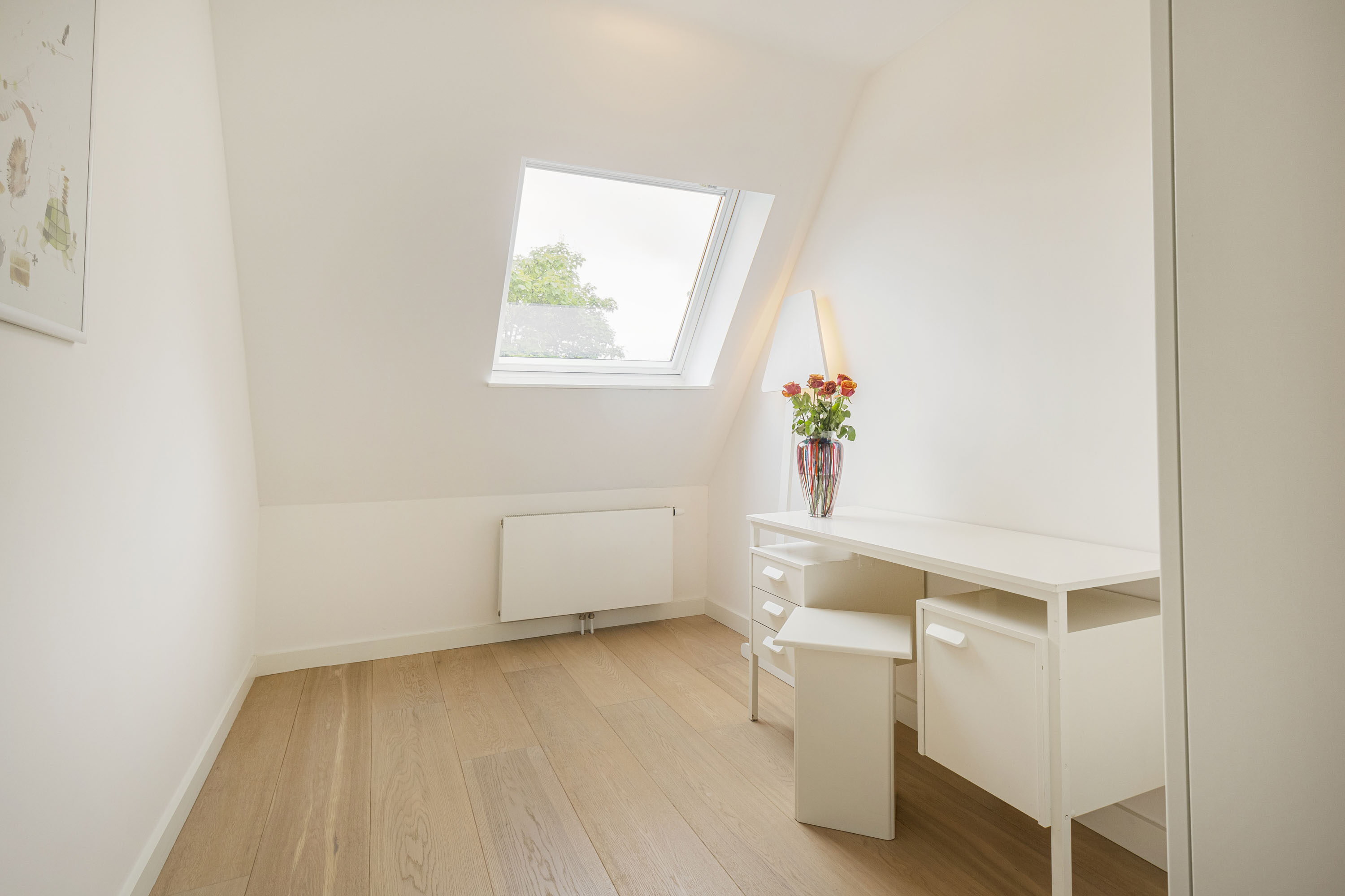 Op de tweede verdieping vind je een royale derde slaapkamer, die uitstekend geschikt is voor gezinnen, thuiswerkers of gasten. De veelzijdigheid van deze kamer biedt talloze mogelijkheden om het volledig naar eigen wens in te richten. Over de volle breedte van de slaapkamer is ruim voldoende opbergruimte aanwezig. Op de overloop is er de mogelijkheid voor het opstellen van de wasmachine en droger.