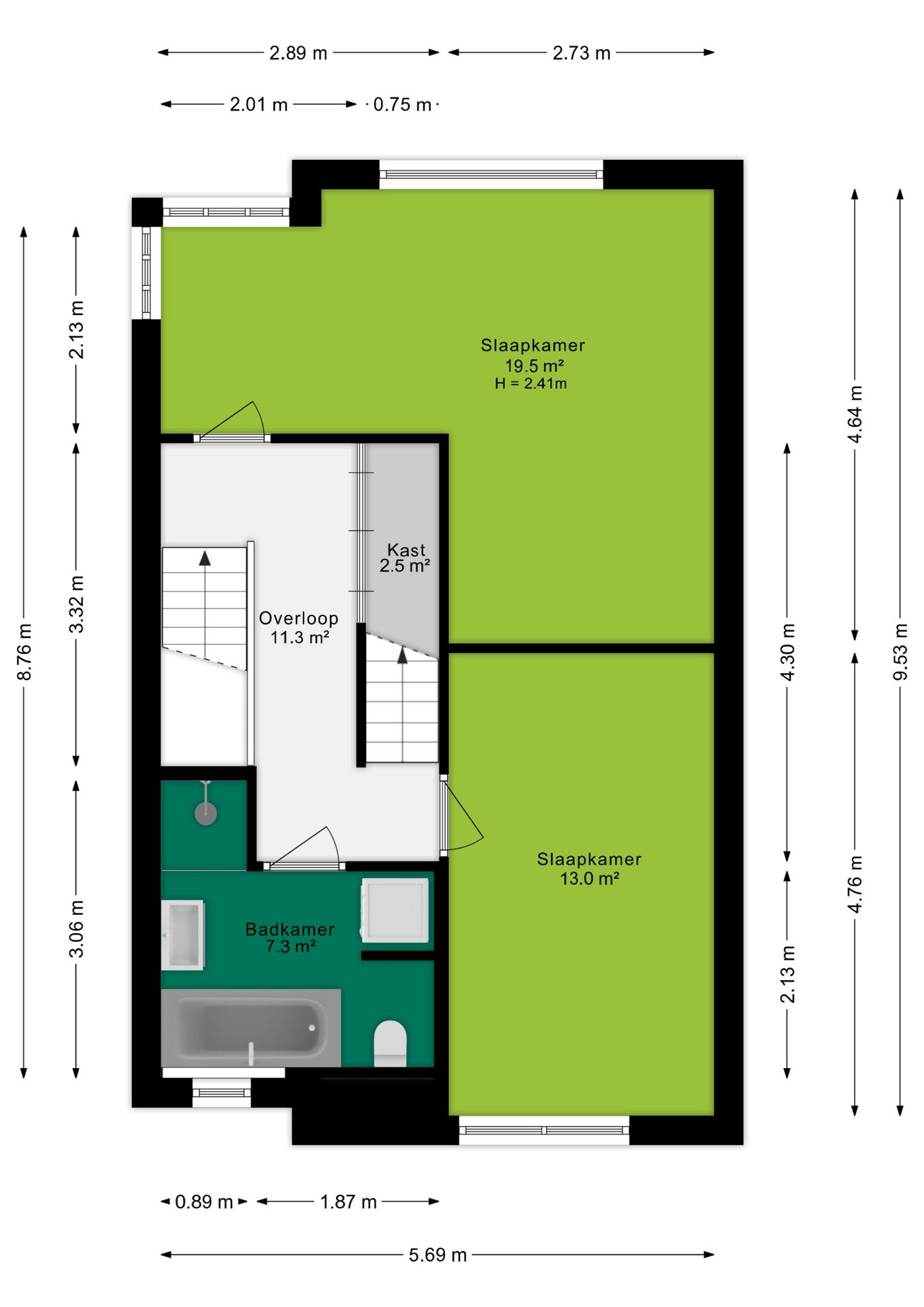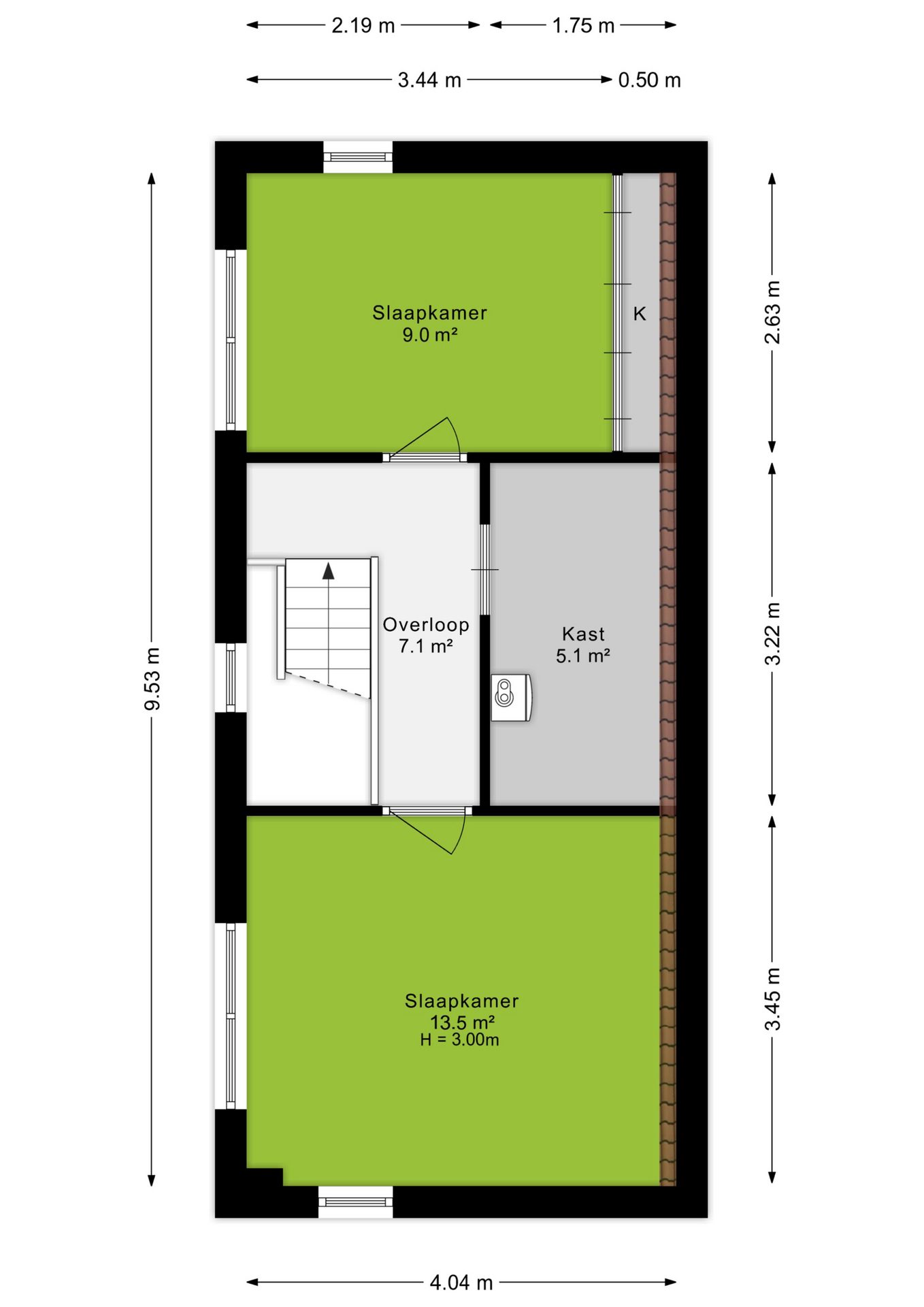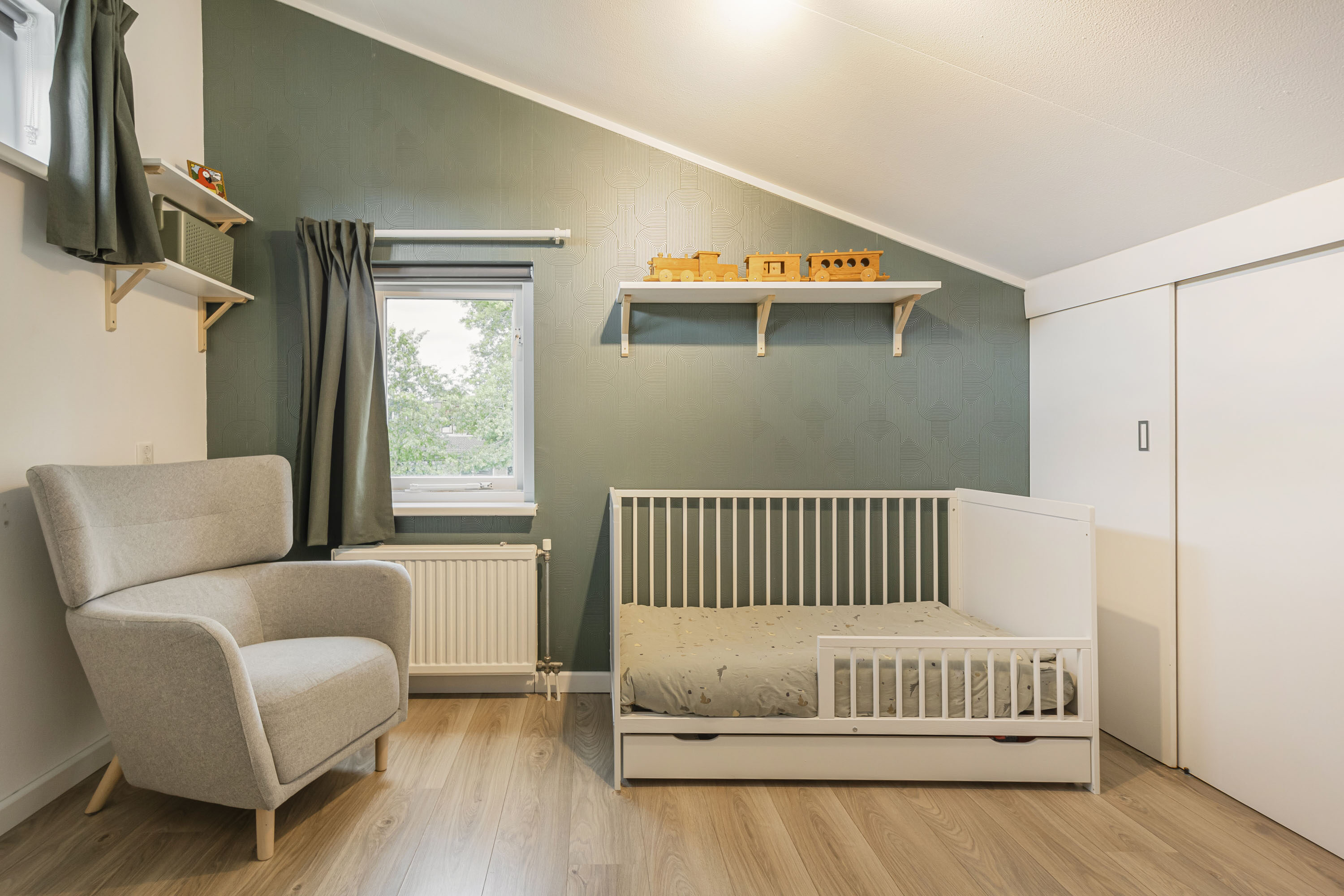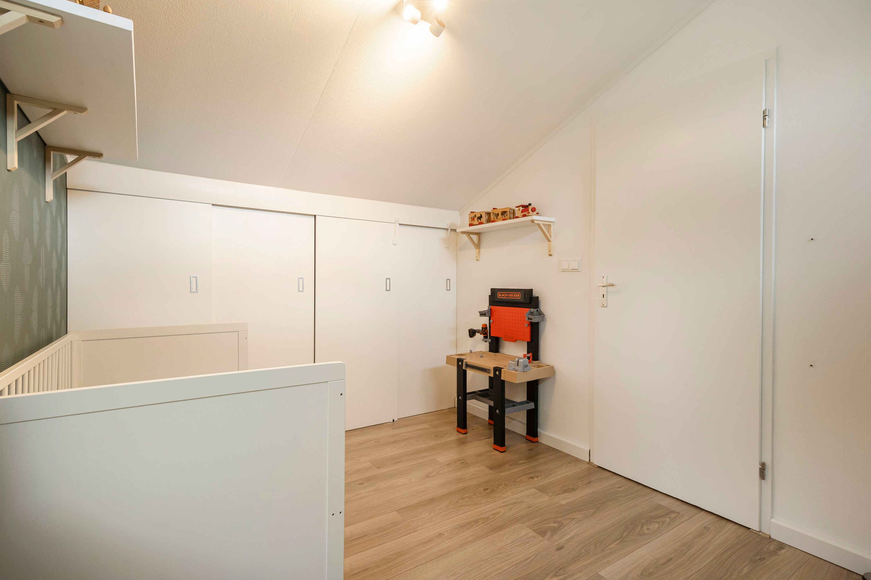 De tweede verdieping biedt ruimte aan de derde en vierde slaapkamer en een praktische bergruimte. Dankzij het lessenaarsdak ogen de slaapkamers extra ruimtelijk. Op deze verdieping zijn bovendien de houten kozijnen gedeeltelijk vernieuwd (2024).