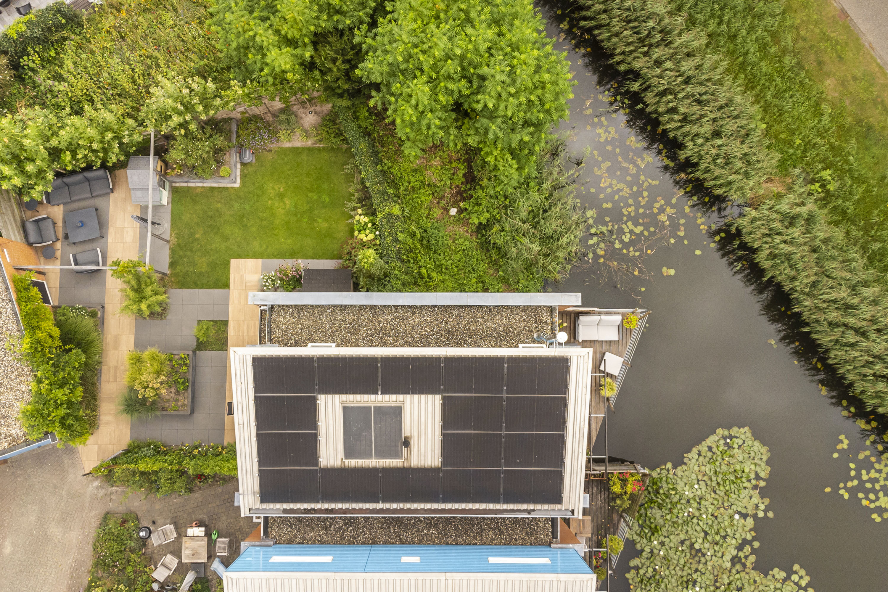 De woning beschikt over een vrij gelegen voor- en zijtuin en aan de achterkant van de woning een vlonder die direct aan het water grenst. De gehele tuin is in 2022 opnieuw professioneel aangelegd en voorzien van een groot terras. Een ideale plek om rustig te genieten. Aan ieder detail is gedacht: zo is de tuin voorzien van diverse stroompunten en sfeervolle verlichting. Daarnaast staat er een vrijstaande stenen garage die veel opbergmogelijkheden biedt.