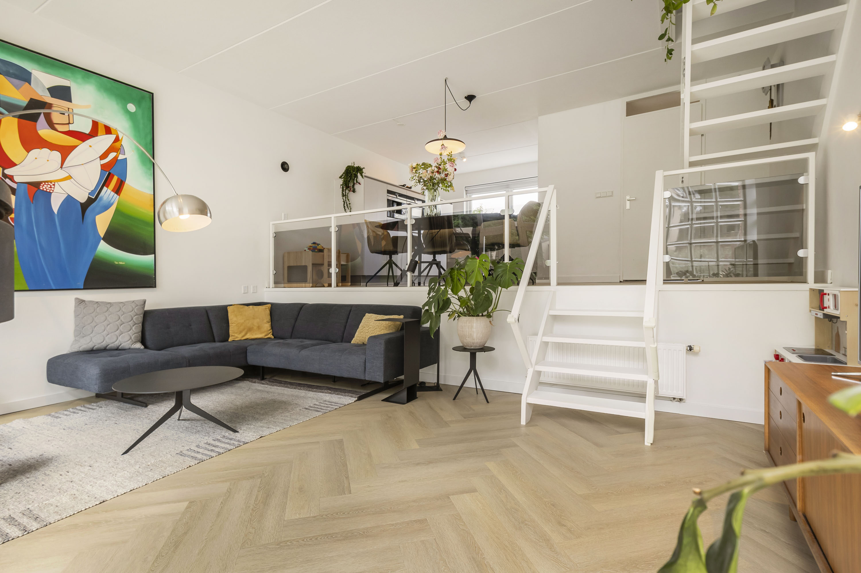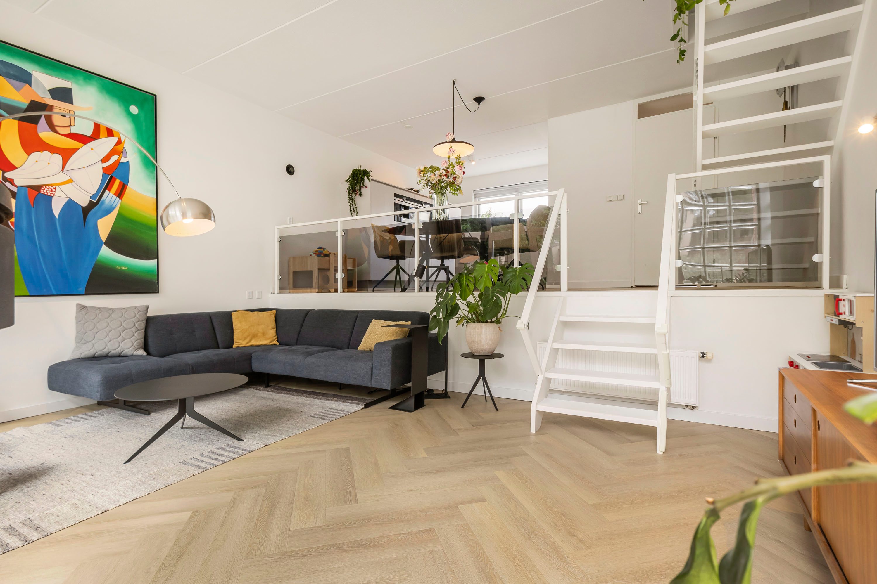 Door het splitlevel krijgt de gehele begane grond een speelse indeling met veel lichtinval.