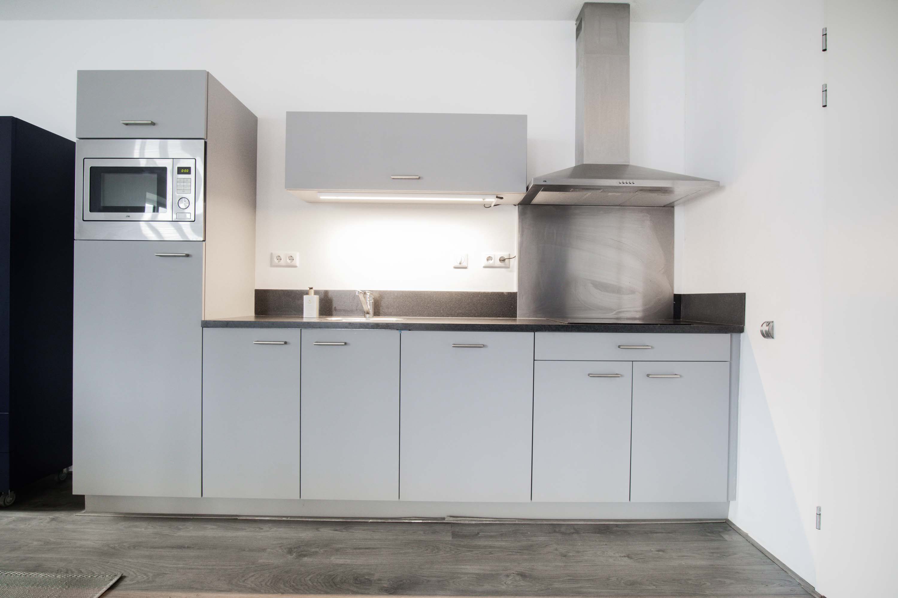 De openkeuken maakt het een unieke ruimte om gezellig met familie en vrienden te kunnen tafelen en toch de connectie te hebben met de keuken. De keuken is voorzien van diverse inbouwapparatuur.