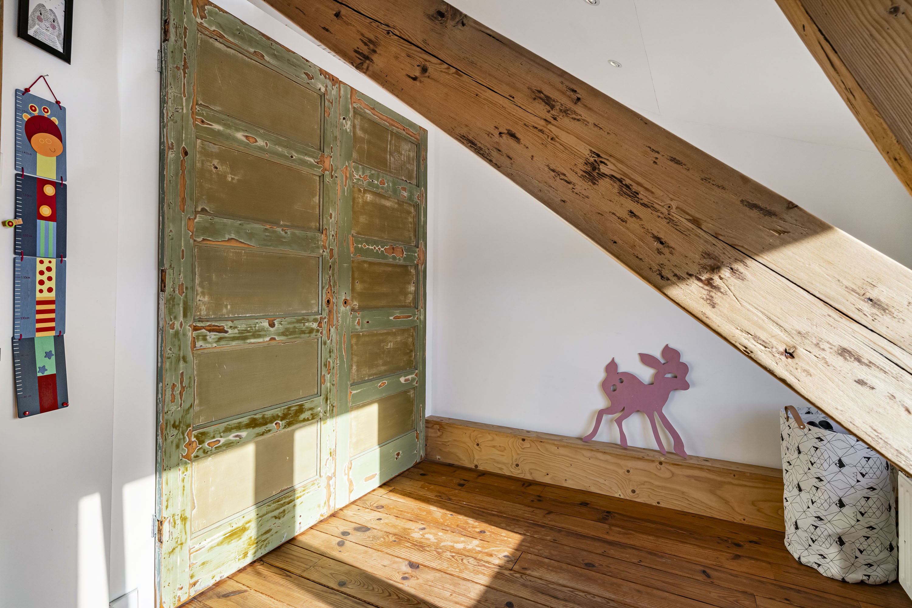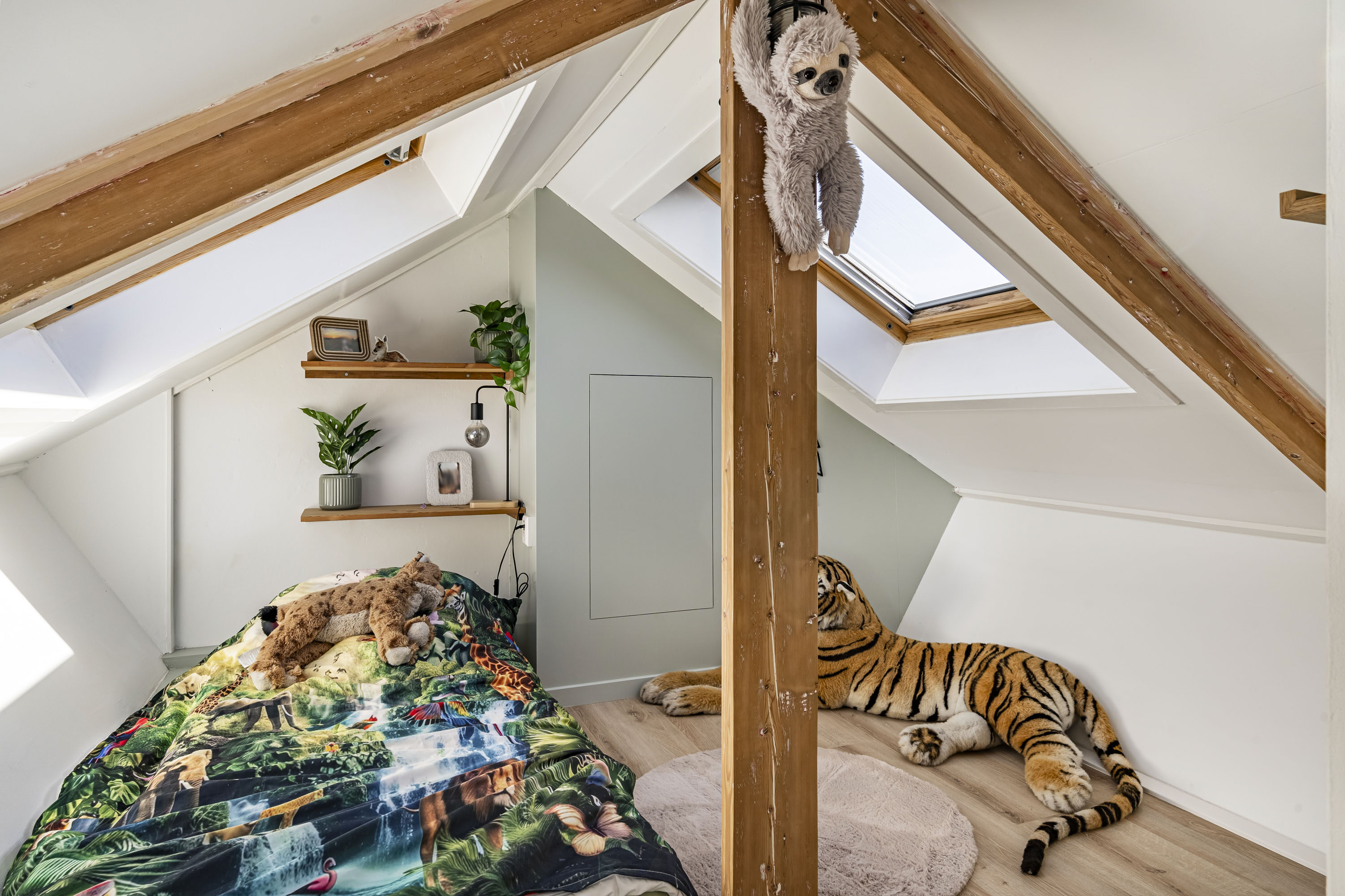 Via een vaste trap bereikbare tweede verdieping. Deze is momenteel in gebruik als slaapkamer. Door de twee dakramen heb je hier een heerlijke lichtinval.