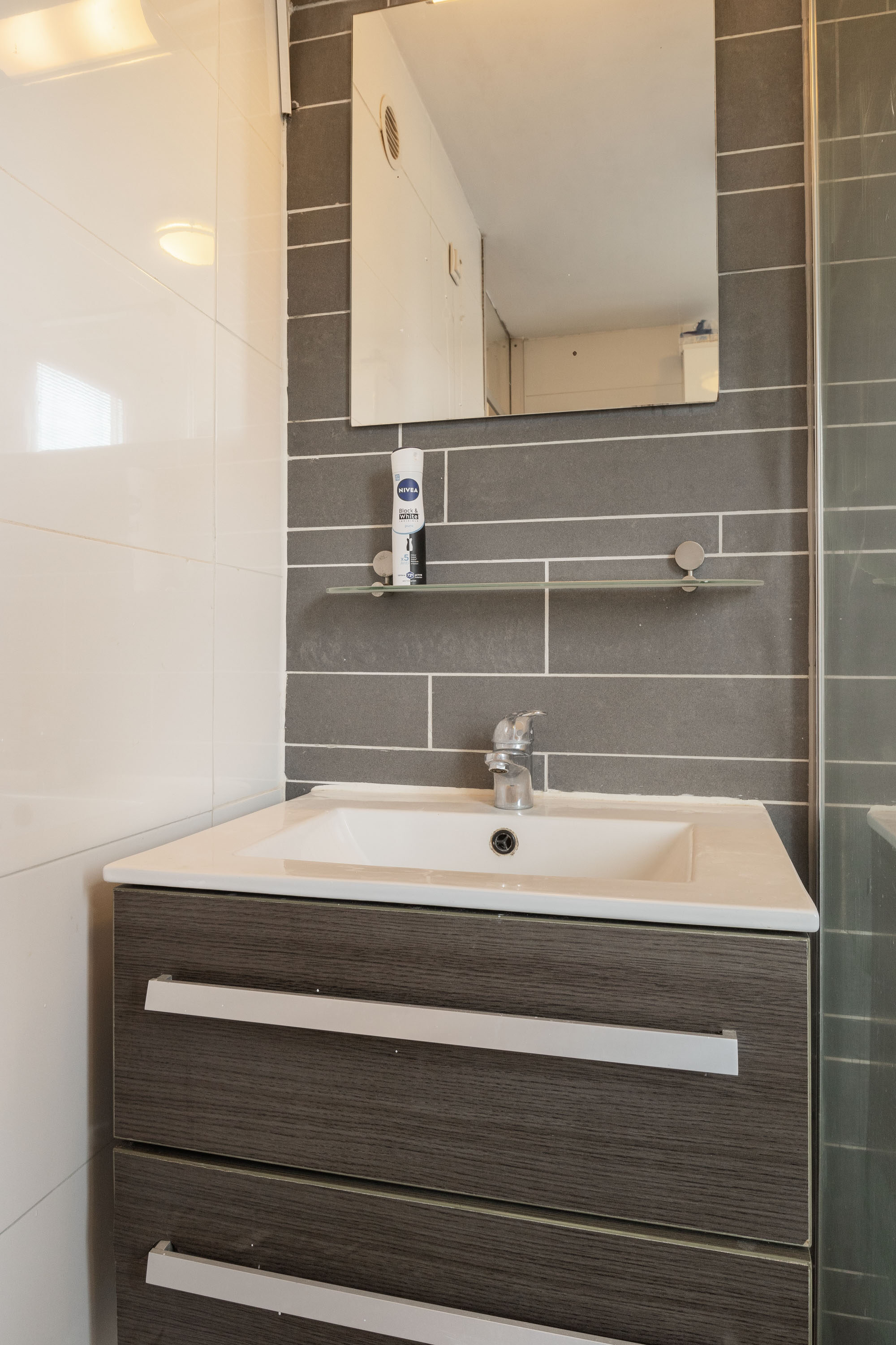 Op de eerste verdieping bereik je via de overloop 3 slaapkamers en de badkamer. De slaapkamers zijn ruim en genieten een fijne lichtinval. De badkamer is in het verleden volledig verbouwd en heeft nu een moderne uitstraling. De badkamer beschikt over: