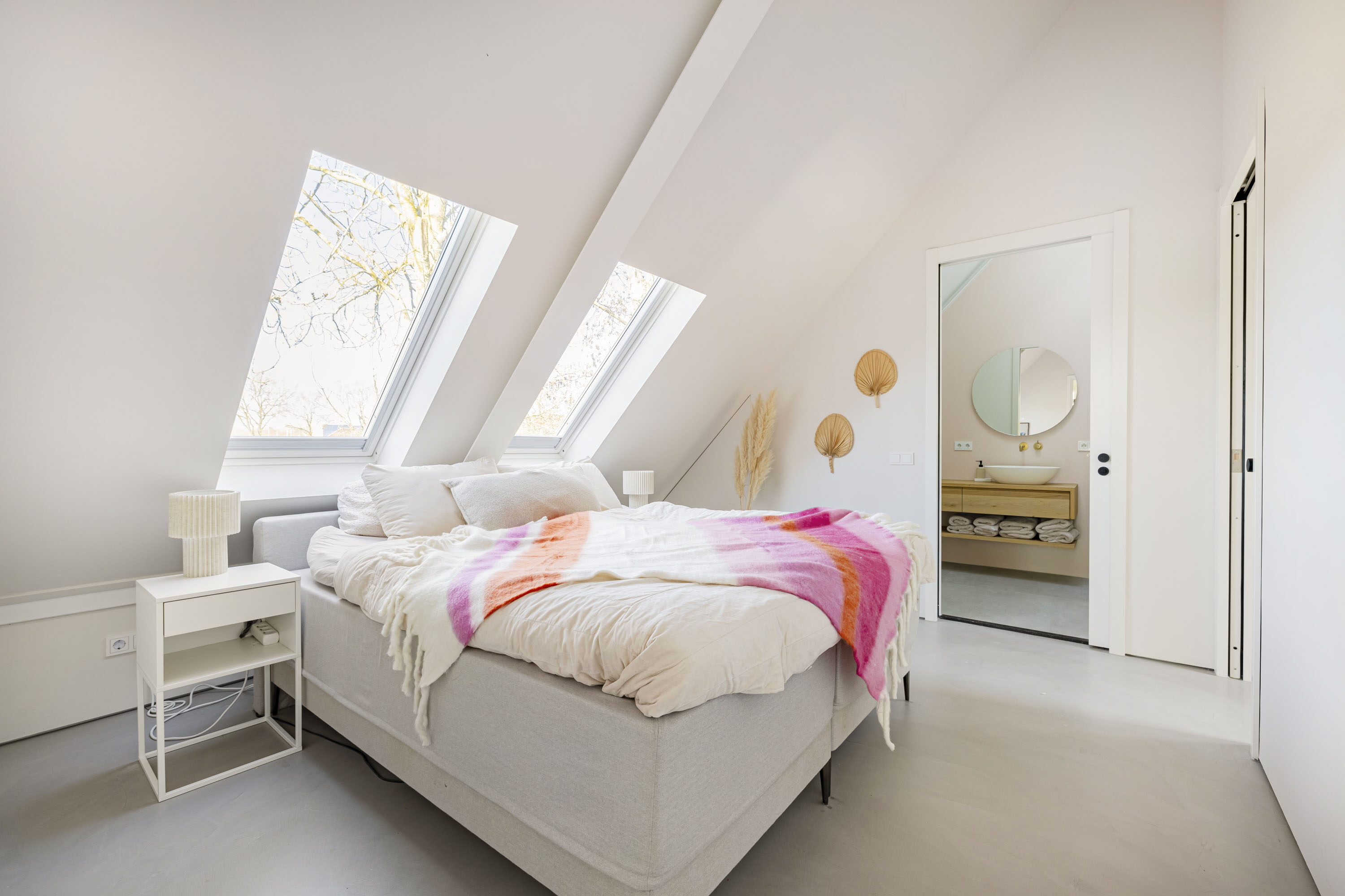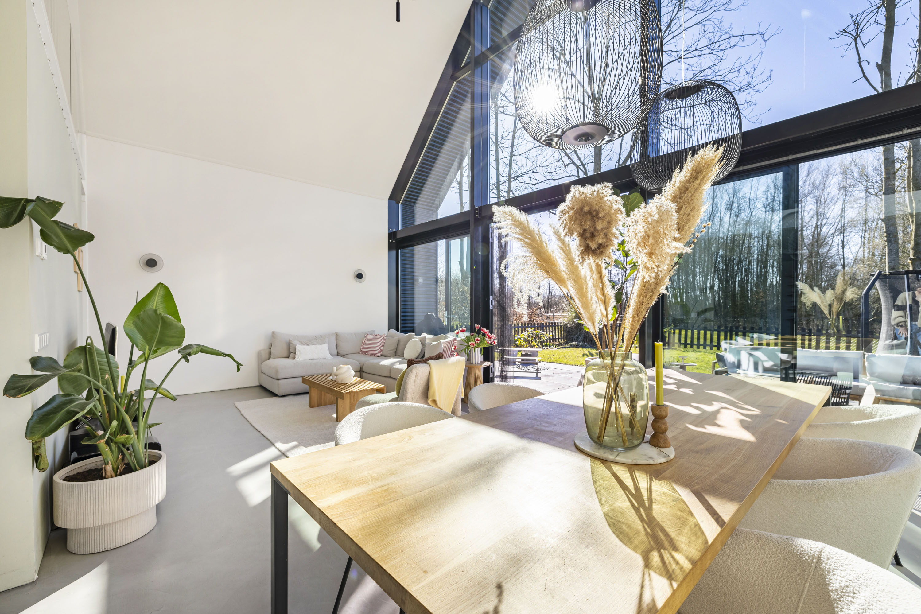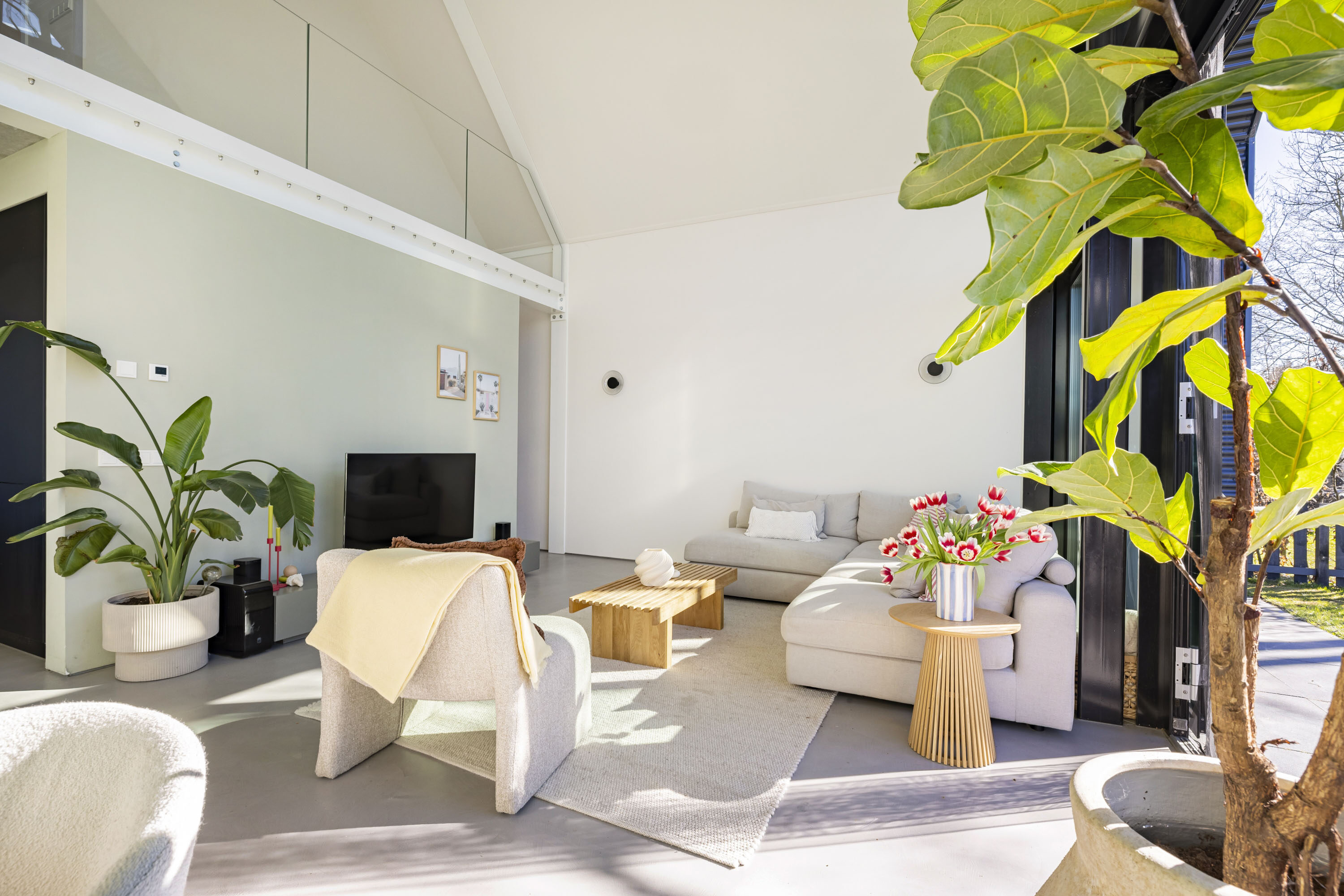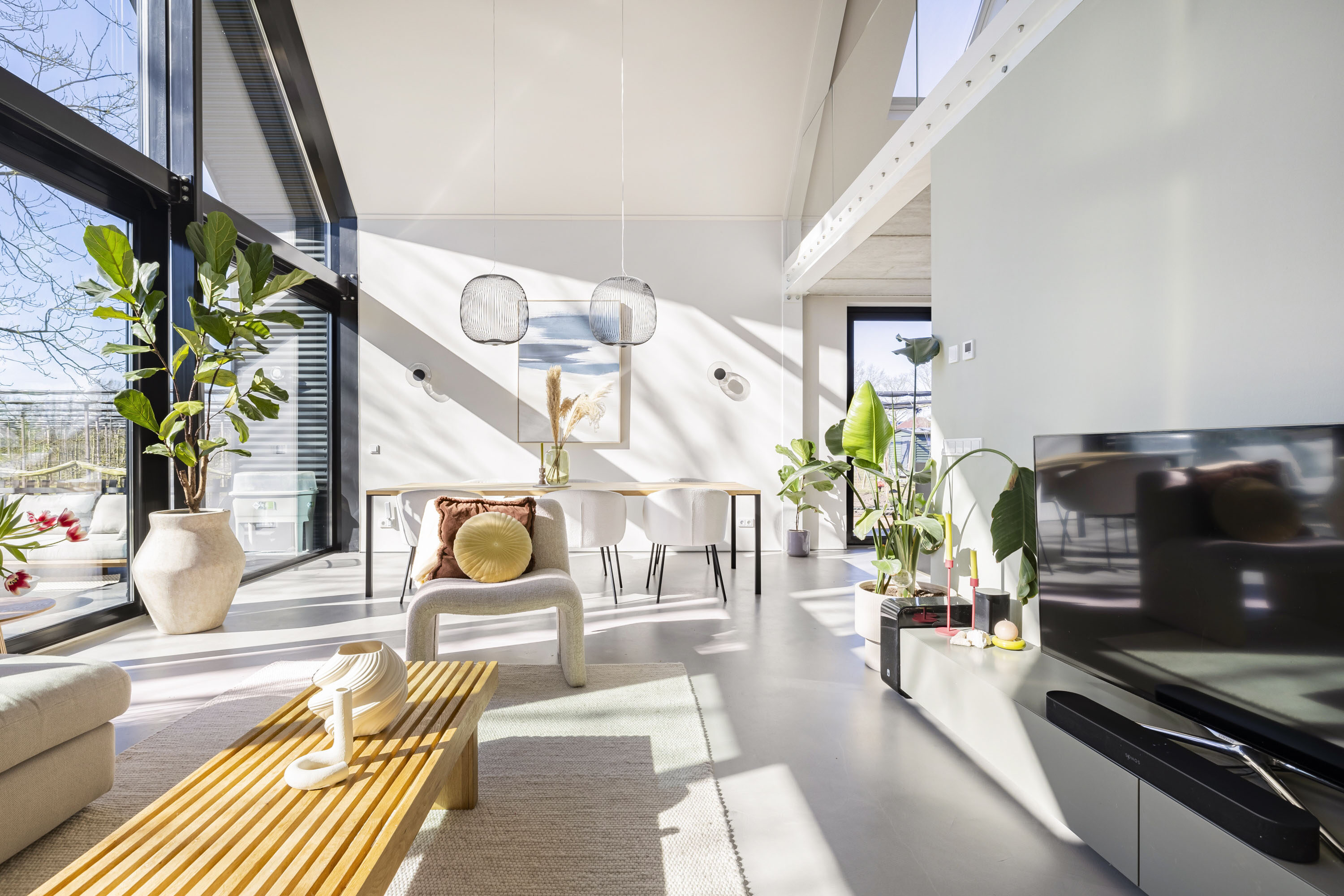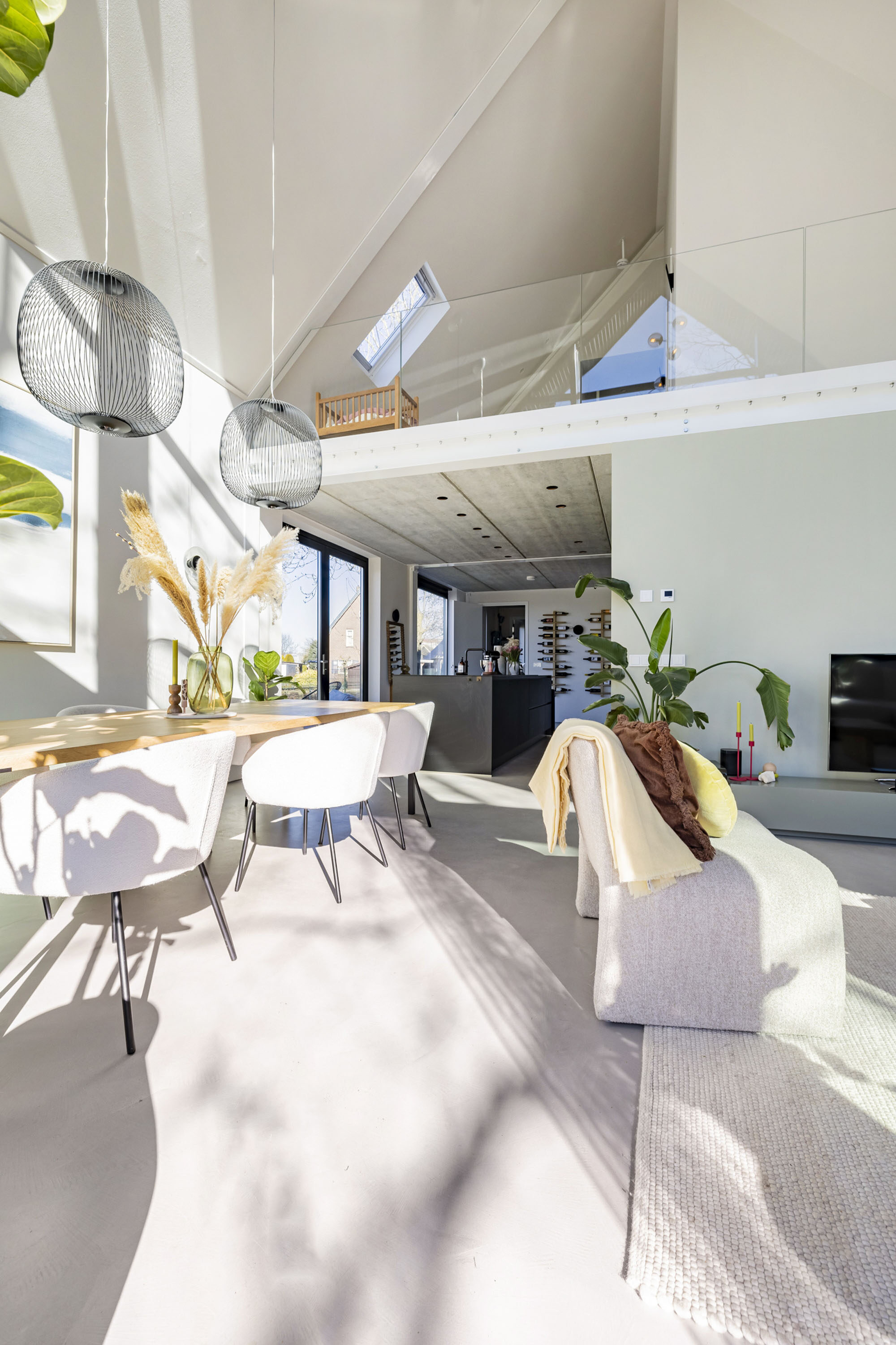 Wat deze Lofthome écht bijzonder maakt, is de indrukwekkende raampartij van meer dan zeven meter hoog en de grote vide, die zorgen voor een overweldigende hoeveelheid natuurlijk licht gedurende alle seizoenen. Of het nu winter, lente, zomer of herfst is, de woning straalt altijd warmte en gezelligheid uit. Bovendien biedt het huis een prachtig uitzicht over het groen van natuurgebied Bloeidaal én de charmante familie-kersenboerderij. Een unieke plek om te wonen en te werken.