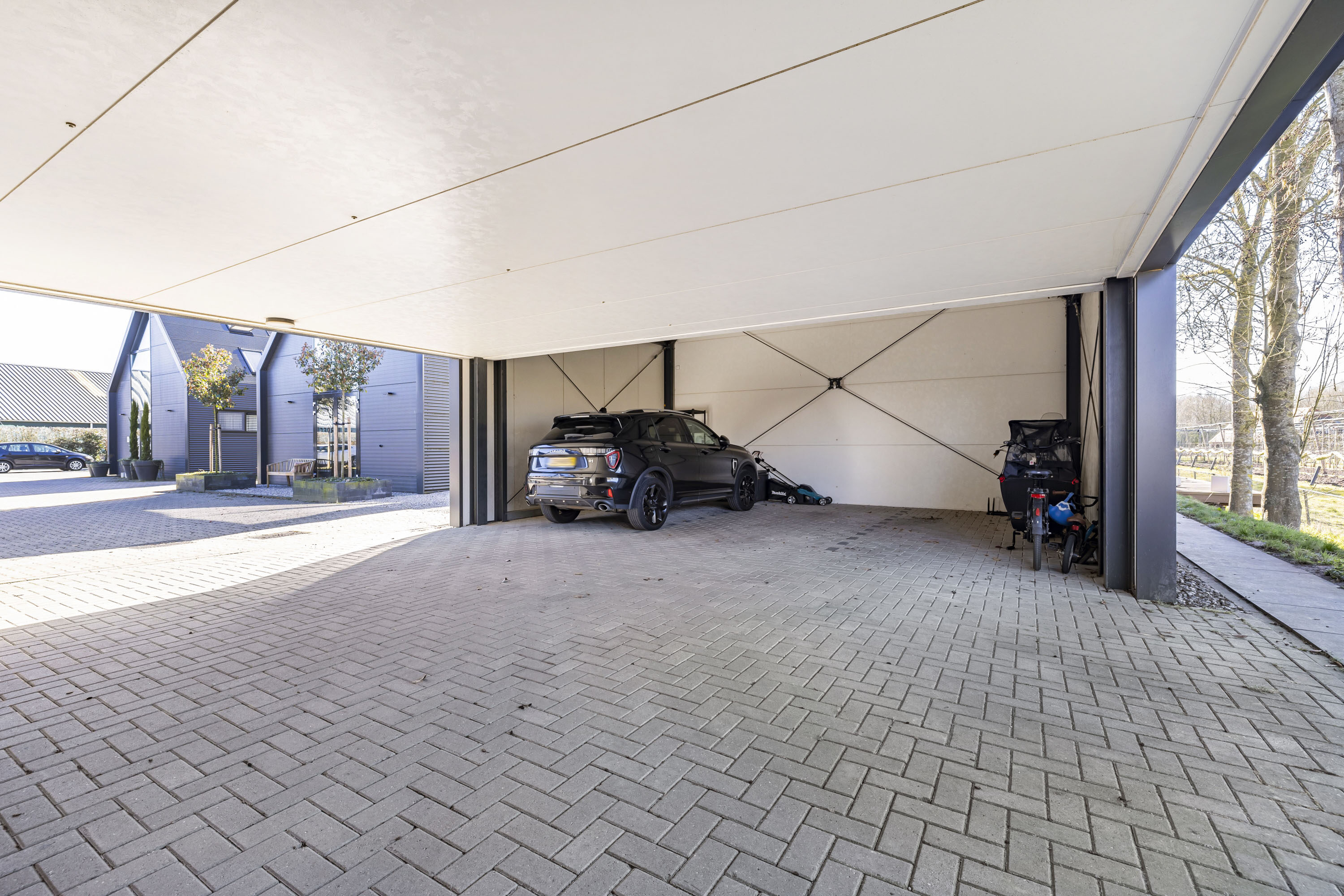 + Carport om auto’s / fietsen overdekt te parkeren;
