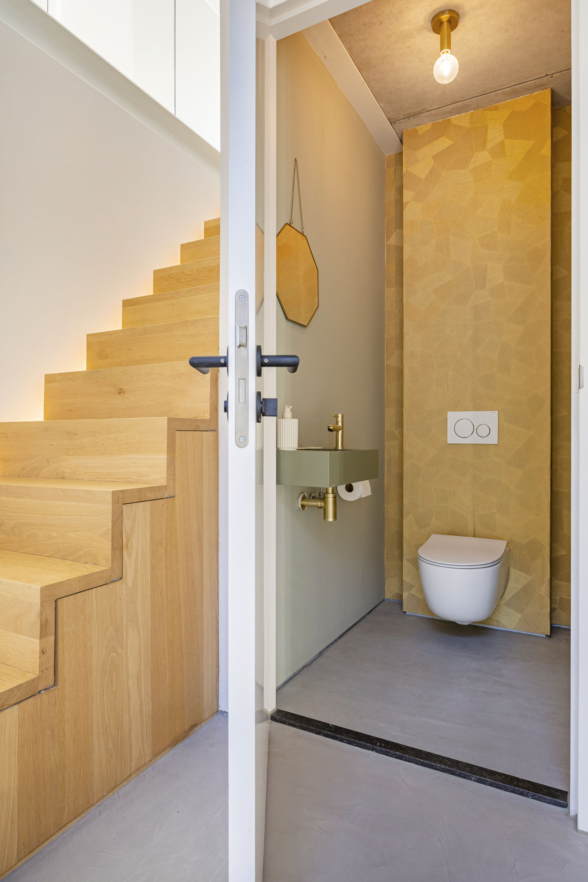 De vloer (op alle verdiepingen) is volledig voorzien van vloerwarming welke ook kan koelen in de zomer. De vloer is afgewerkt met beton ciré. Een perfecte basis voor een stijlvol interieur. Het geeft een luxe uitstraling en is ook nog eens onderhoudsvriendelijk. De wanden zijn zeer goed geïsoleerd en afgewerkt met Renovlies behang. De binnenkozijnen zijn van hout en de deuren betreffen stompe deuren van Svedex met luxe deurbeslag.