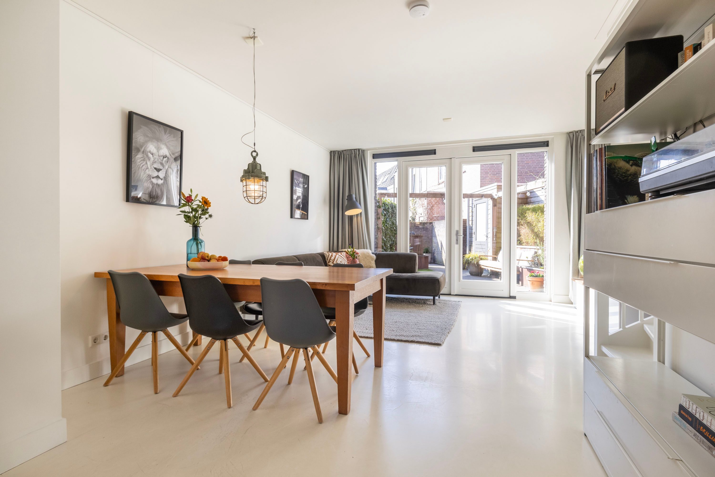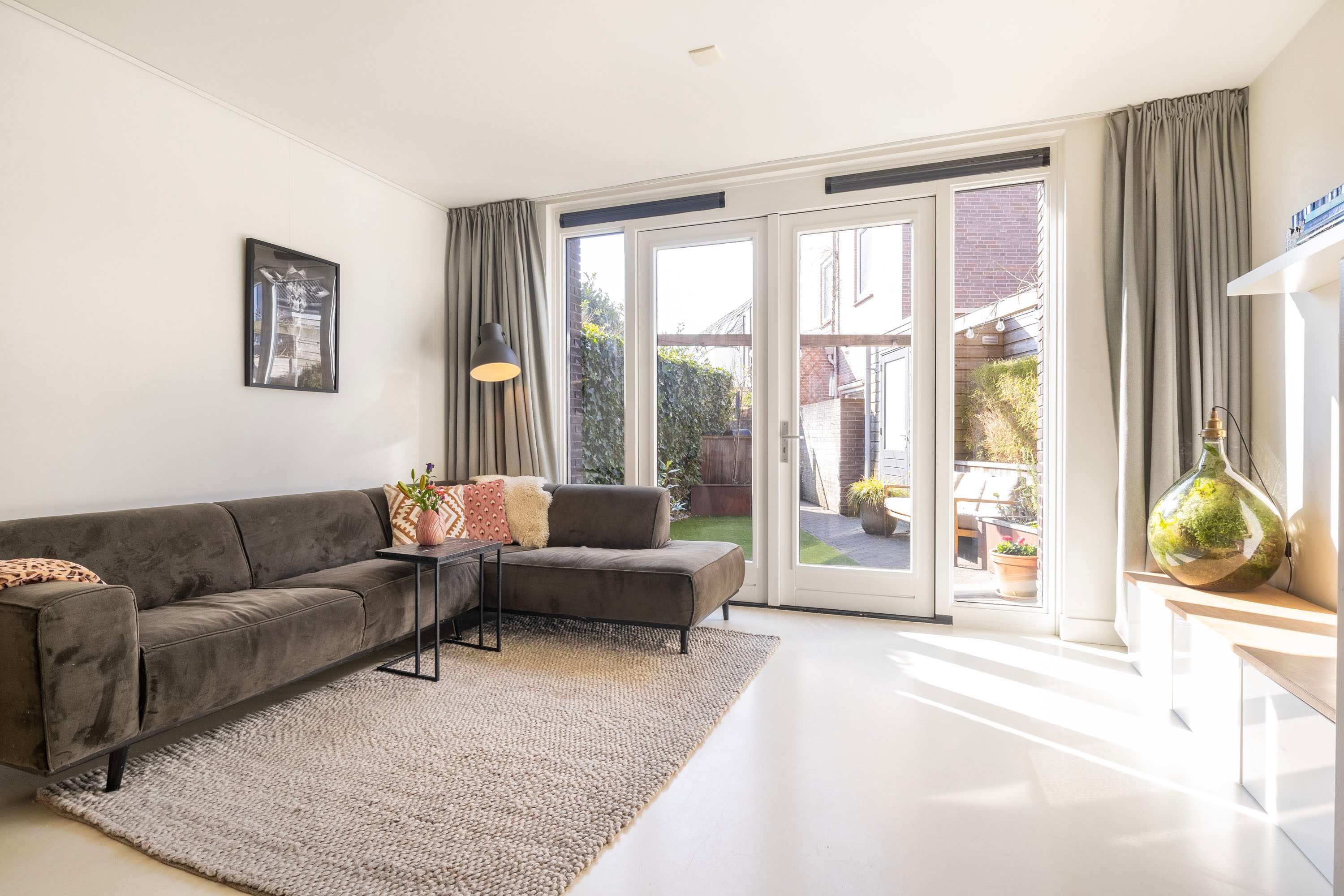 Entree, hal, meterkast, toiletruimte met zwevend toilet en fonteintje en toegang tot de woonkamer. De woonkamer is aan de achterzijde gelegen. Door de grote pui aan de achterzijde met het vele glaswerk komt er veel lichtinval binnen. De openslaande deuren zorgen er in de zomer voor dat de woonkamer wordt verlengd naar de tuin.