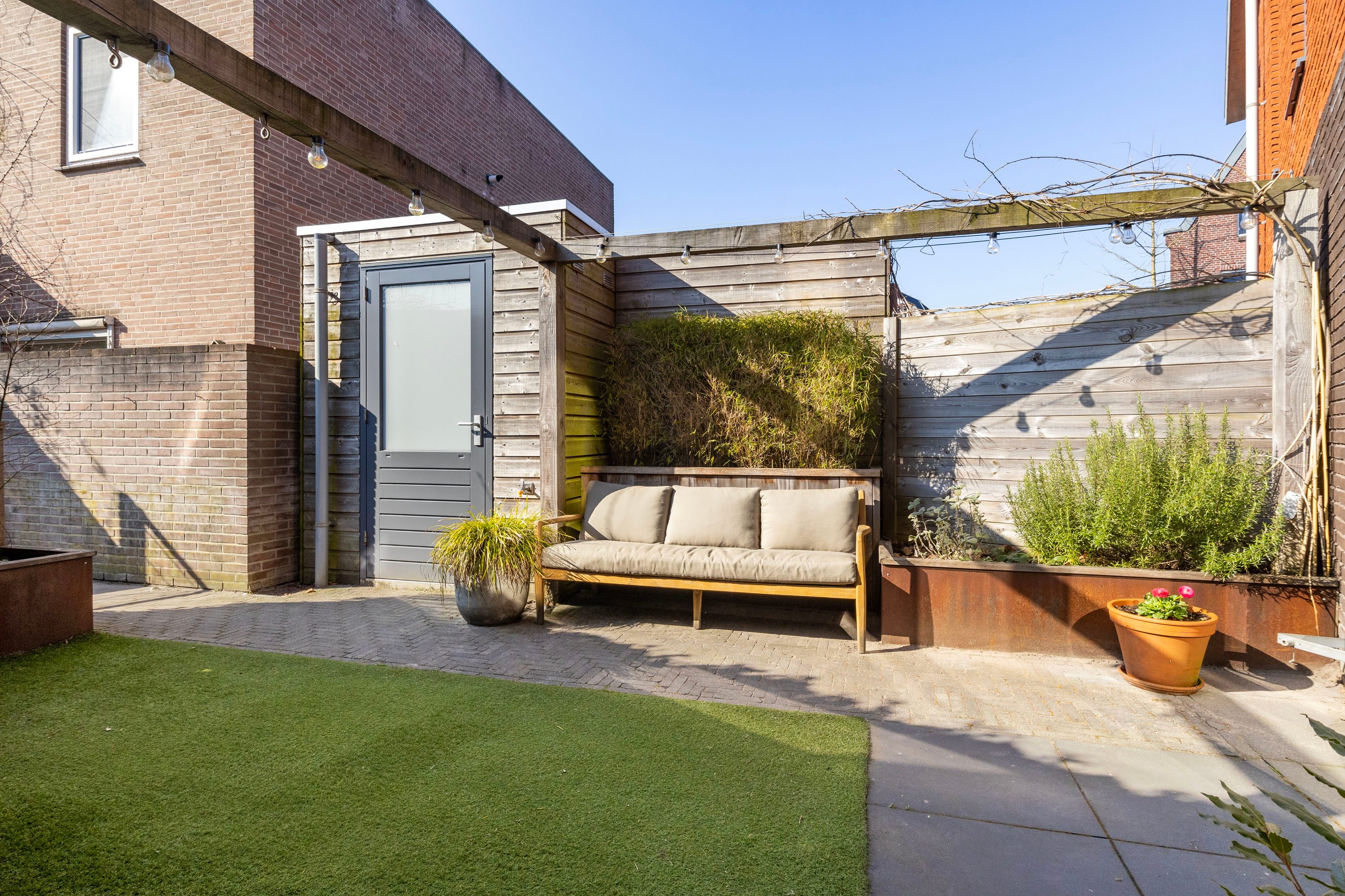 Via de openslaande deuren stap je vanuit de woonkamer zo de onderhoudsvriendelijke achtertuin in. Deze tuin is gelegen op het zuidwesten. Via de eigen achterom kom je uit op een parkeerterrein met een eigen parkeerplaats. Er is plek voor één auto op het eigen perceel en daaraan grenzend een berging.