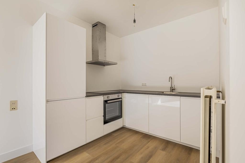 Entree/hal met toegang tot de meterkast en cv kast met plek voor de wasmachine. Stap de ruime woonkamer in met open keuken, vanuit de woonkamer loop je de tuin in. De grote raampartijen zorgen voor veel licht in het appartement. De moderne open keuken (2025) beschikt over de volgende inbouwapparatuur: