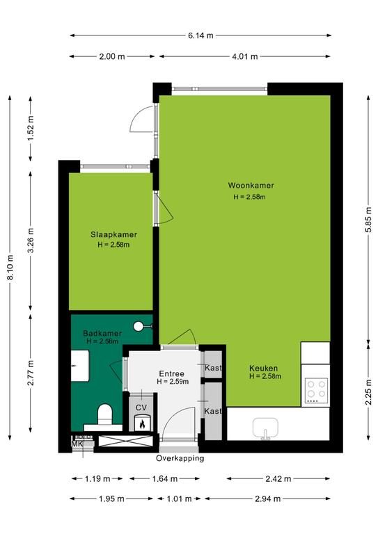 Indeling van het appartement: