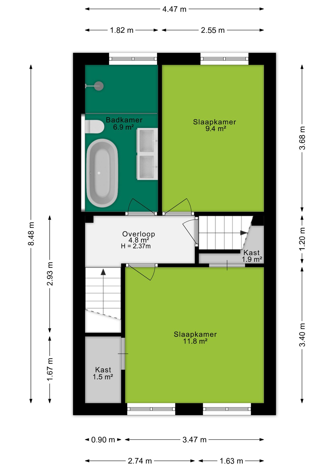 Op deze verdieping bevinden zich twee royale slaapkamers met een prettige lichtinval. Beide kamers zijn geschikt als slaap-, werk- of logeerkamer.