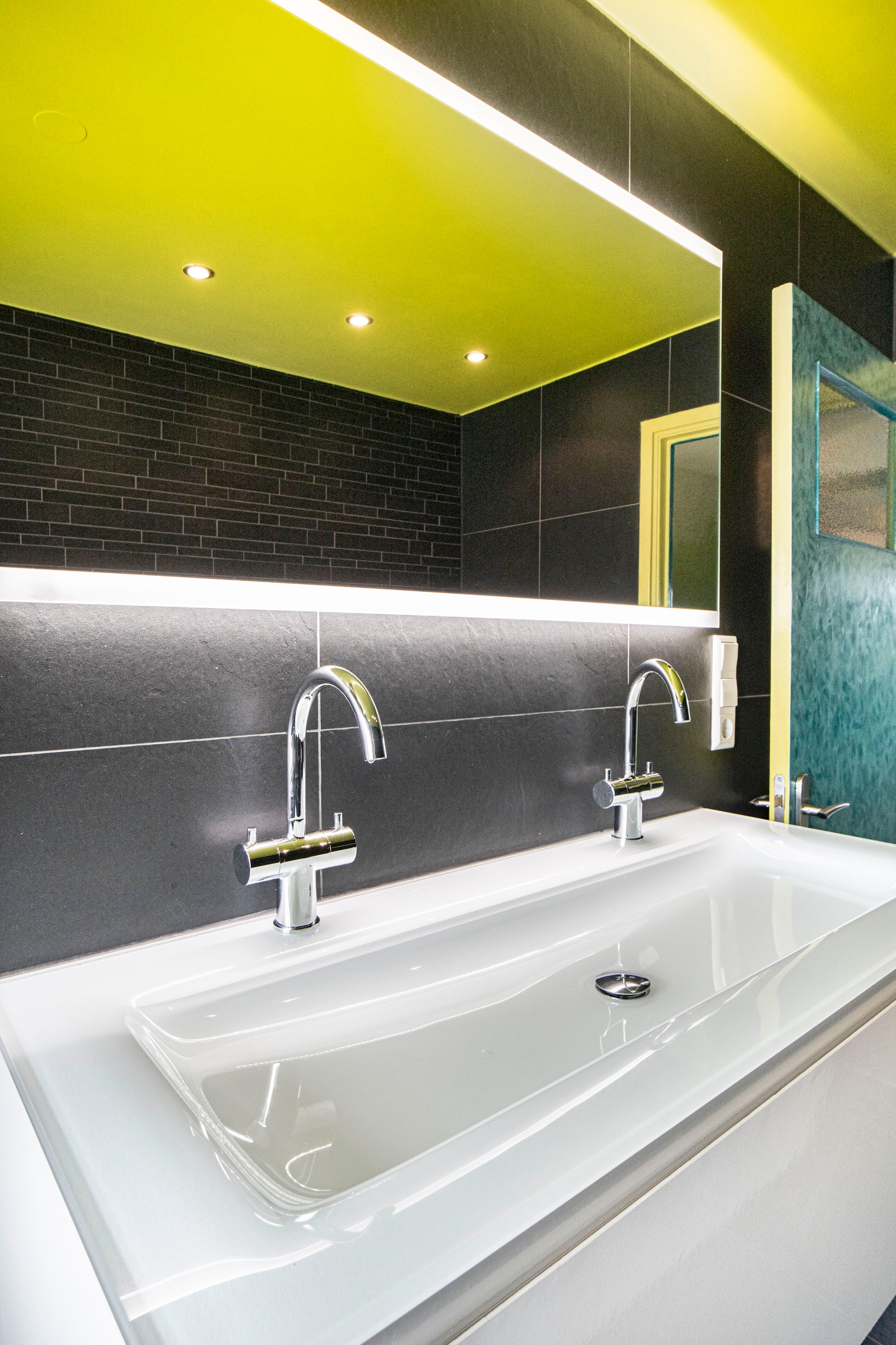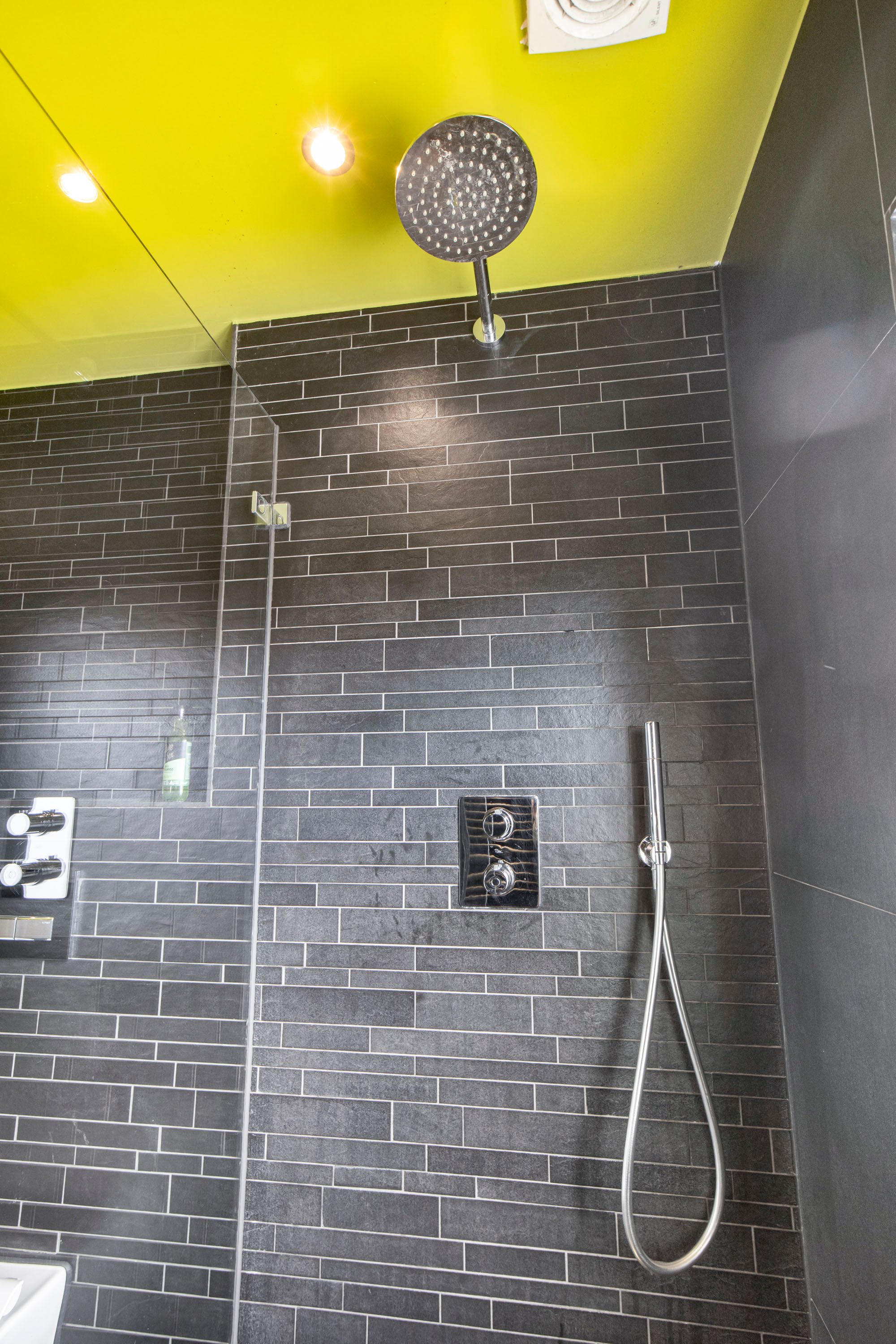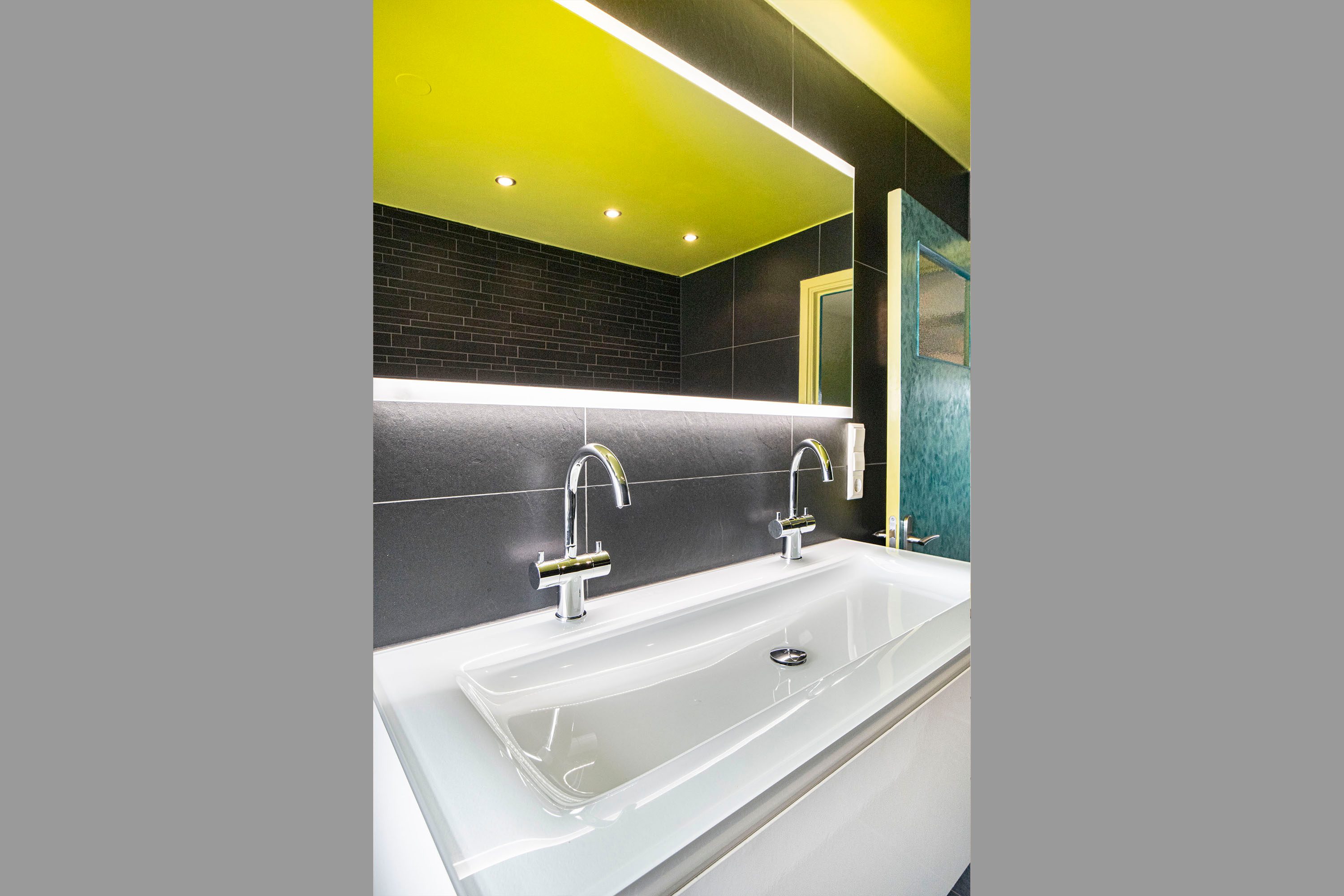 De badkamer is ruim en compleet uitgevoerd met een ligbad, inloopdouche en dubbele wastafel.