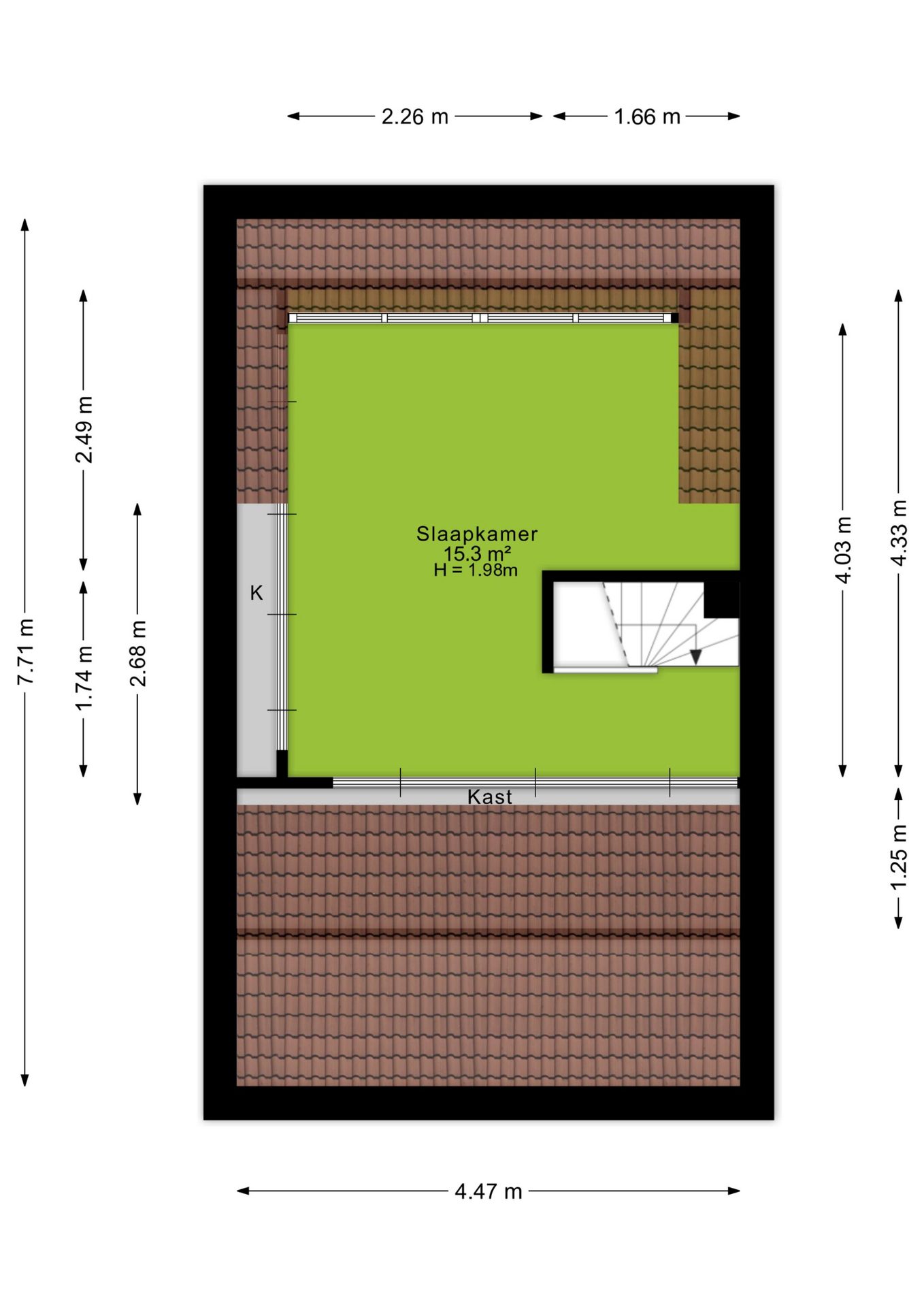 We hebben de vierkante meters van de zolderverdieping meegerekend met het woonoppervlak, want dit is zonder het kunstgras hoger dan 2 meter. In de plattegronden en in het meetrapport hebben ze dit niet meegerekend vanwege de hoogte van het kunstgras dat erin ligt.