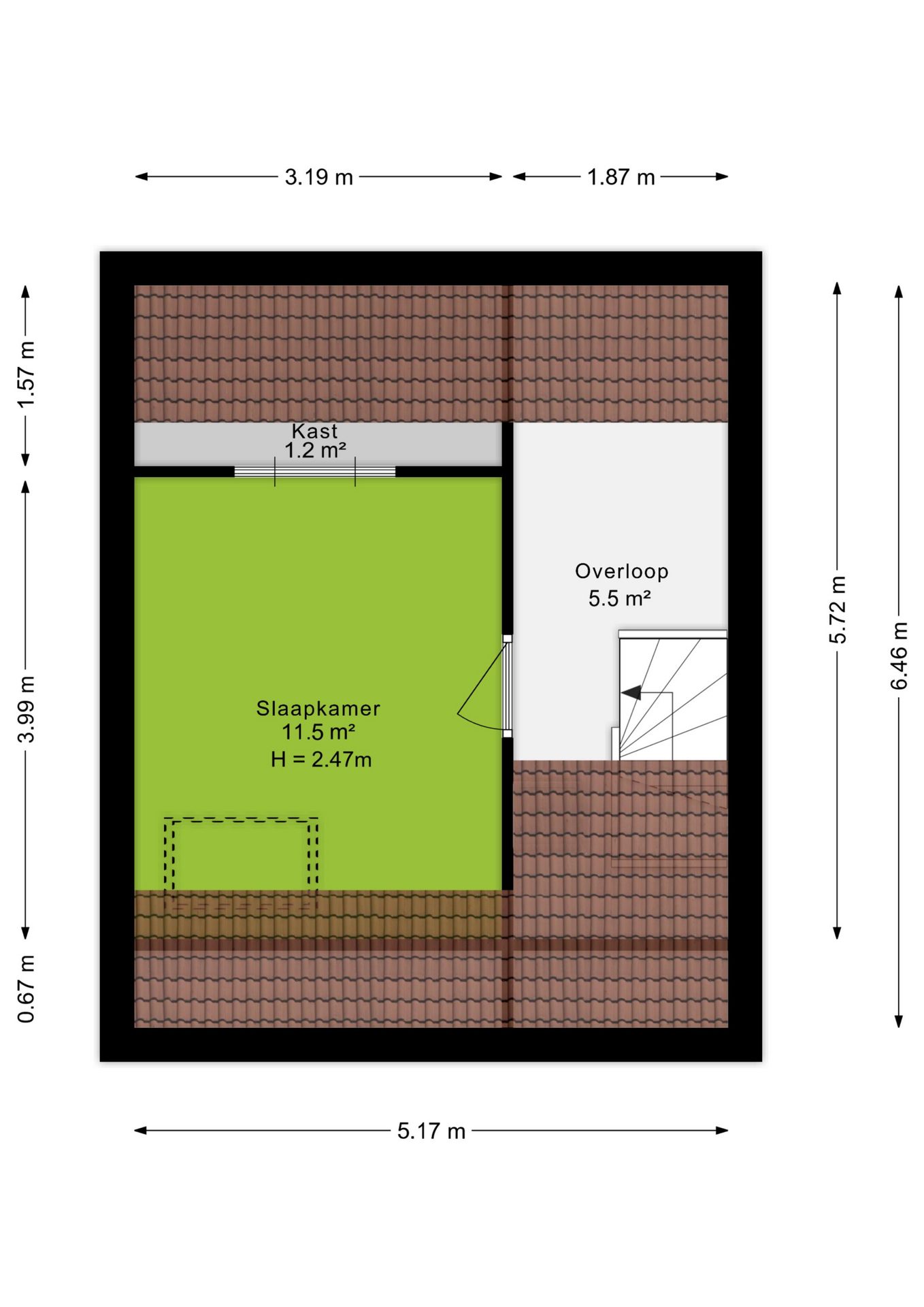 Ook deze verdieping is voorzien van een houten vloer.