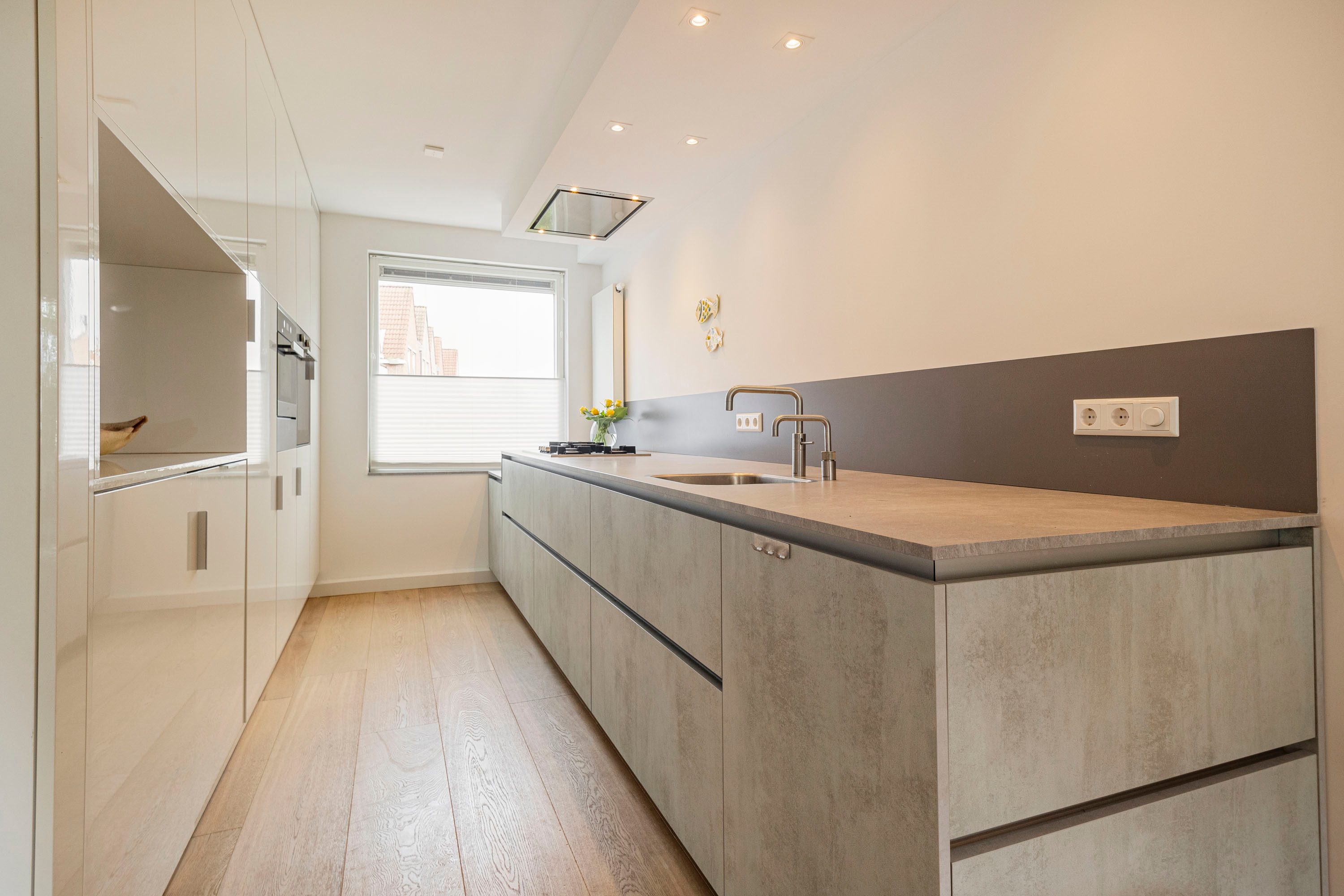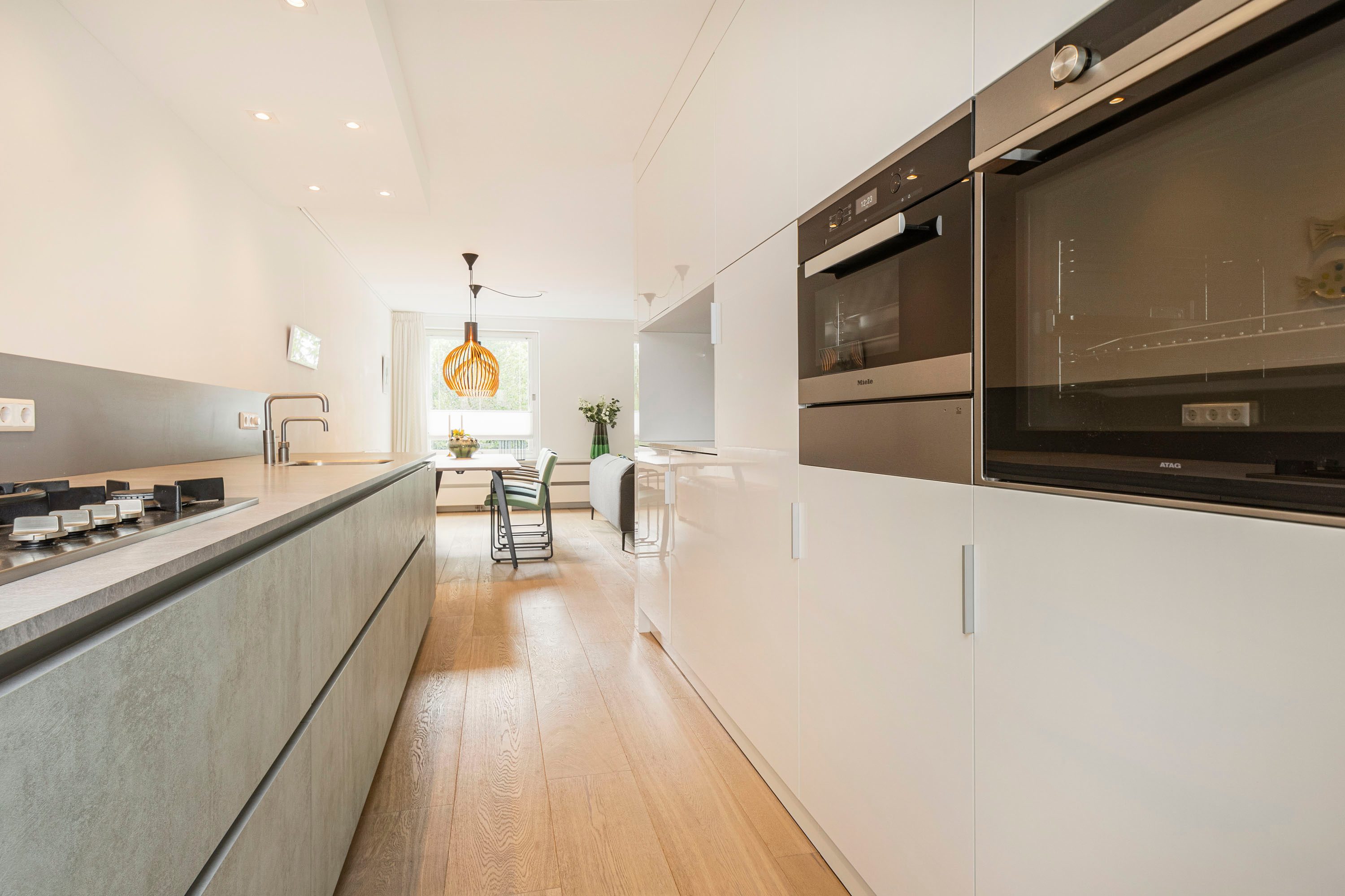 De moderne open keuken is compleet vernieuwd en voorzien van alle denkbare luxe: een 4-pits gasfornuis met wokbrander, vaatwasser, stoomoven, oven/magnetron, , warmhoud lade, koelkast, vriezer (3 lades), Quooker en een stijlvolle afzuigkap. Daarnaast vind je op deze verdieping een zwevend toilet met fonteintje en een vernieuwde meterkast (2018).