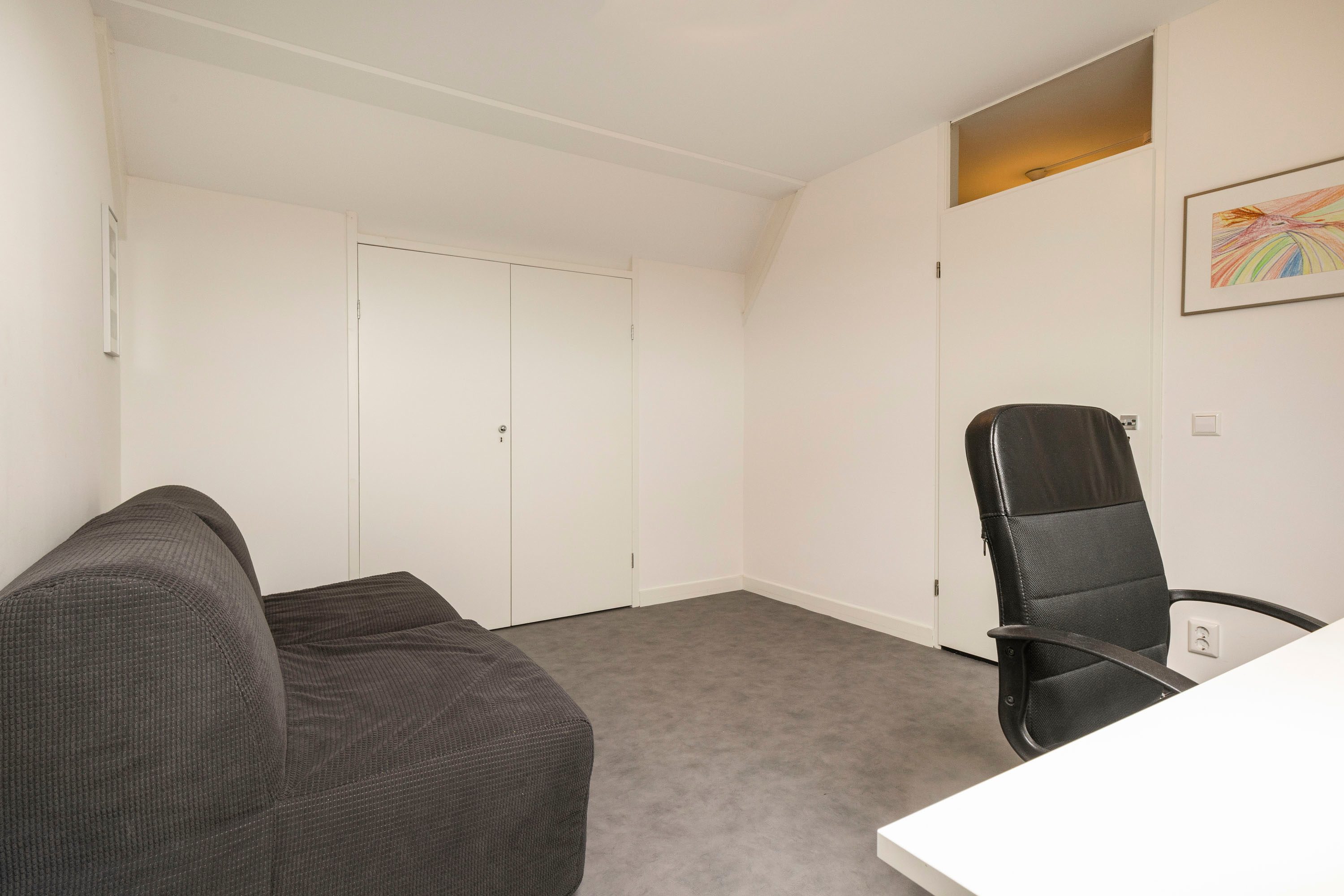 Op de tweede verdieping vind je een royale derde slaapkamer, die uitstekend geschikt is voor gezinnen, thuiswerkers of gasten. De veelzijdigheid van deze kamer biedt talloze mogelijkheden om het volledig naar eigen wens in te richten. Over de volle breedte van de slaapkamer is ruim voldoende opbergruimte aanwezig. Op de overloop is er de mogelijkheid voor het opstellen van de wasmachine en droger.