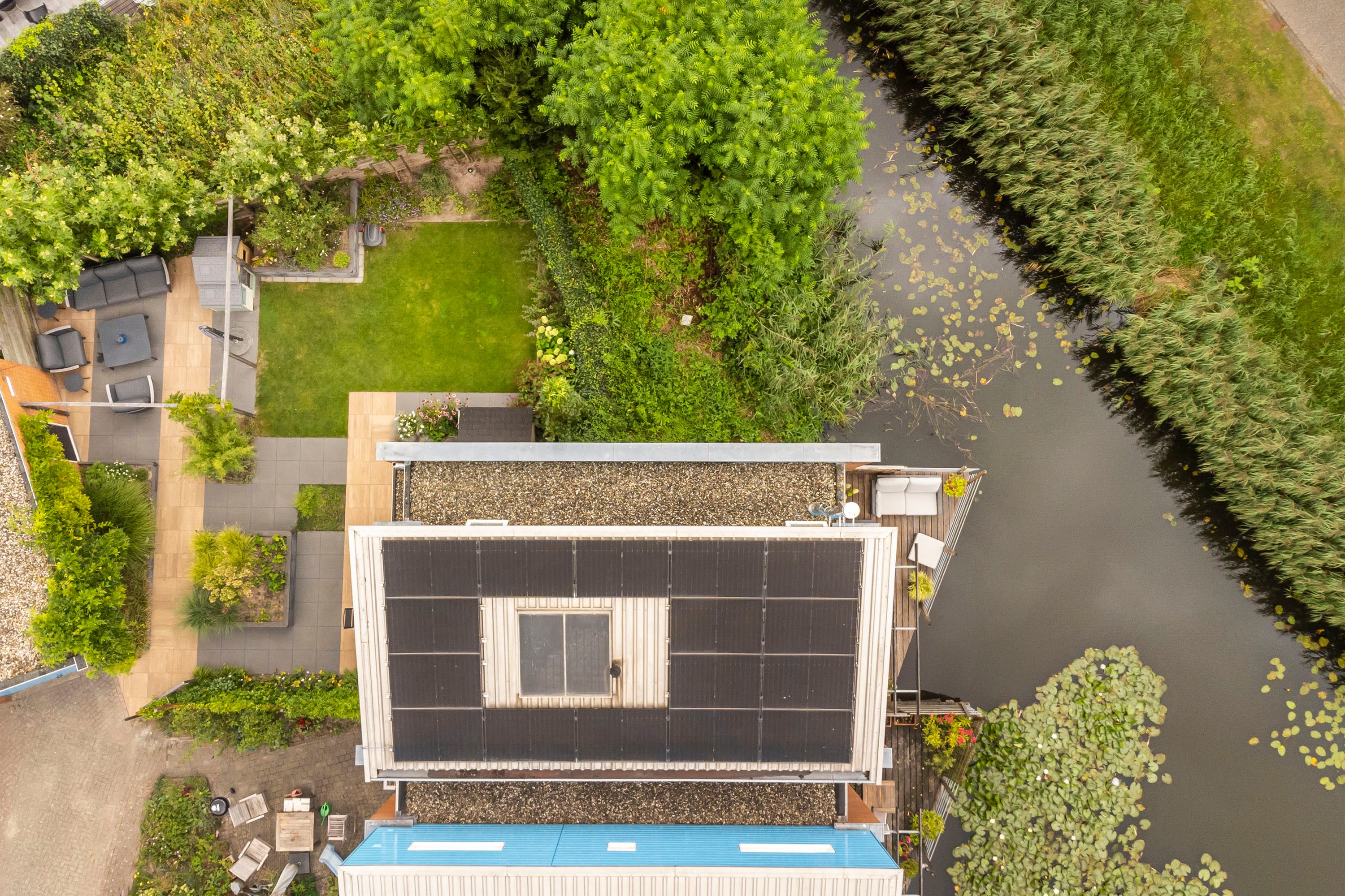 De woning beschikt over een vrij gelegen voor- en zijtuin en aan de achterkant van de woning een vlonder die direct aan het water grenst. De gehele tuin is in 2022 opnieuw professioneel aangelegd en voorzien van een groot terras. Een ideale plek om rustig te genieten. Aan ieder detail is gedacht: zo is de tuin voorzien van diverse stroompunten en sfeervolle verlichting. Daarnaast staat er een vrijstaande stenen garage die veel opbergmogelijkheden biedt.