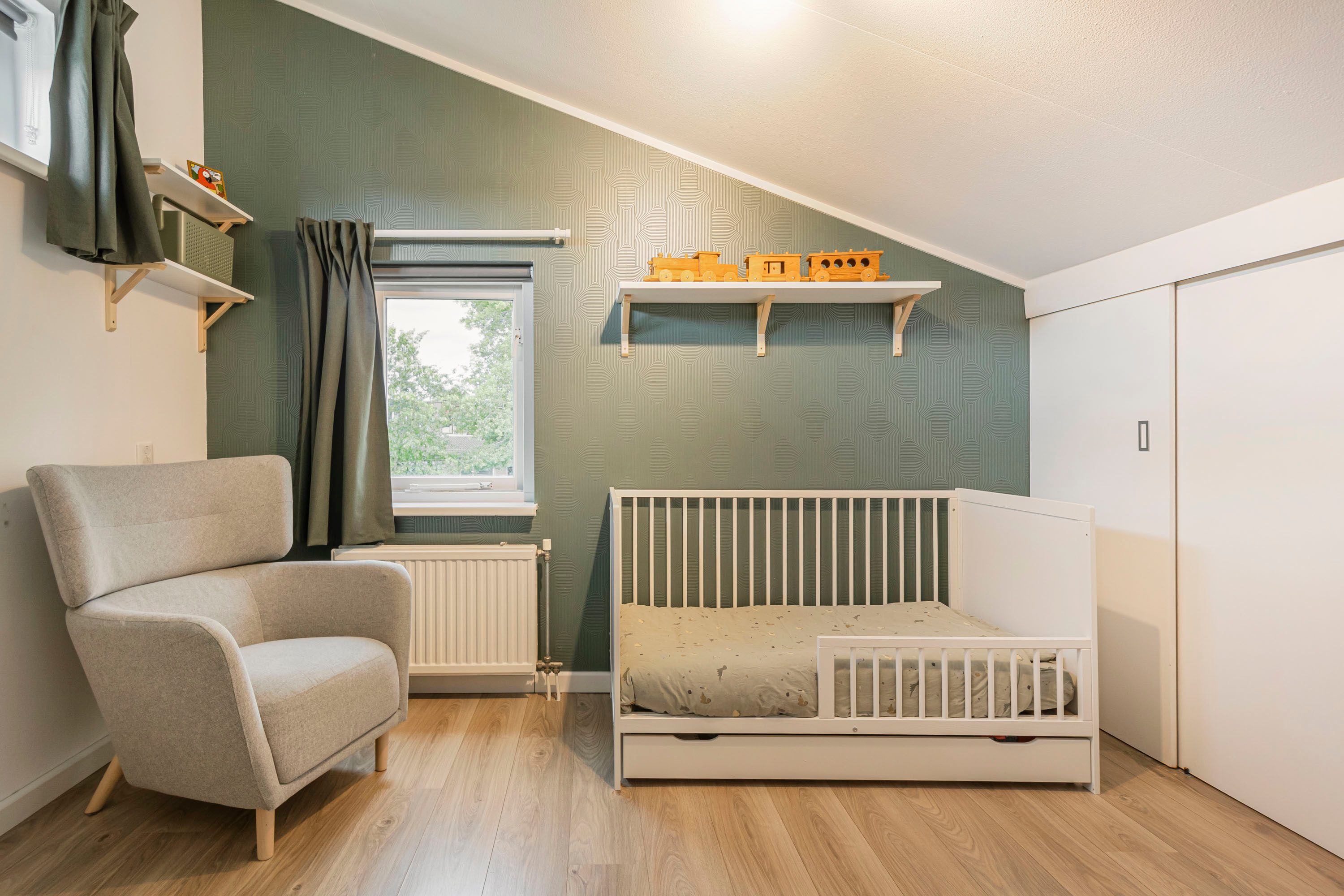 De tweede verdieping biedt ruimte aan de derde en vierde slaapkamer en een praktische bergruimte. Dankzij het lessenaarsdak ogen de slaapkamers extra ruimtelijk. Op deze verdieping zijn bovendien de houten kozijnen gedeeltelijk vernieuwd (2024).