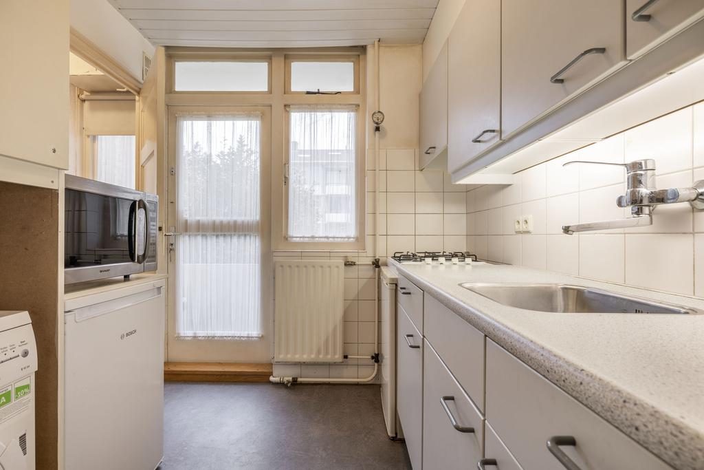 Het appartement betreft een type A. Deze appartementen op de eerste woonlaag kenmerken zich door de ruime berging die zich bevindt onder het appartement. Momenteel is deze te bereiken via de onderbouw. Een mogelijkheid zou kunnen zijn, na toestemming van de VvE, om hier een vaste trap aan te brengen vanuit de woonkamer naar deze ruimte toe. Hiermee vergroot je het woonoppervlakte aanzienlijk en is er de mogelijkheid om hier een extra kamer te realiseren die voor diverse doeleinden kan dienen. Bij veel appartementen in dit complex is het balkon dat grenst aan de keuken gesloten en toegevoegd aan de keuken. Door het balkon toe te voegen aan de keuken vergroot je de oppervlakte van de keuken.