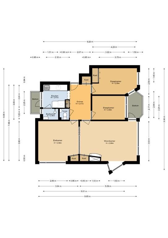 + 2 balkons aanwezig waarvan 1 op het noorden en 1 op het zuiden gelegen;