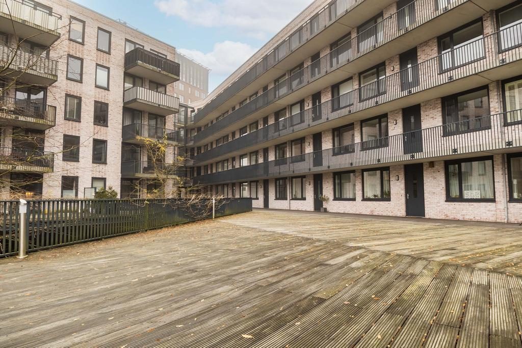 Het appartement ligt op de hoek en bevindt zich aan het einde van de galerij op de derde woonlaag. Via de voordeur kom je terecht in de hal met toegang tot de eerste slaapkamer, meterkast, toilet, tweede slaapkamer badkamer en berging. Aan het einde van de gang bevindt zich de ruime woonkamer met open keuken en eetkamer.