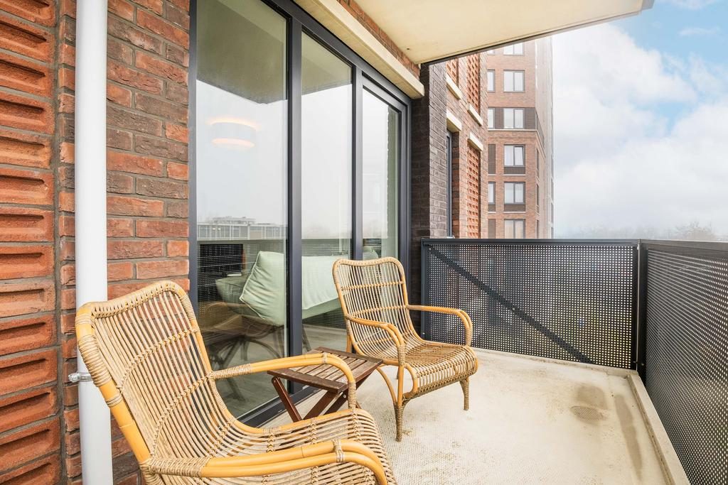 Het balkon biedt de mogelijkheid om te genieten van de zon met uitzicht op de Meridiaantunnel.