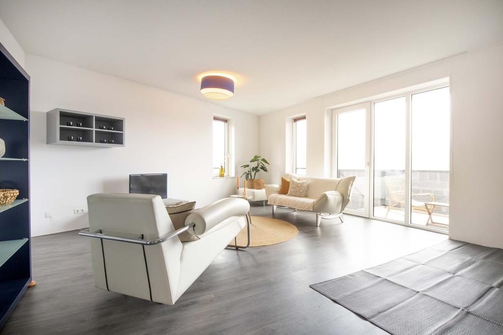 De woning zelf is modern, ruim en stijlvol afgewerkt. De doordachte indeling en grote ramen zorgen voor een prettige lichtinval en een gevoel van ruimte.