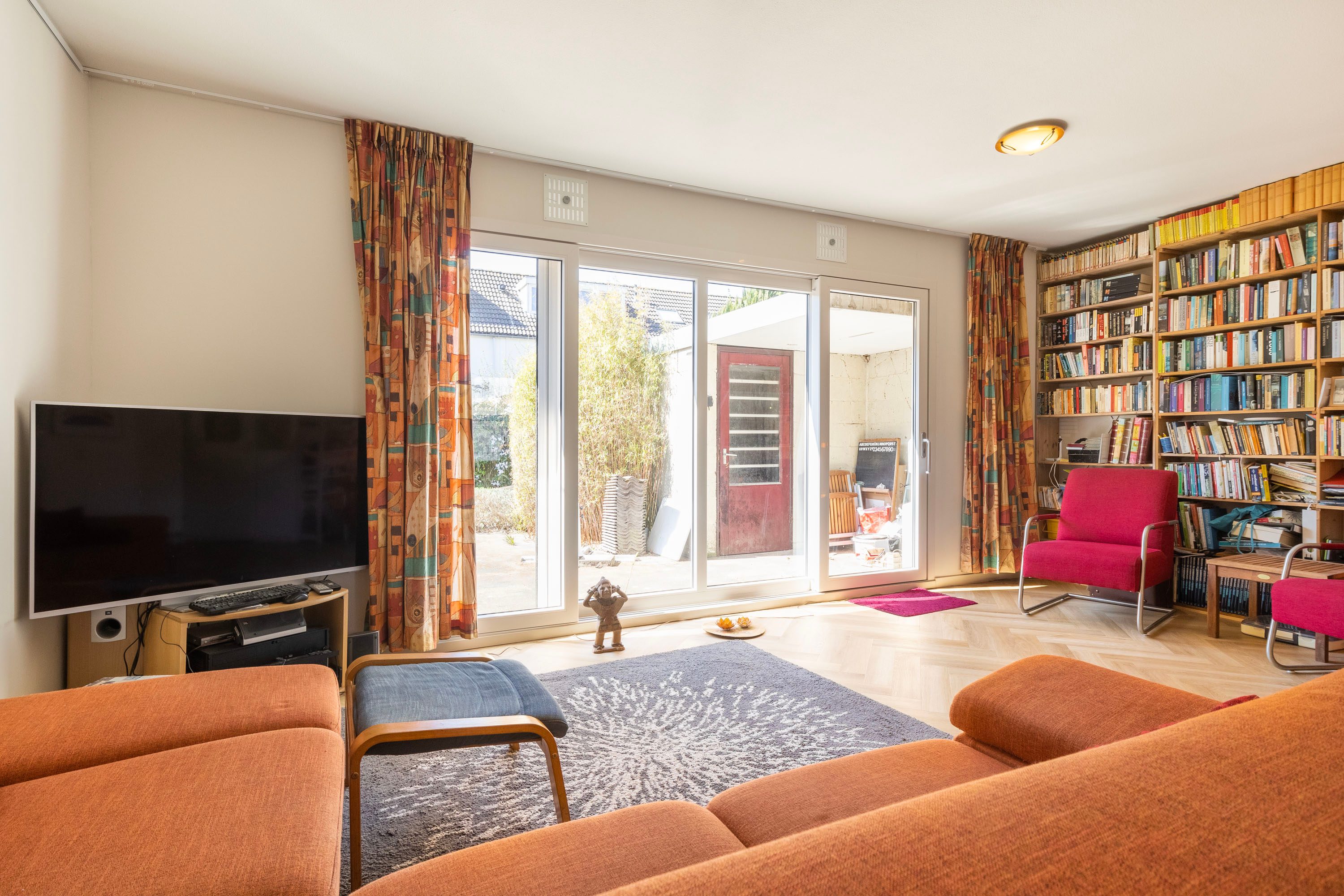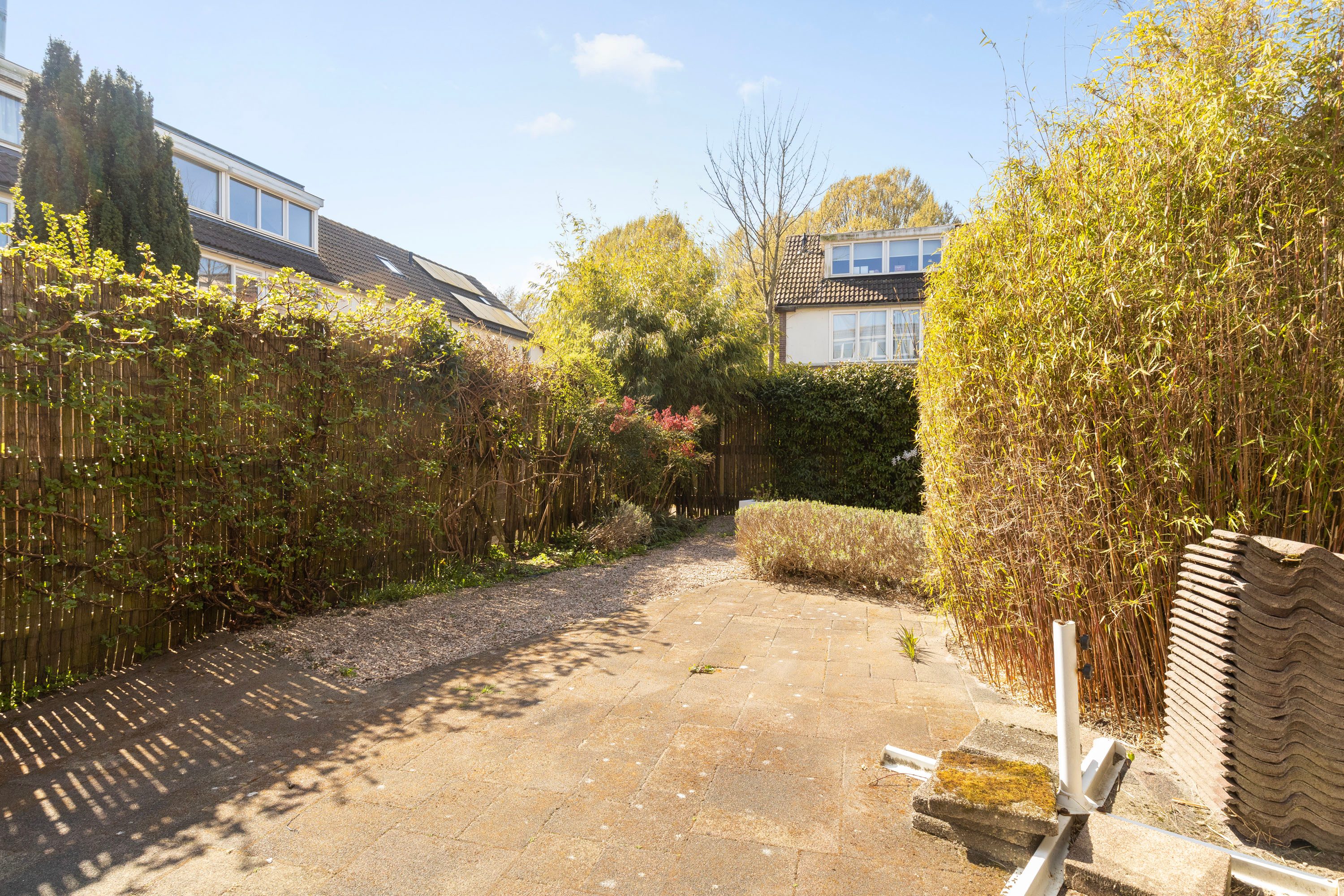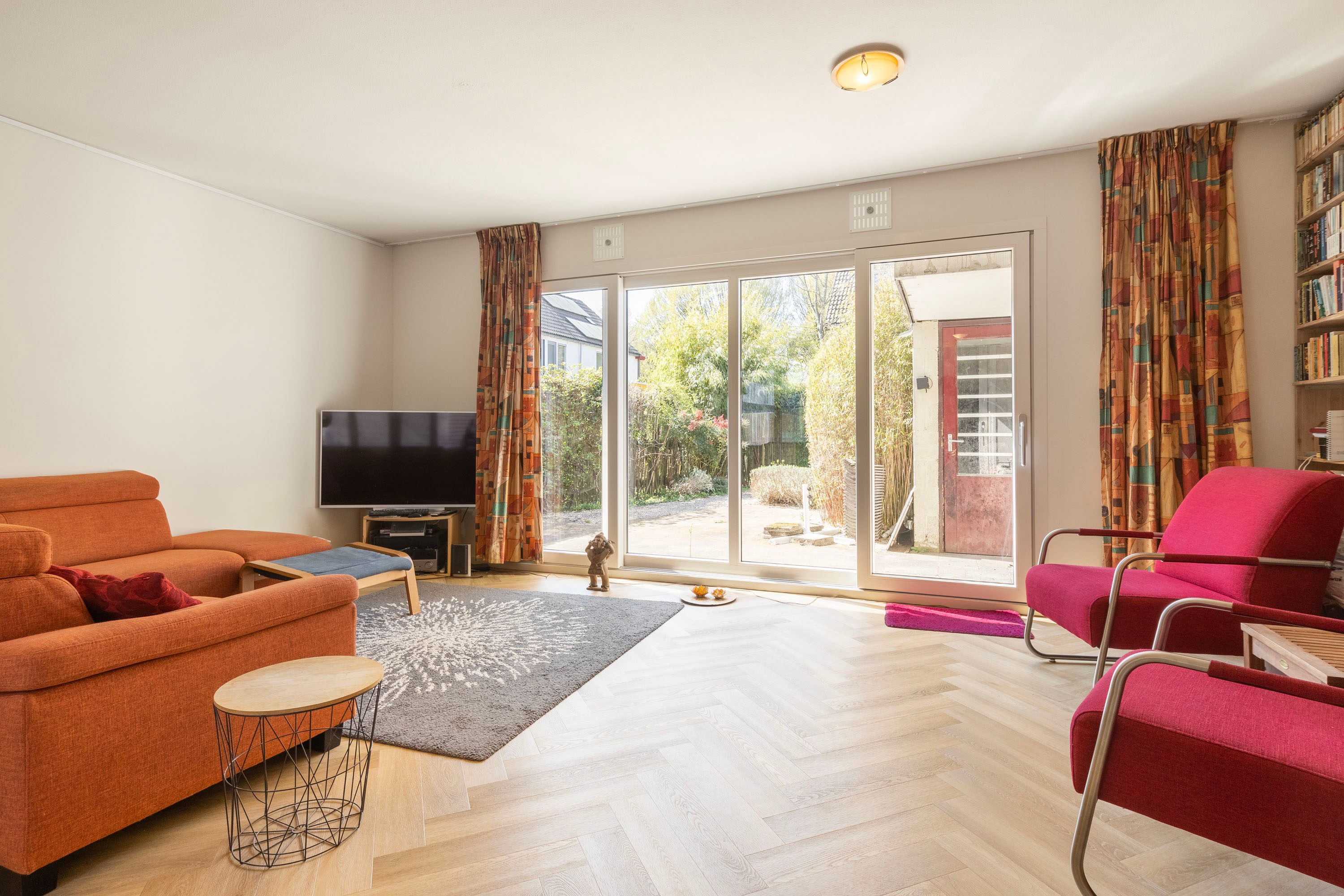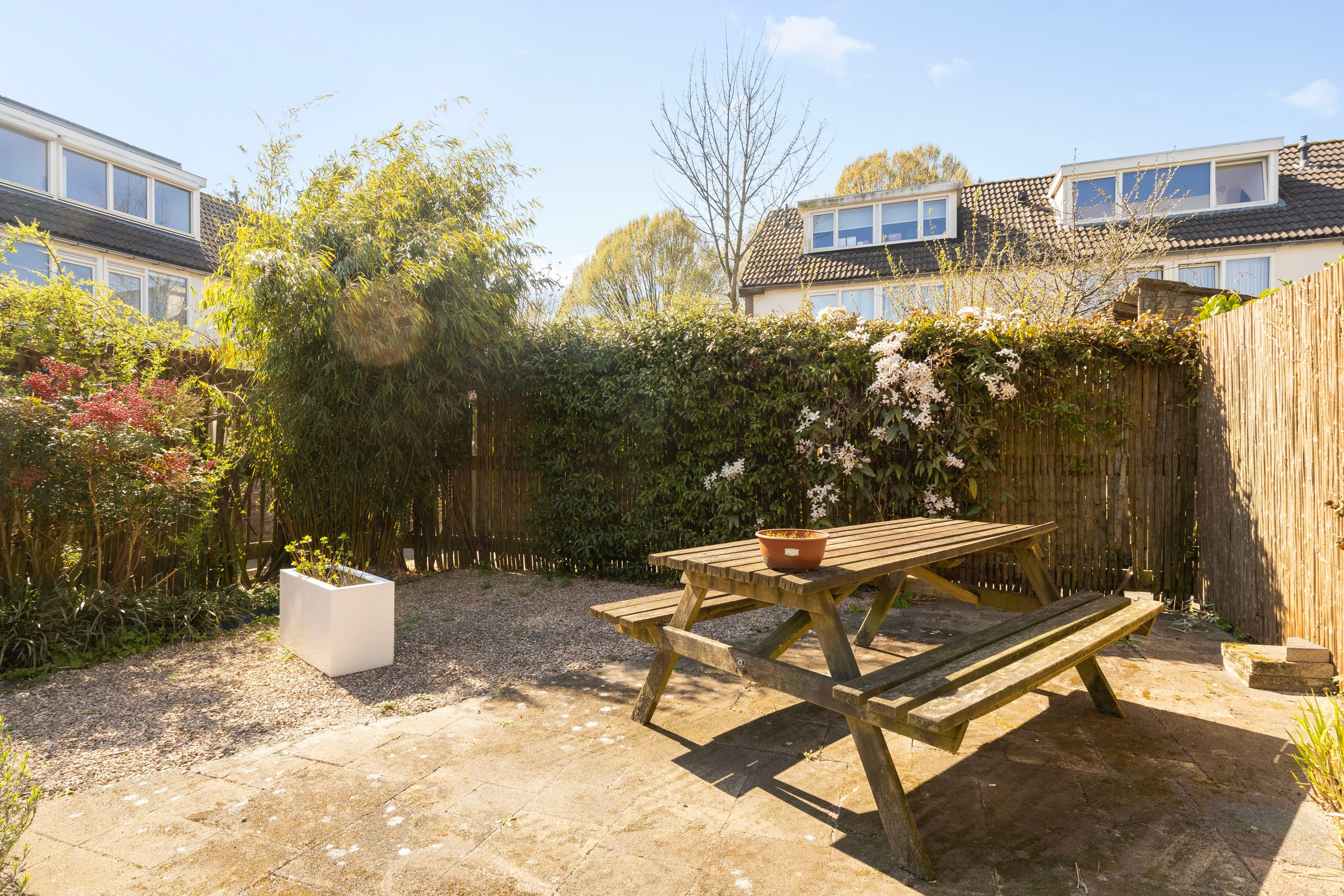 Aan de achterzijde van de woning bevindt zich een royale, zonnige tuin op het zuidwesten, waar volop ruimte is voor een comfortabele loungeset om heerlijk van de zon te genieten. De tuin is gemakkelijk toegankelijk via de schuifpui aan de achterzijde én via de zijtuin. Daarnaast is er een praktische berging aanwezig. Ook aan de voorzijde van de woning is een fraai aangelegde, ruime voortuin te vinden.