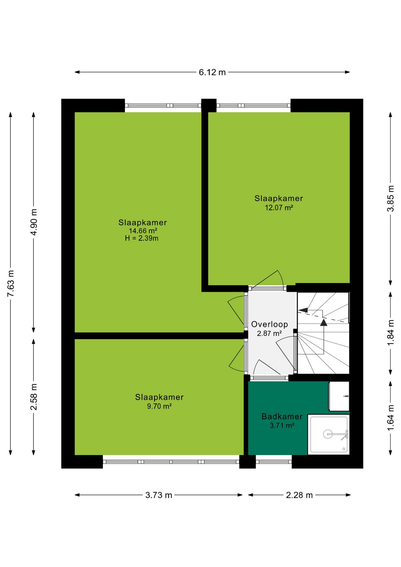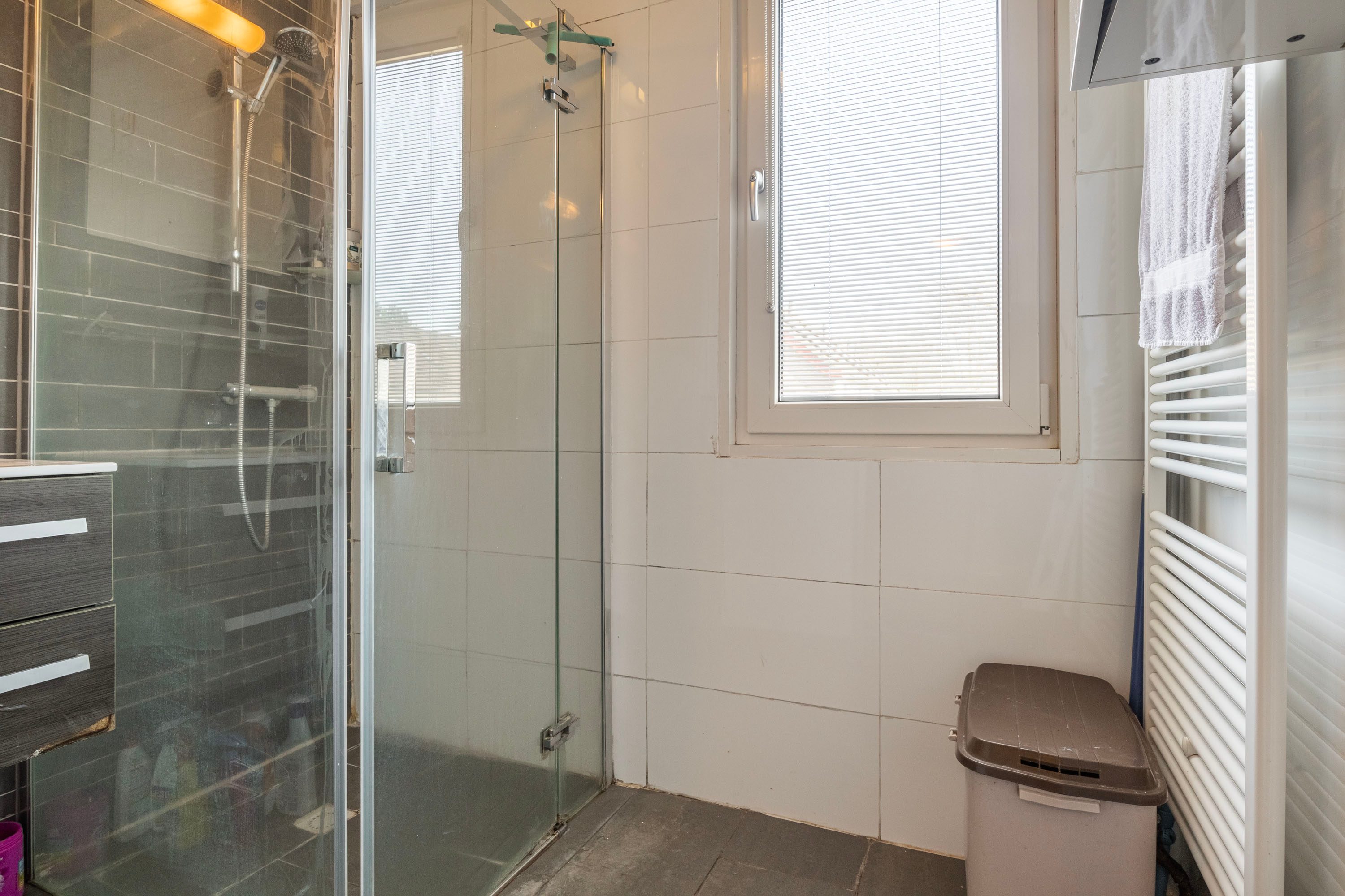 Op de eerste verdieping bereik je via de overloop 3 slaapkamers en de badkamer. De slaapkamers zijn ruim en genieten een fijne lichtinval. De badkamer is in het verleden volledig verbouwd en heeft nu een moderne uitstraling. De badkamer beschikt over: