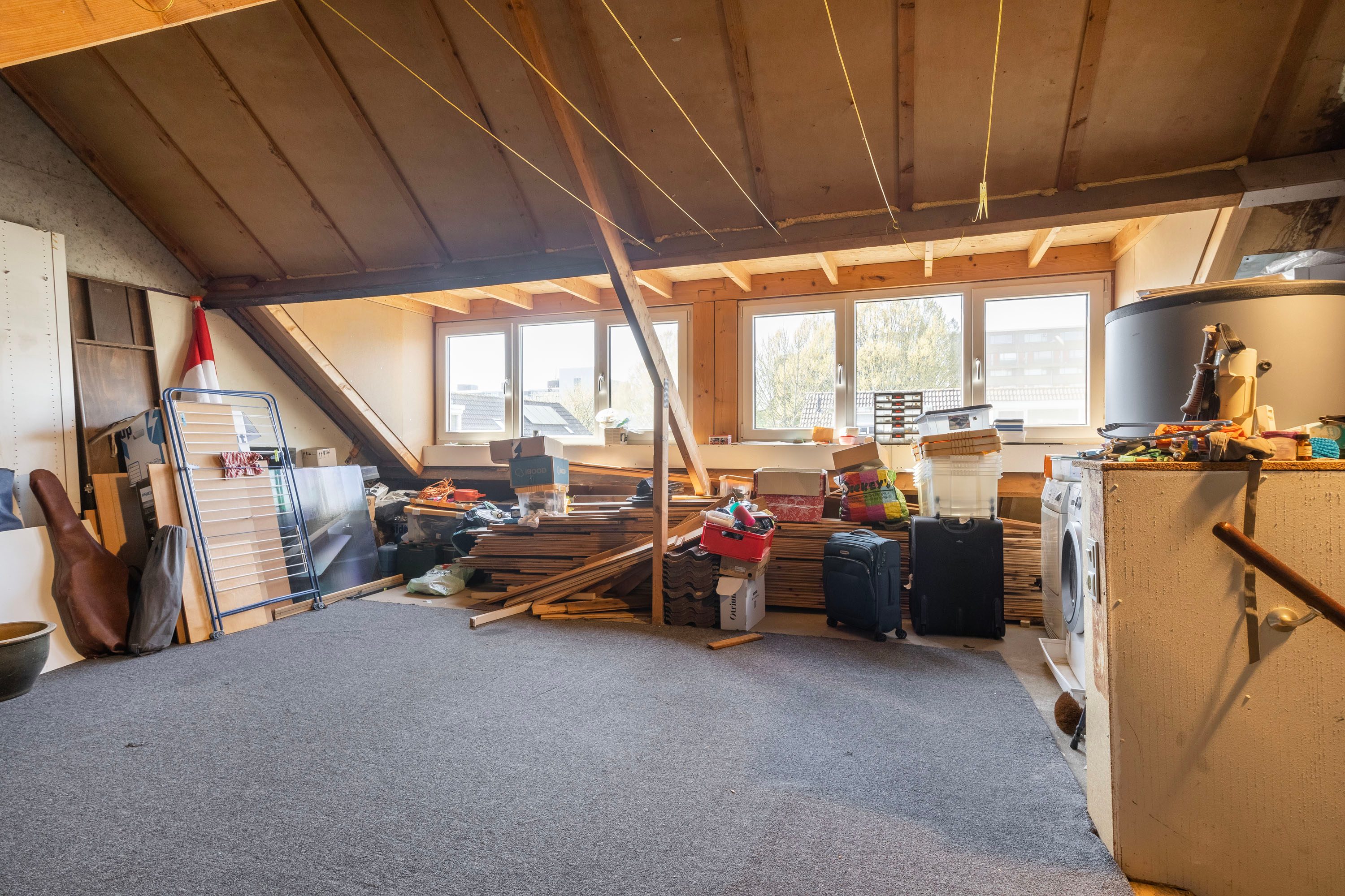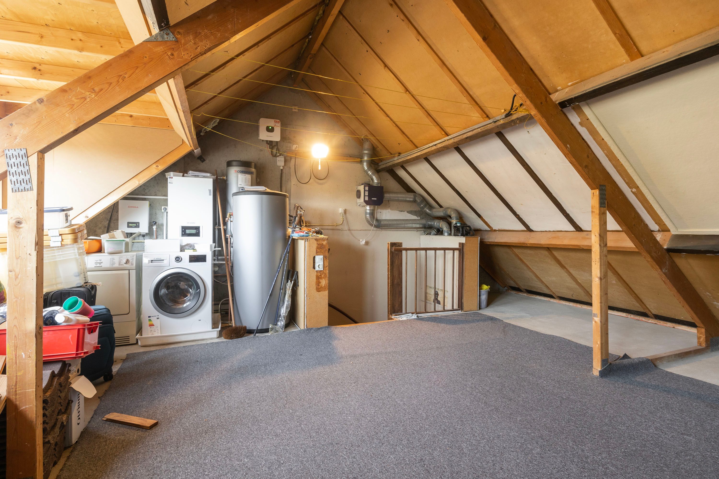 De tweede verdieping is te bereiken via een vaste trap en biedt veel mogelijkheden. De tweede verdieping kan gebruikt worden als slaapkamer of als opbergruimte. Op de tweede verdieping zijn de warmtepomp, de wasmachineaansluiting en drogeraansluiting. Door de grote dakkapel op deze verdieping is er veel lichtinval en ruimte.