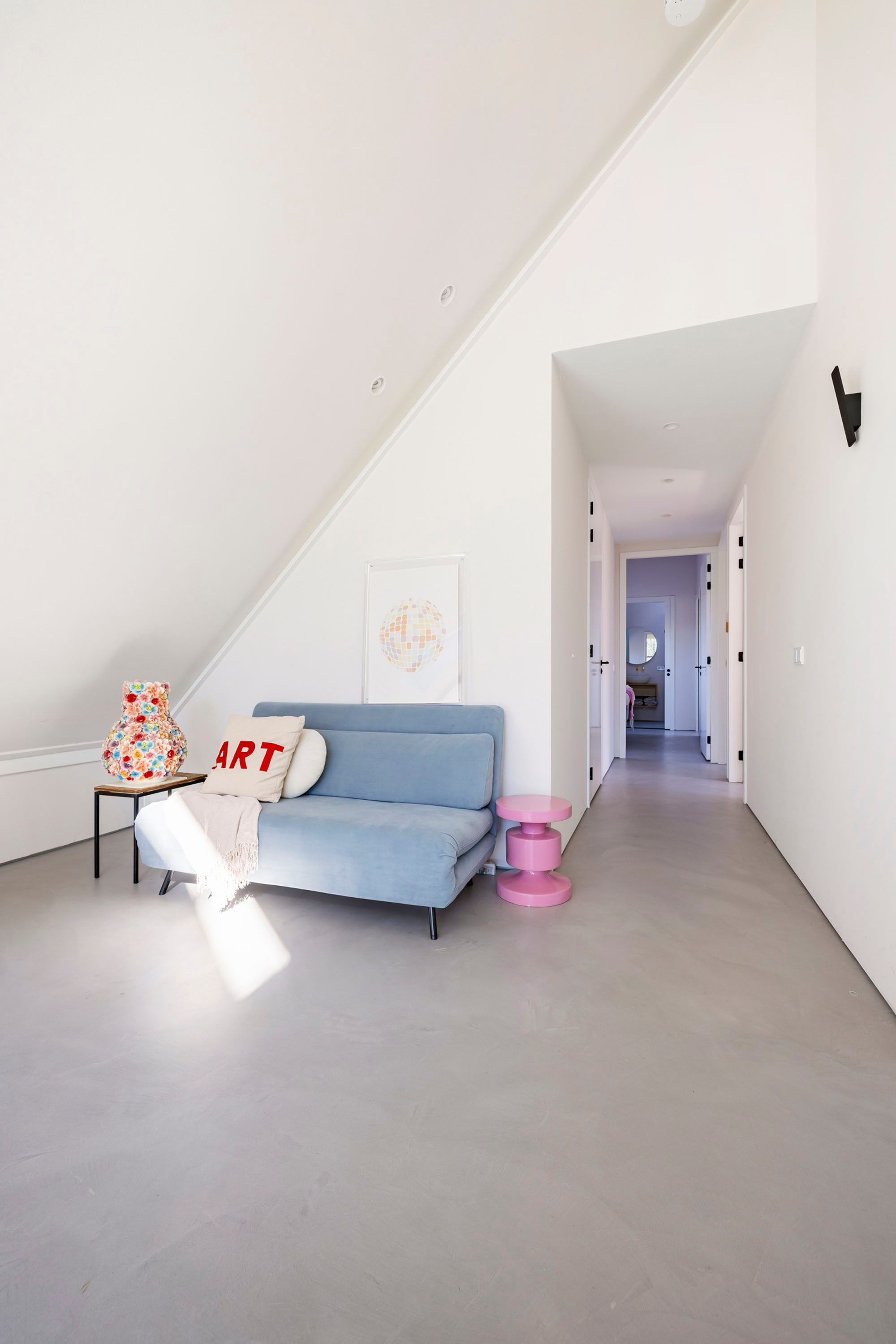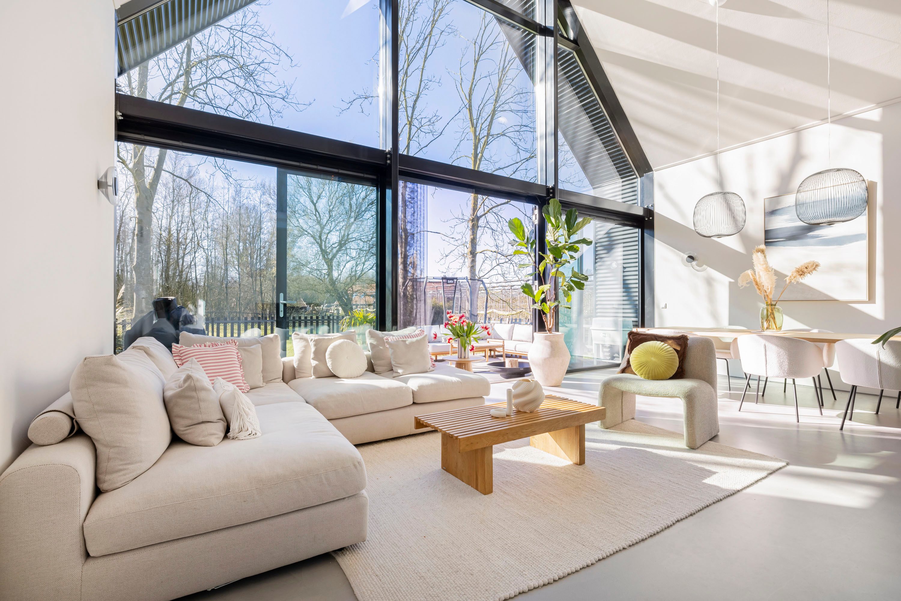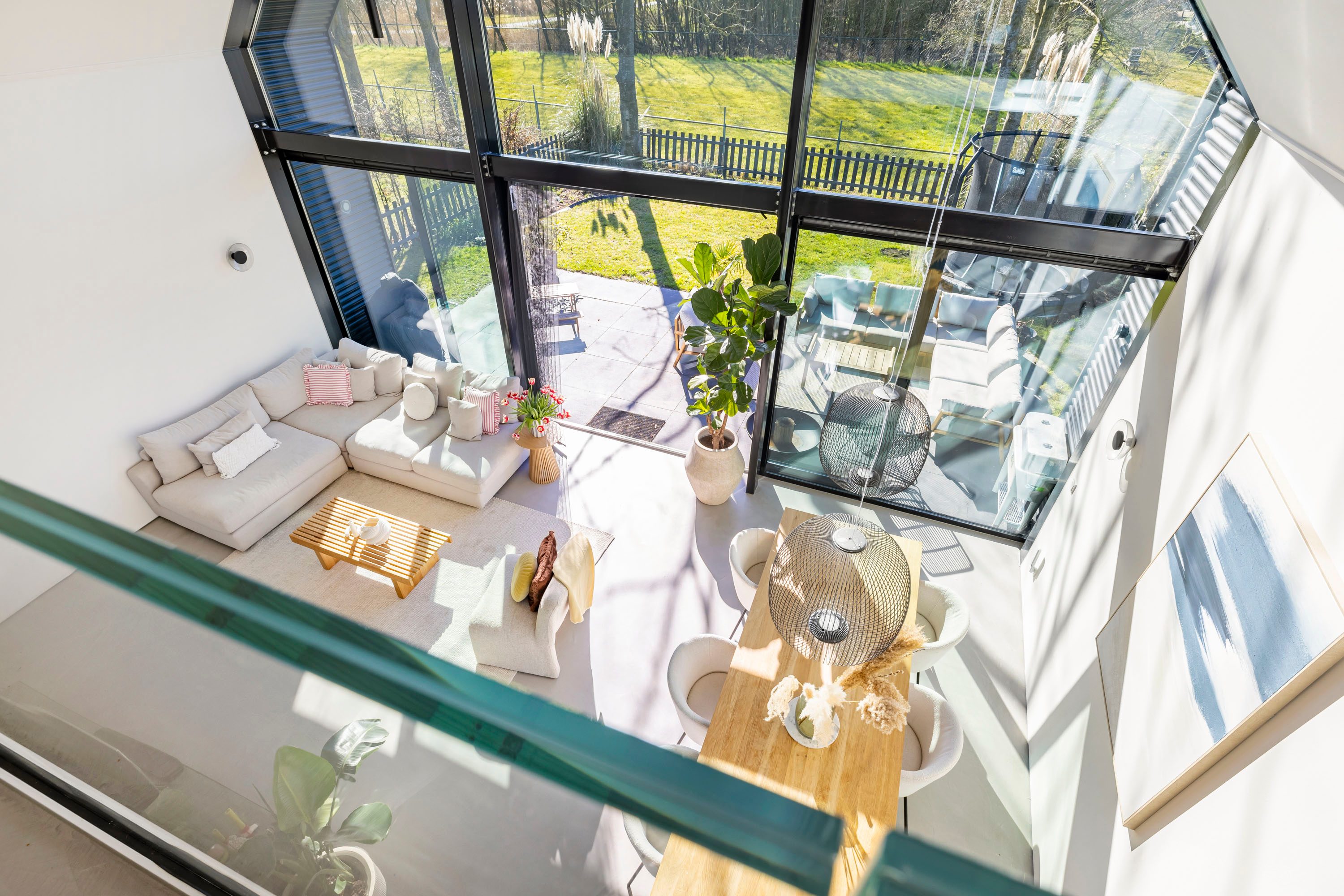 Wat deze Lofthome écht bijzonder maakt, is de indrukwekkende raampartij van meer dan zeven meter hoog en de grote vide, die zorgen voor een overweldigende hoeveelheid natuurlijk licht gedurende alle seizoenen. Of het nu winter, lente, zomer of herfst is, de woning straalt altijd warmte en gezelligheid uit. Bovendien biedt het huis een prachtig uitzicht over het groen van natuurgebied Bloeidaal én de charmante familie-kersenboerderij. Een unieke plek om te wonen en te werken.