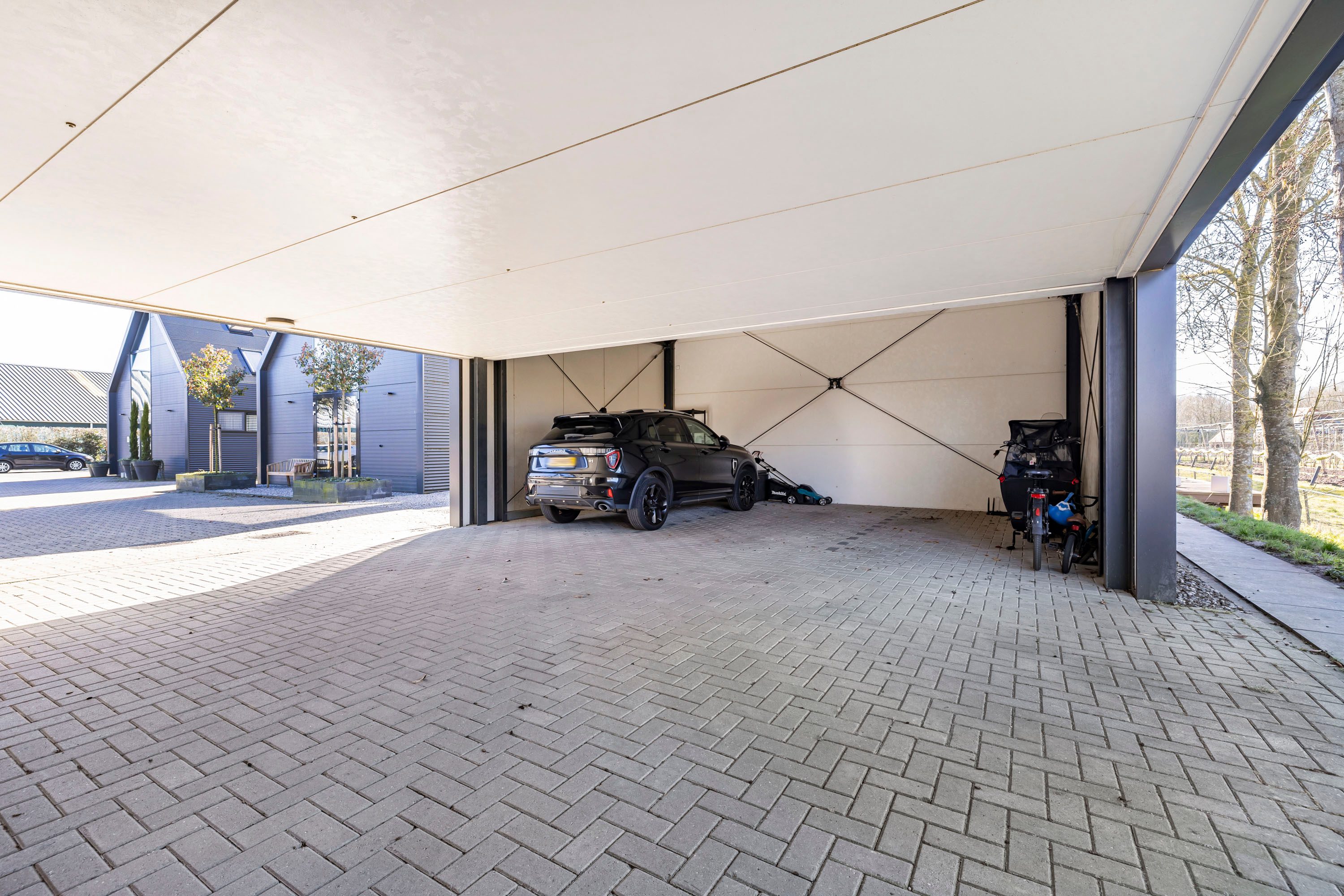 + Carport om auto’s / fietsen overdekt te parkeren;