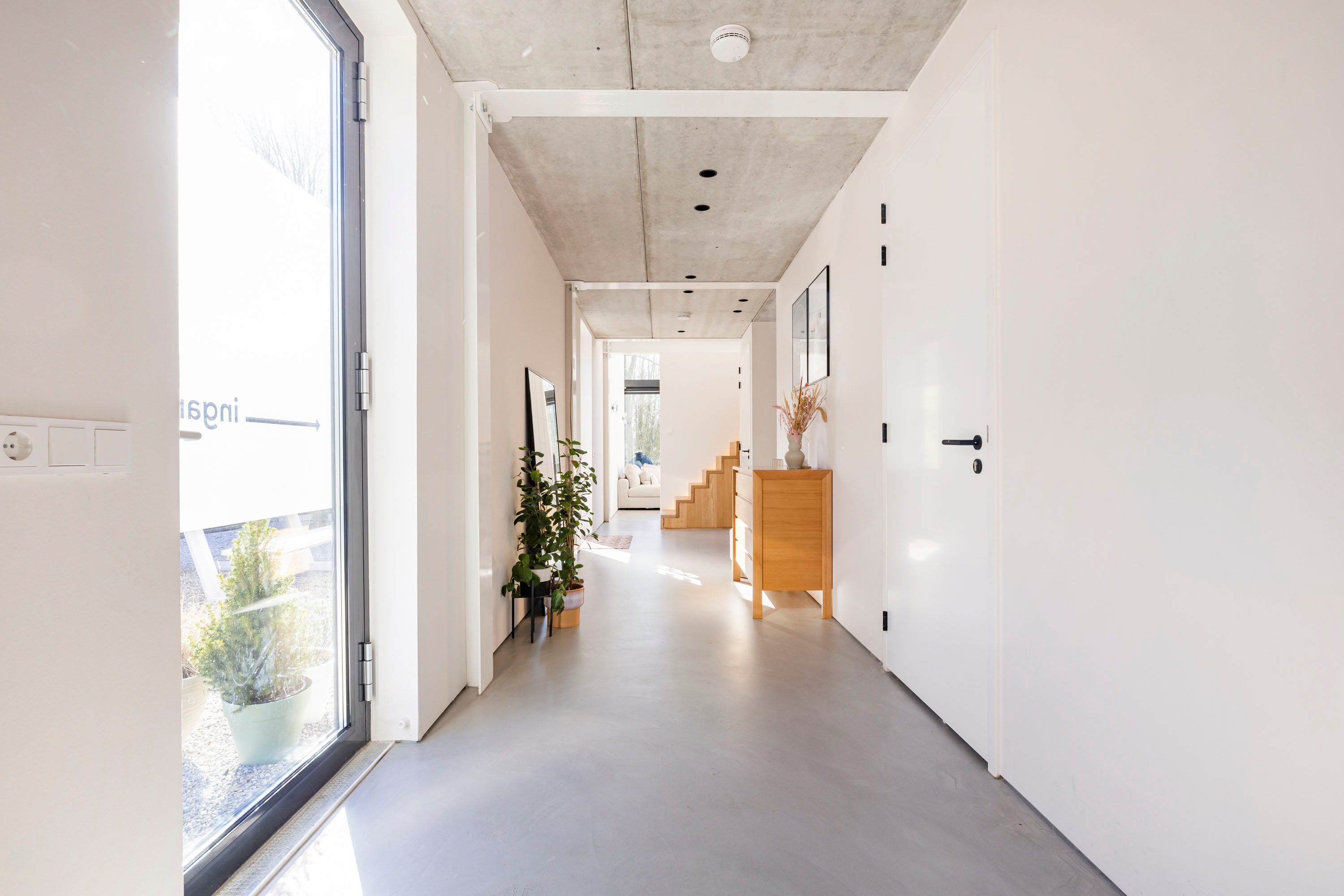 De vloer (op alle verdiepingen) is volledig voorzien van vloerwarming welke ook kan koelen in de zomer. De vloer is afgewerkt met beton ciré. Een perfecte basis voor een stijlvol interieur. Het geeft een luxe uitstraling en is ook nog eens onderhoudsvriendelijk. De wanden zijn zeer goed geïsoleerd en afgewerkt met Renovlies behang. De binnenkozijnen zijn van hout en de deuren betreffen stompe deuren van Svedex met luxe deurbeslag.