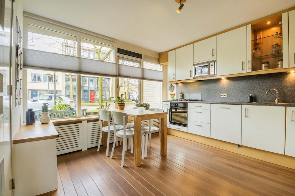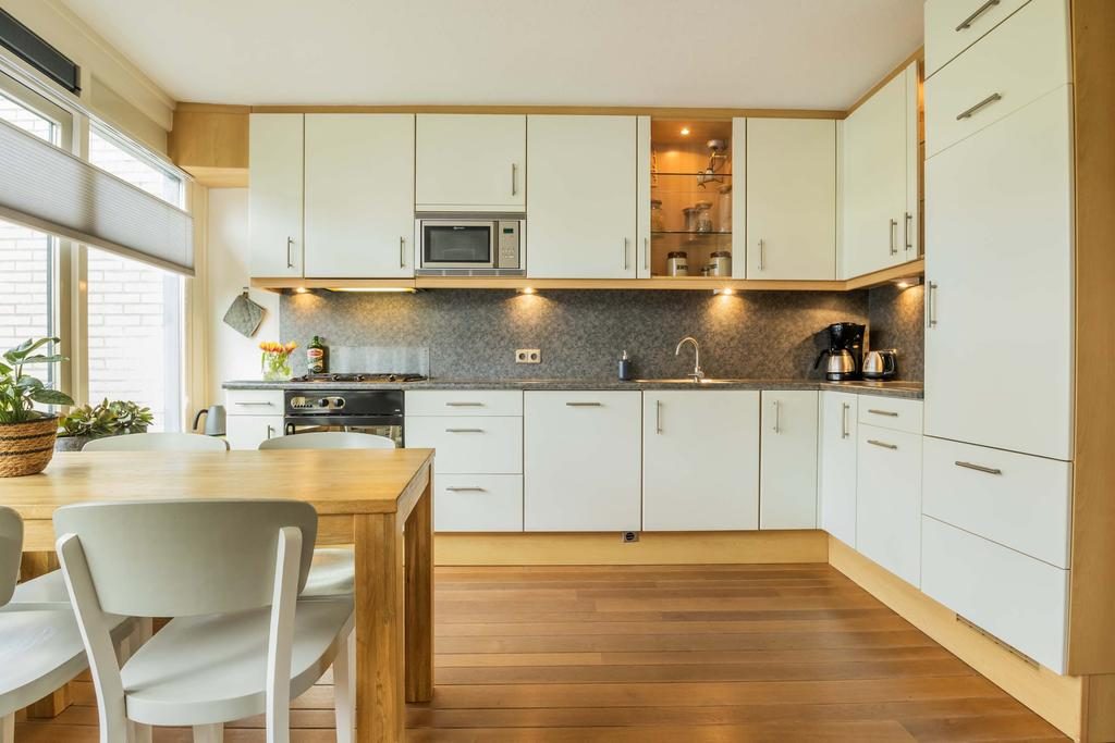 De keuken bevindt zich aan de voorzijde van de woning en is voorzien van diverse inbouwapparatuur waaronder begrepen:
