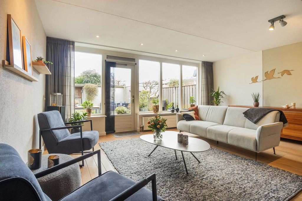 Vanuit het ruime zitgedeelte is er toegang tot de achtertuin.